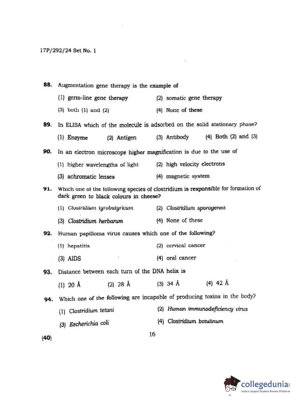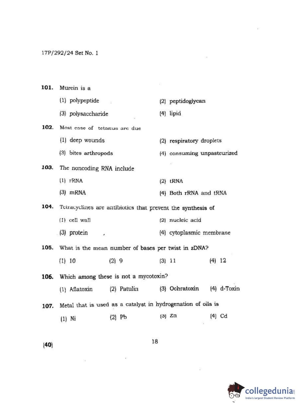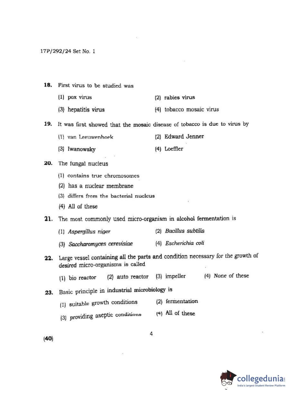 BHU PET 2017 M.Sc. in Applied Microbiology Question Paper with Answer Key PDFs