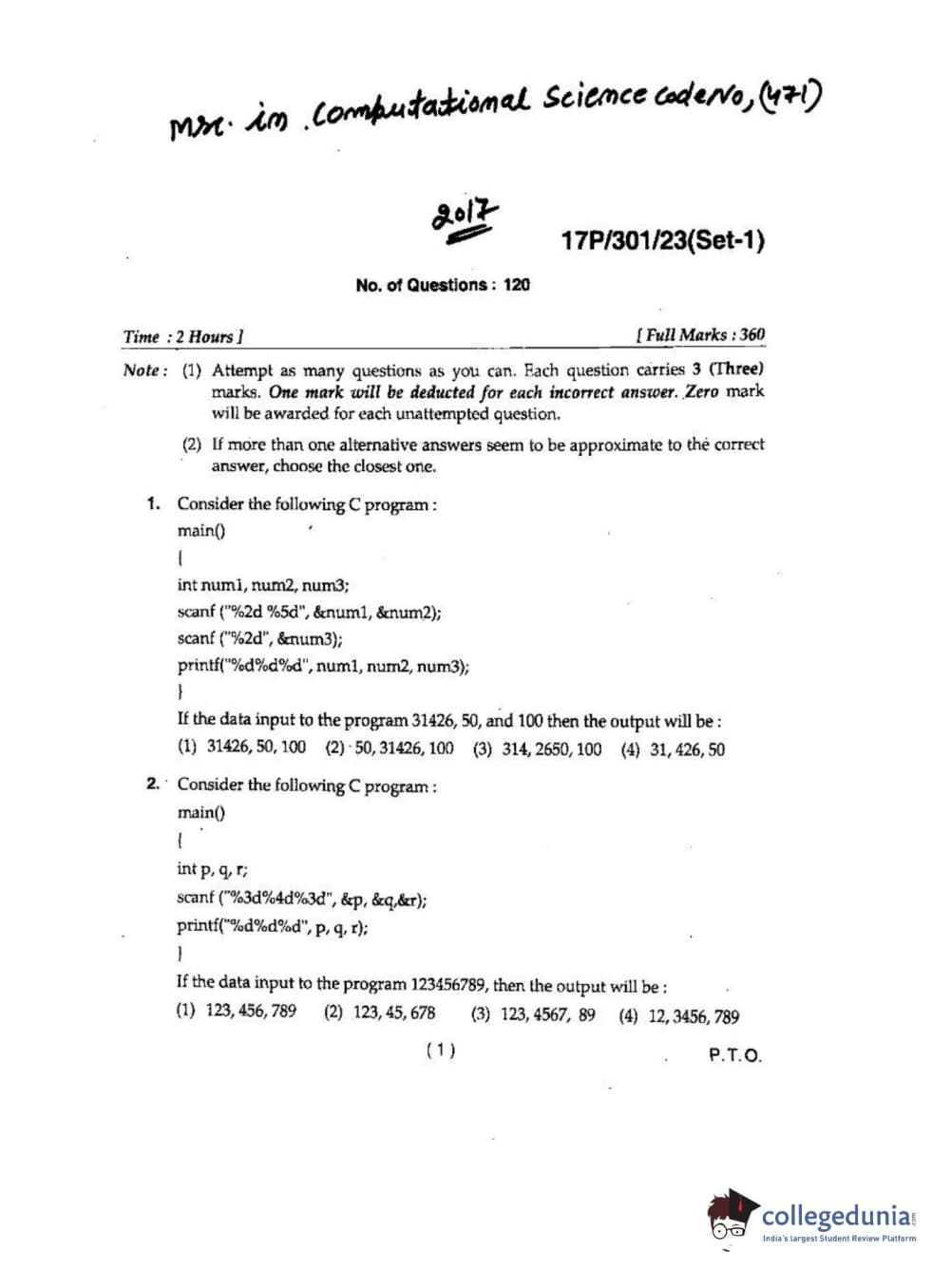 BHU PET 2017 M.Sc. In Computational Science Question paper with answer key pdf is available for download. The exam was successfully organized by Banaras Hindu University (BHU). The question paper comprised a total of 120 questions.