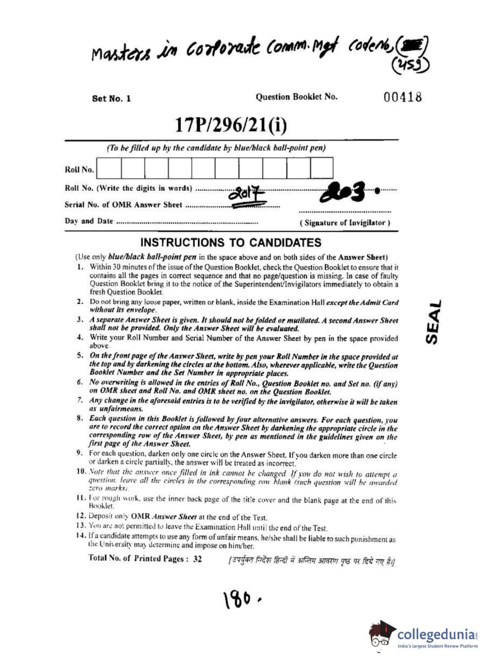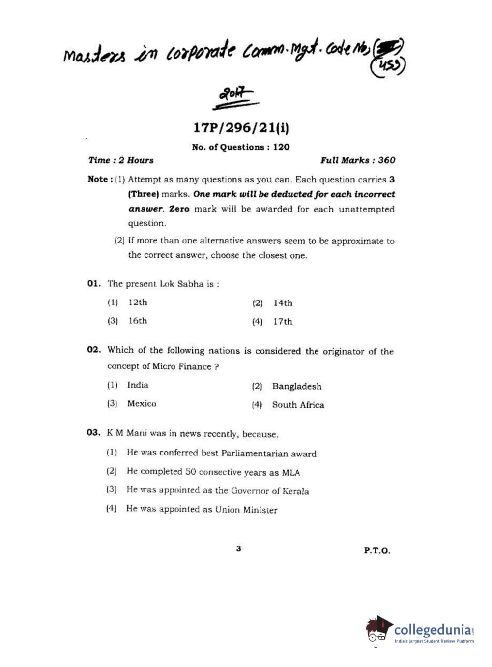 | BHU PET 2017 M.Sc. in Corporate Mgt Question Paper PDF | BHU PET 2017 M.Sc. in Corporate Mgt Answer Key PDF |