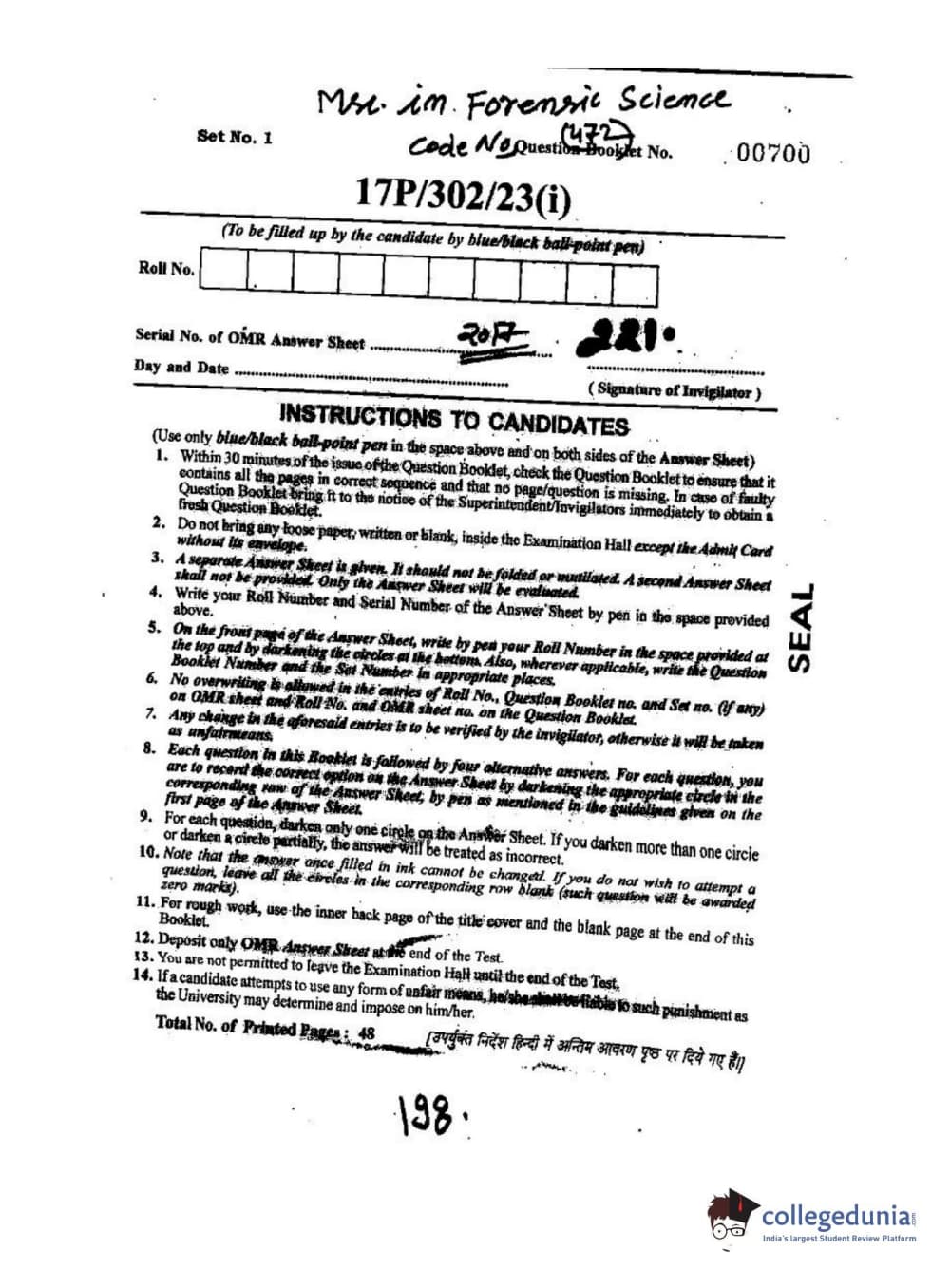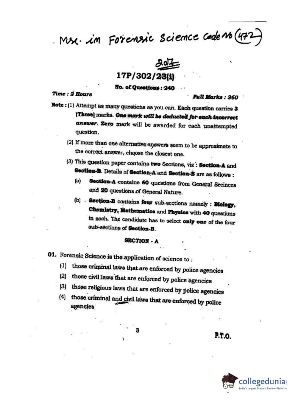 BHU PET 2017 M.Sc. in Forensis Science Question paper with answer key pdf is available for download. The exam was successfully organized by Banaras Hindu University (BHU). The question paper comprised a total of 240 questions.