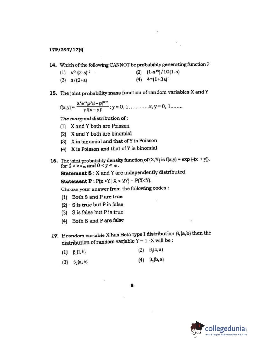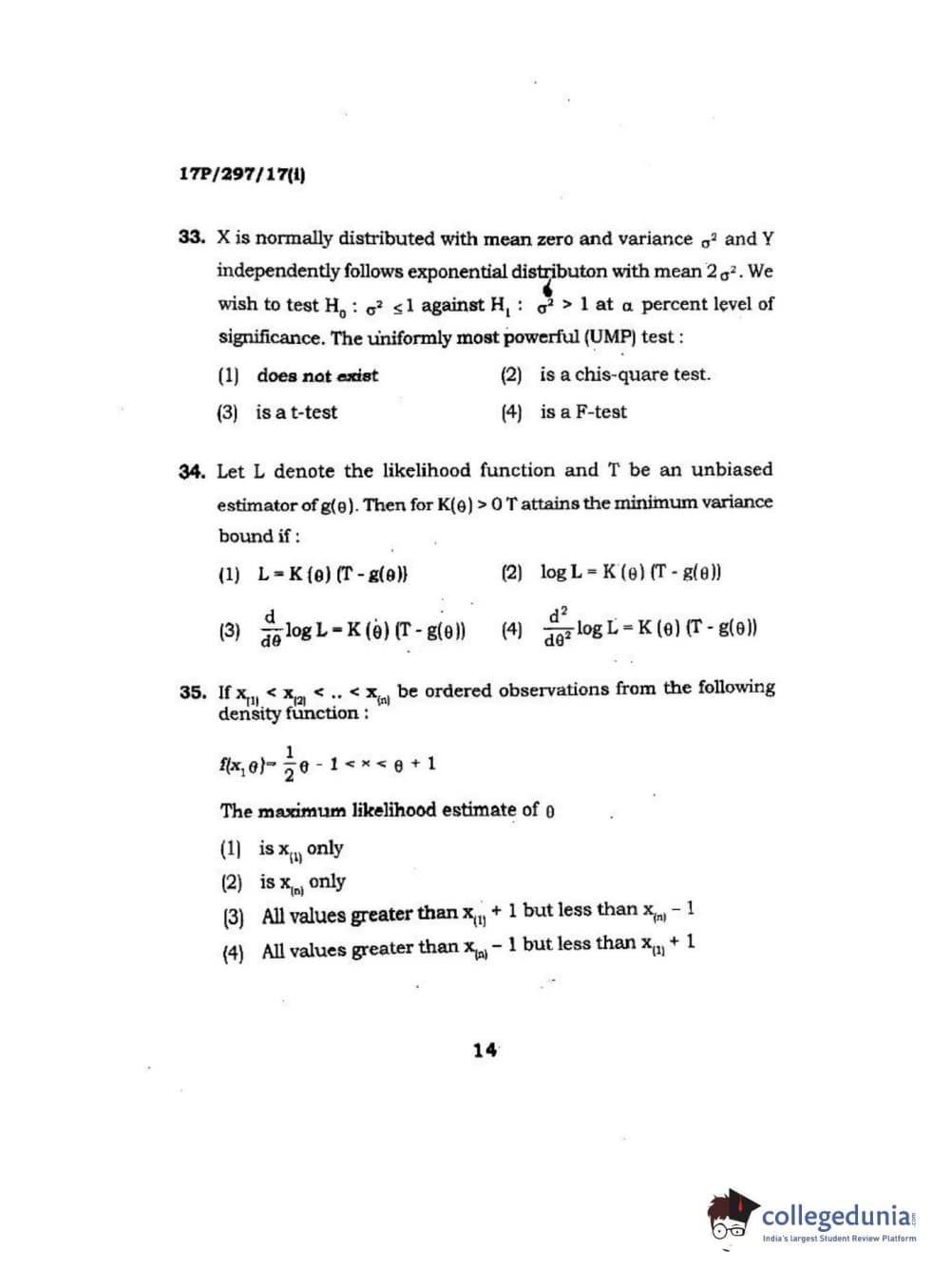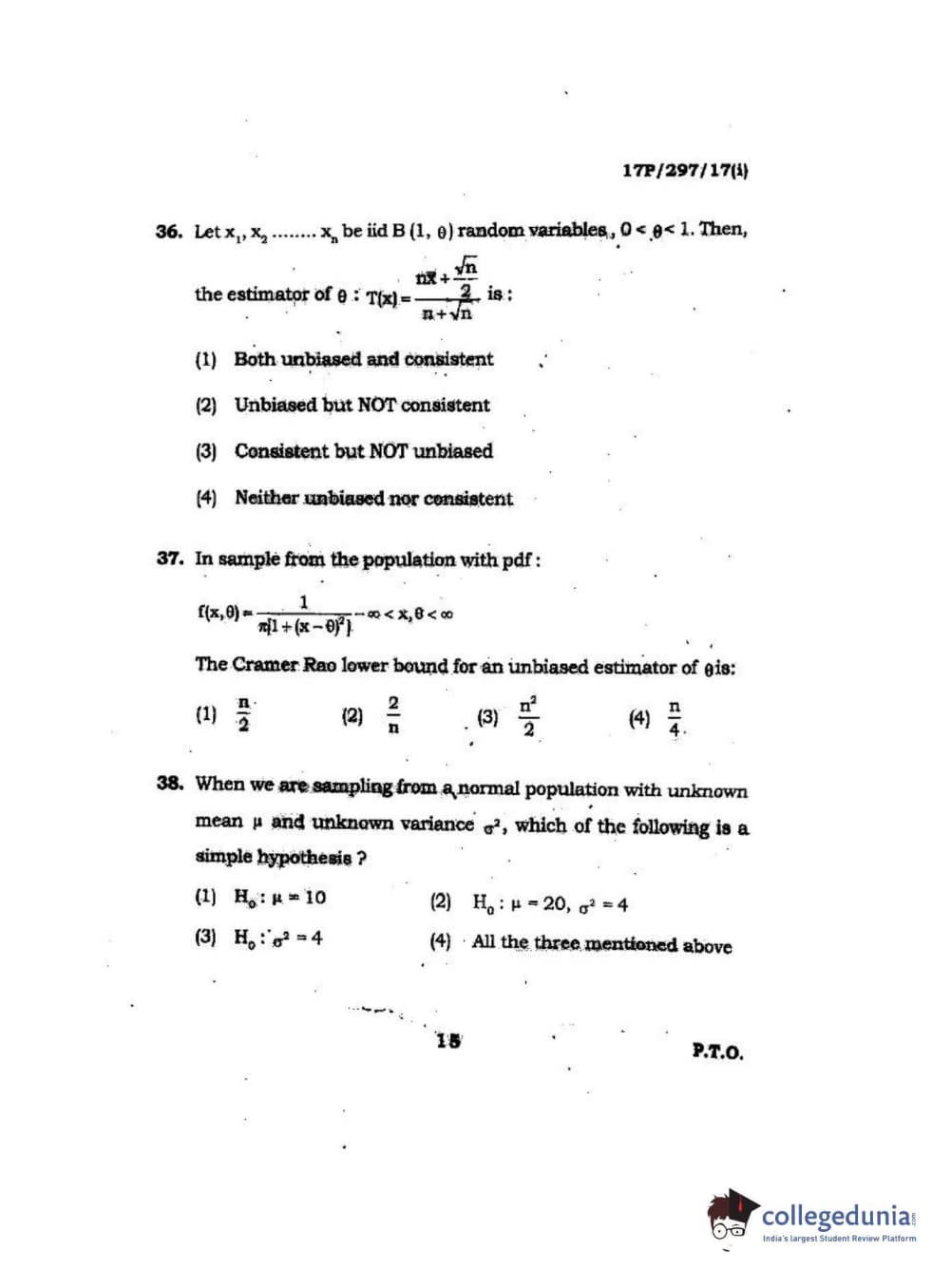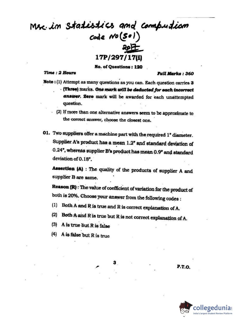 BHU PET 2017 M.Sc. in Statistics and Compution Question paper with answer key pdf is available for download. The exam was successfully organized by Banaras Hindu University (BHU). The question paper comprised a total of 120 questions.