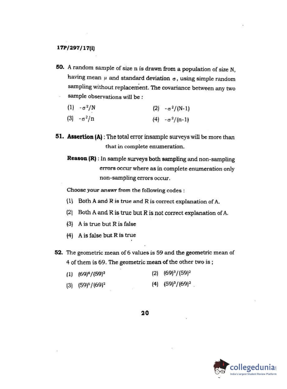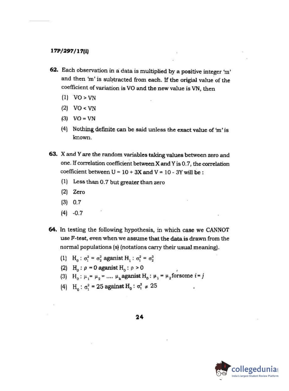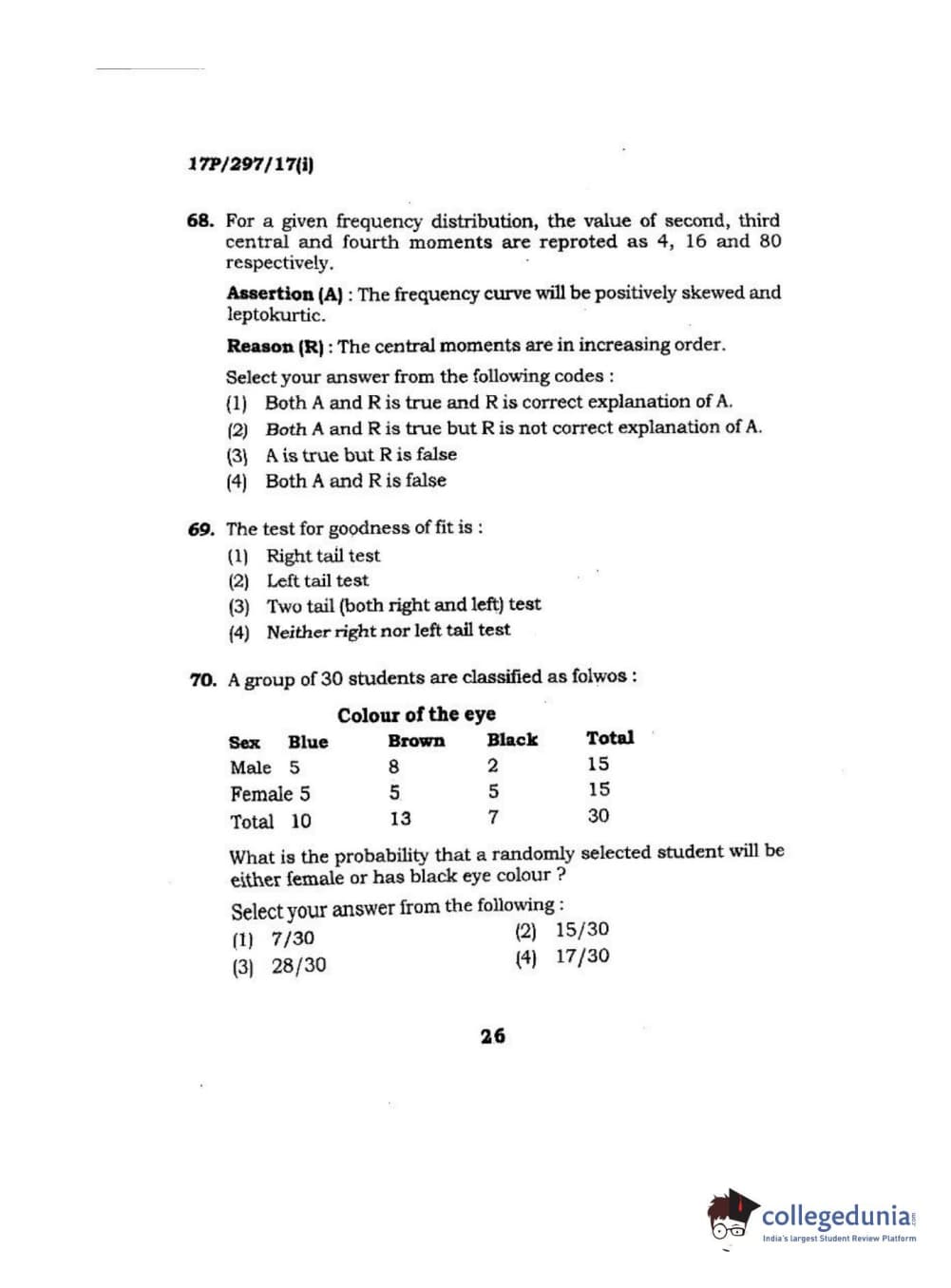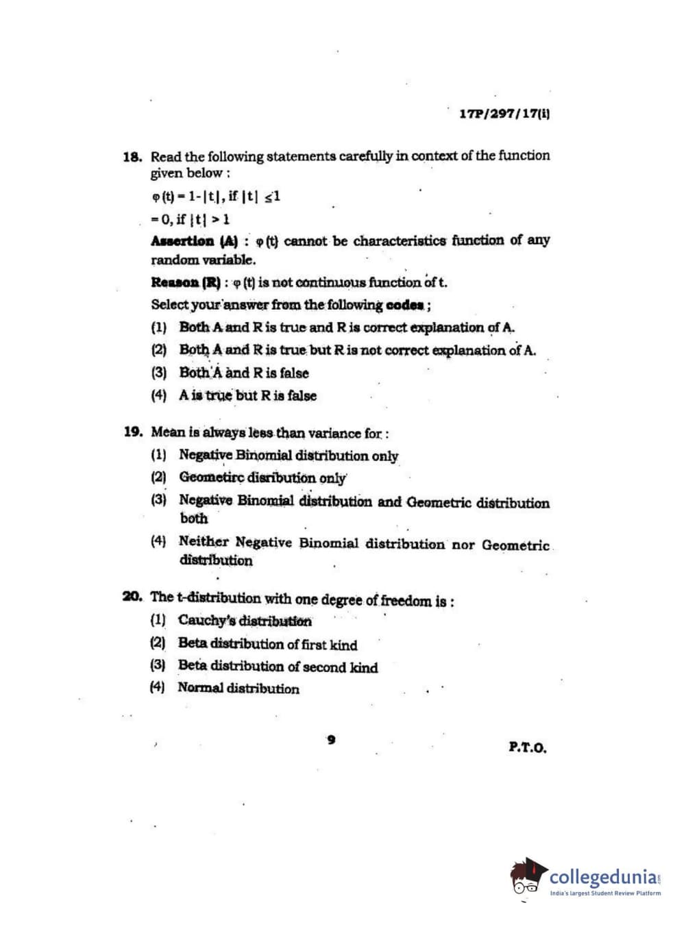 BHU PET 2017 M.Sc. in Statistics and Compution Question paper with answer key pdf is available for download. The exam was successfully organized by Banaras Hindu University (BHU). The question paper comprised a total of 120 questions.