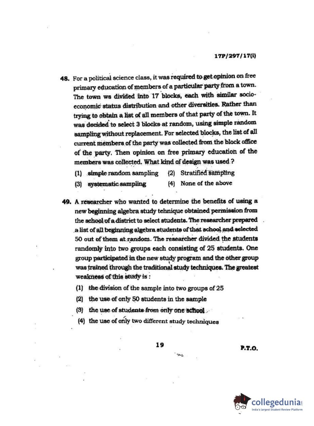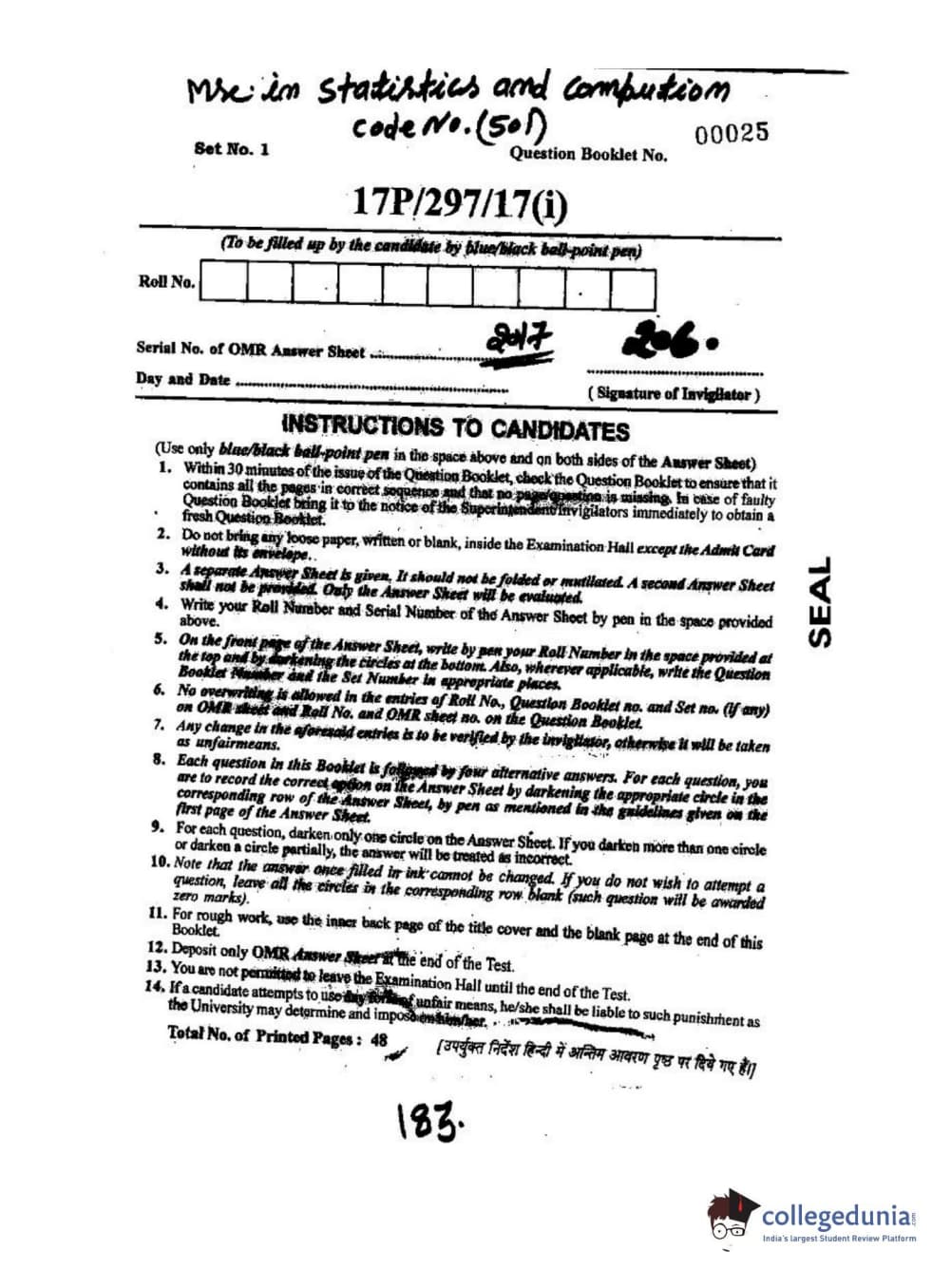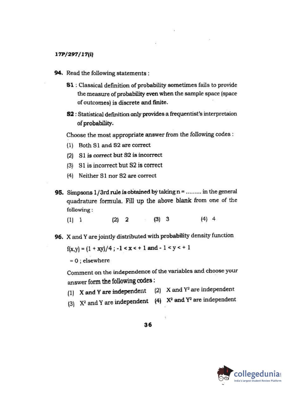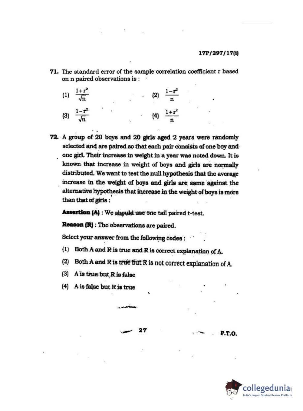 BHU PET 2017 M.Sc. in Statistics and Compution Question paper with answer key pdf is available for download. The exam was successfully organized by Banaras Hindu University (BHU). The question paper comprised a total of 120 questions.