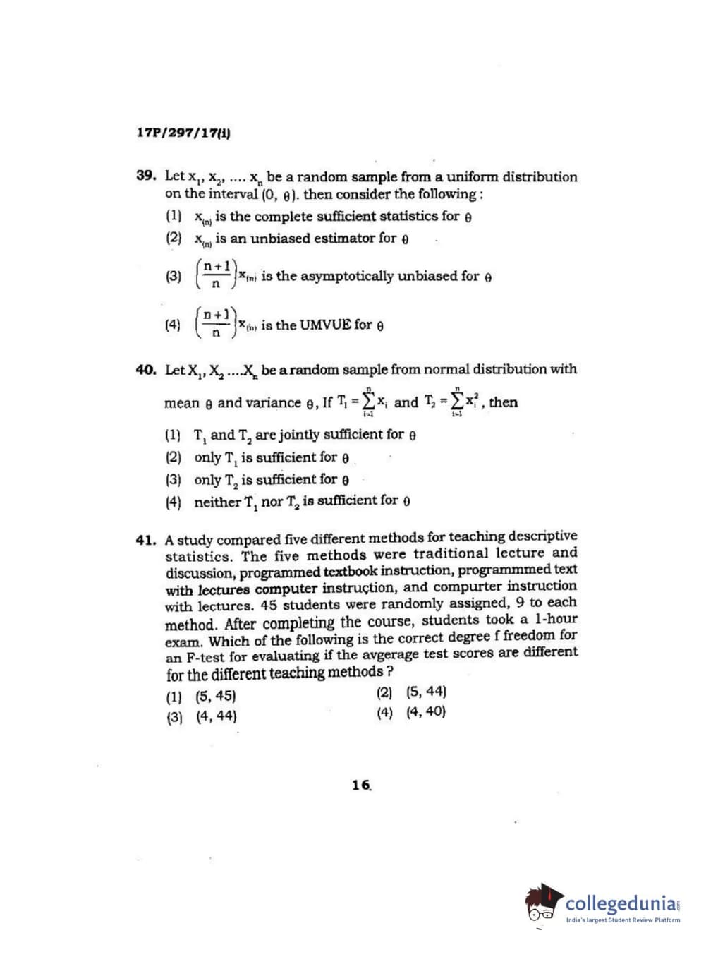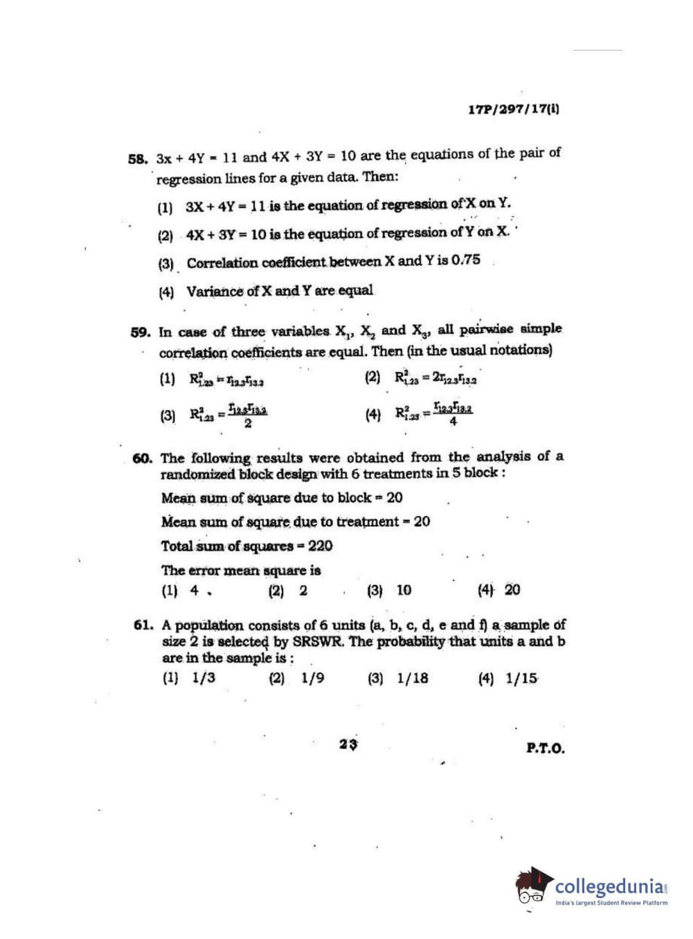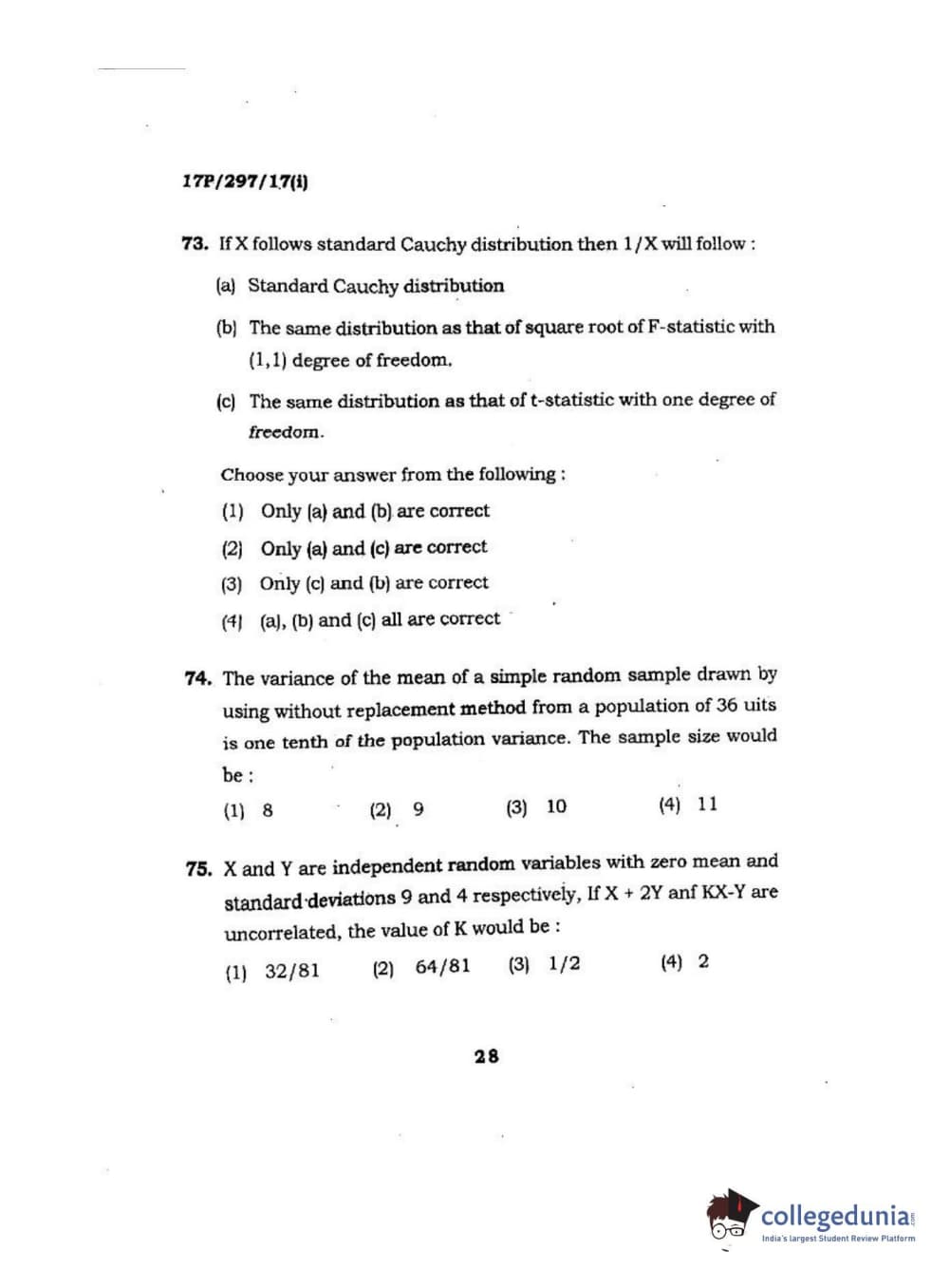 | BHU PET 2017 M.Sc. in Statistics and Compution Question Paper PDF | BHU PET 2017 M.Sc. in Statistics and Compution Answer Key PDF |
