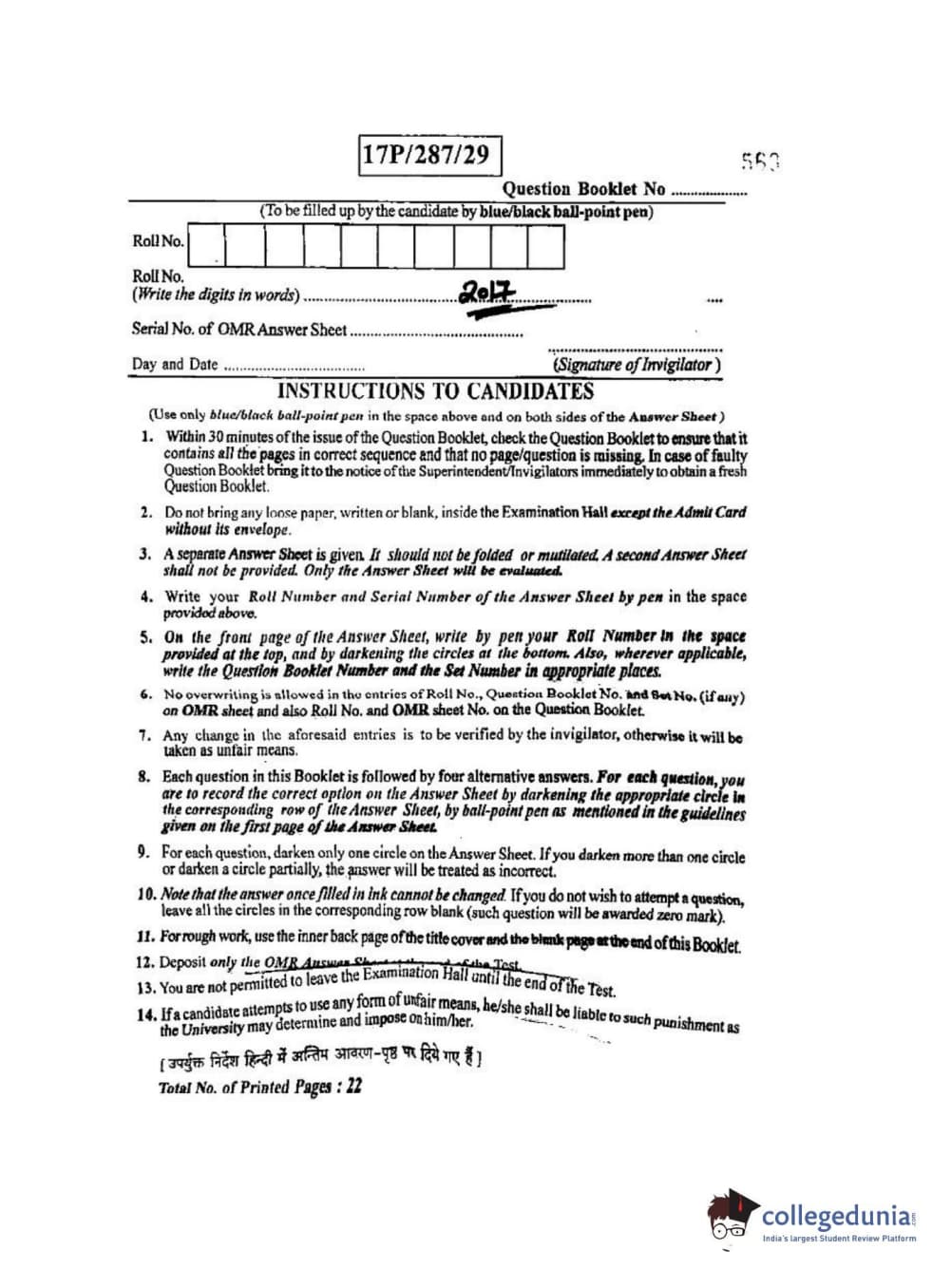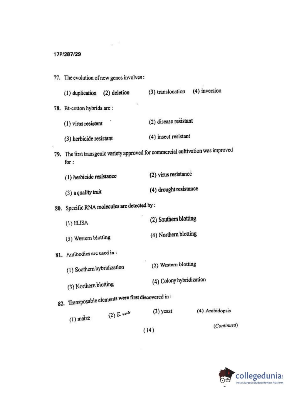 | BHU PET 2017 M.Sc Plant Biotechnology Question Paper PDF | BHU PET 2017 M.Sc Plant Biotechnology Answer Key PDF |