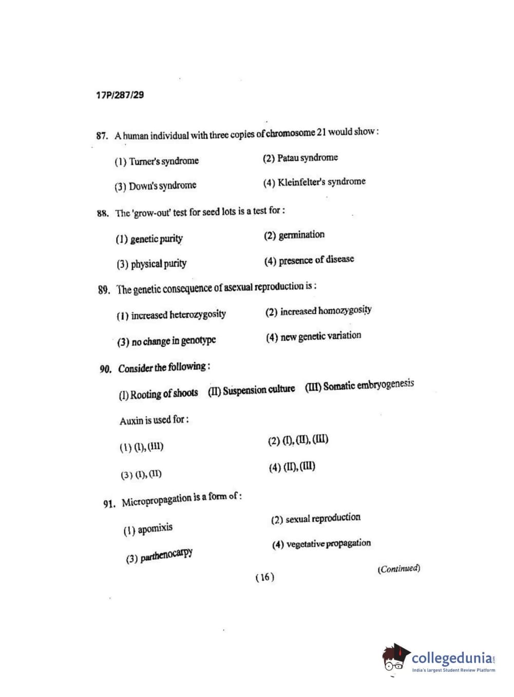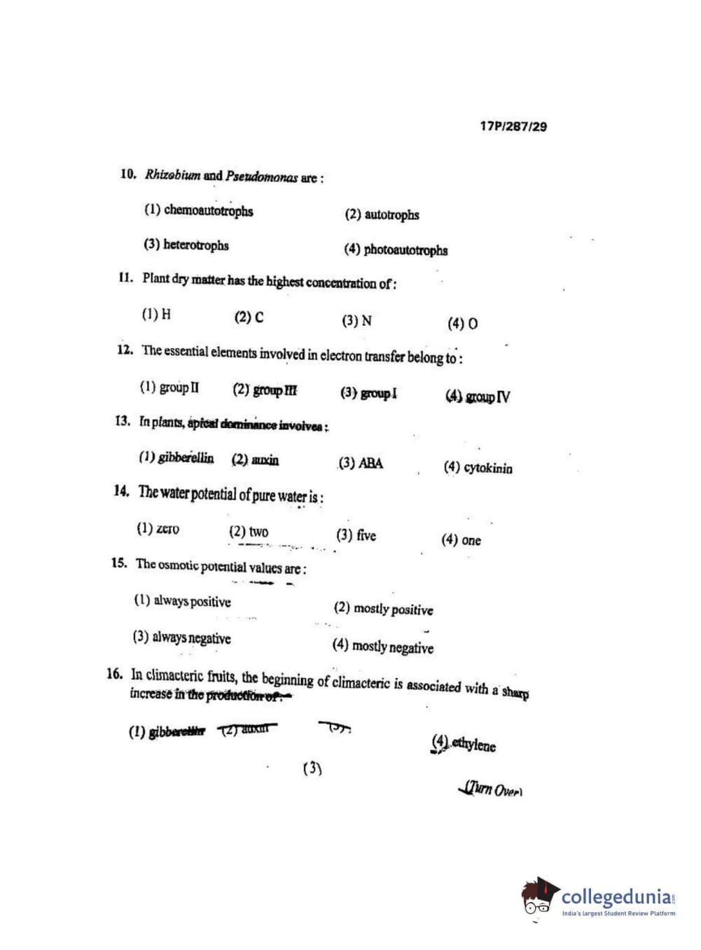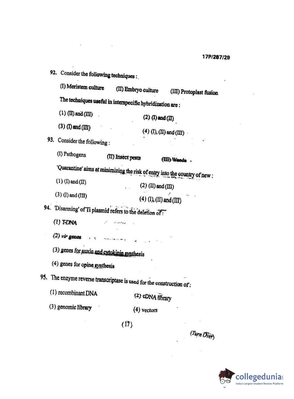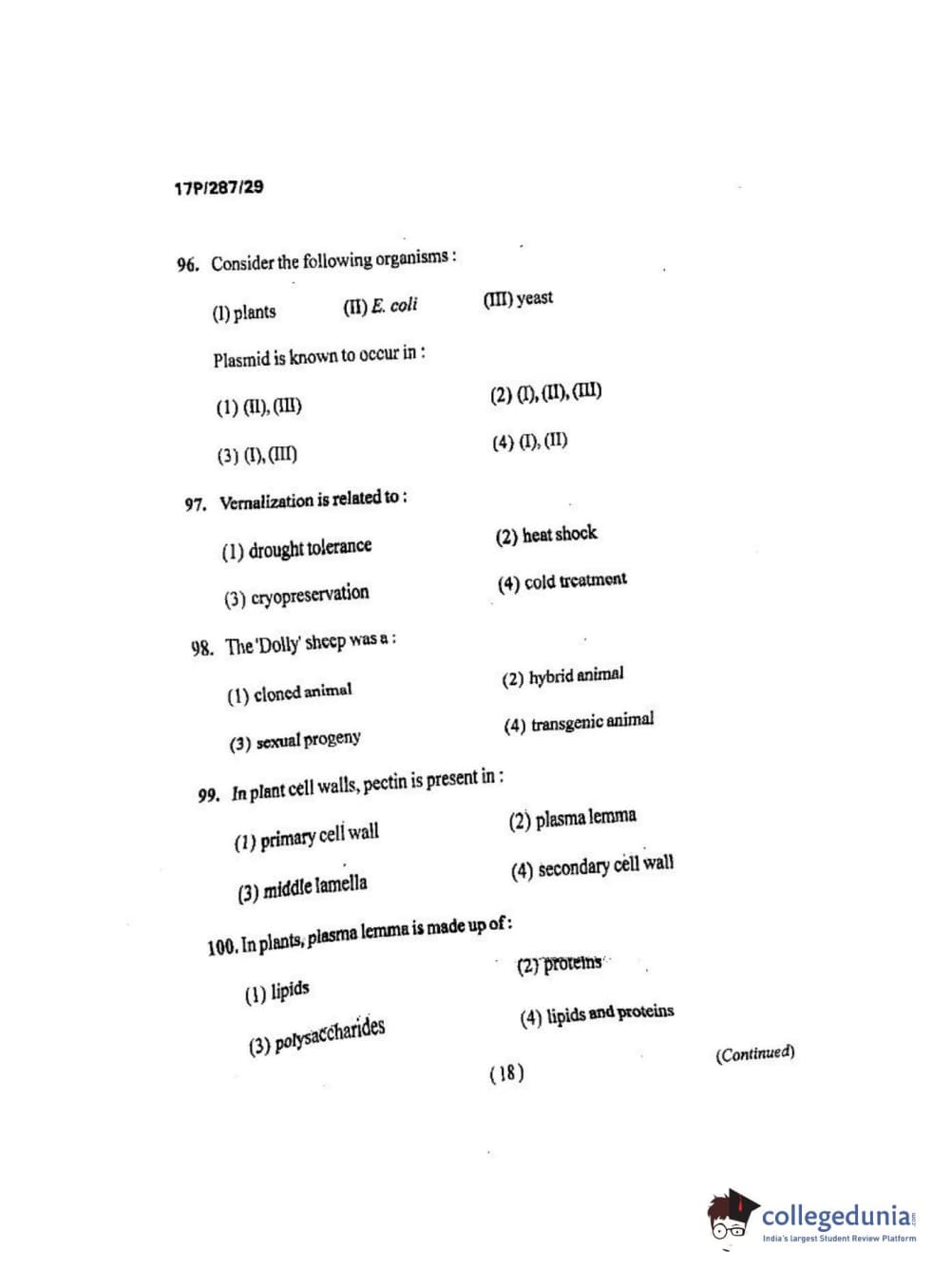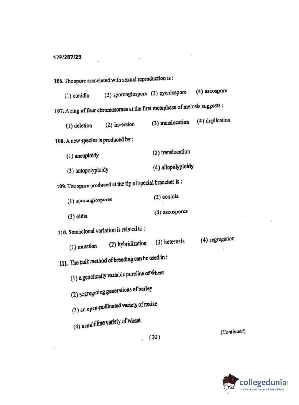 BHU PET 2017 M.Sc Plant Biotechnology Question Paper with Answer Key PDFs
