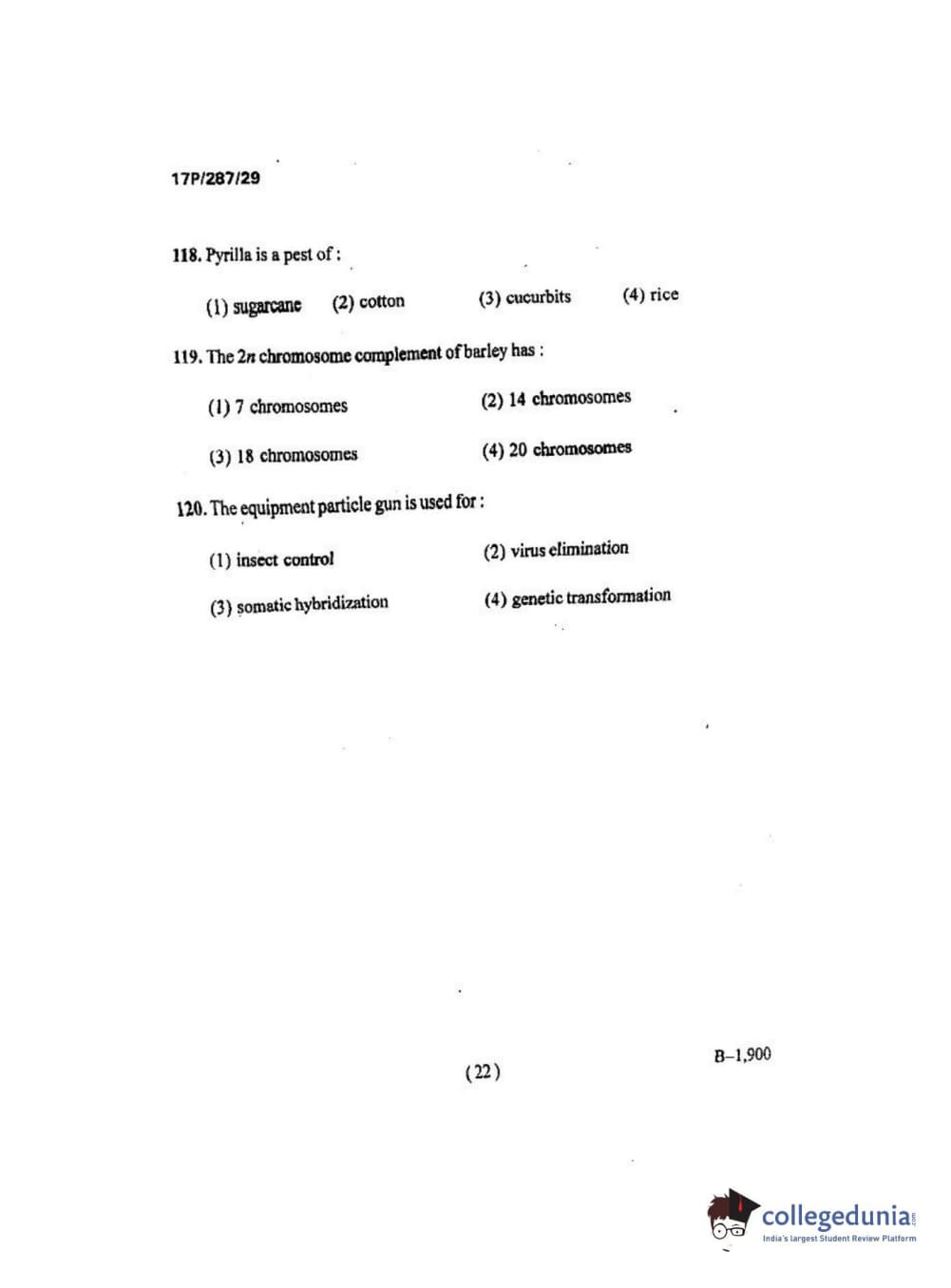 BHU PET 2017 M.Sc Plant Biotechnology Question paper with answer key pdf is available for download. The exam was successfully organized by Banaras Hindu University (BHU). The question paper comprised a total of 120 questions.