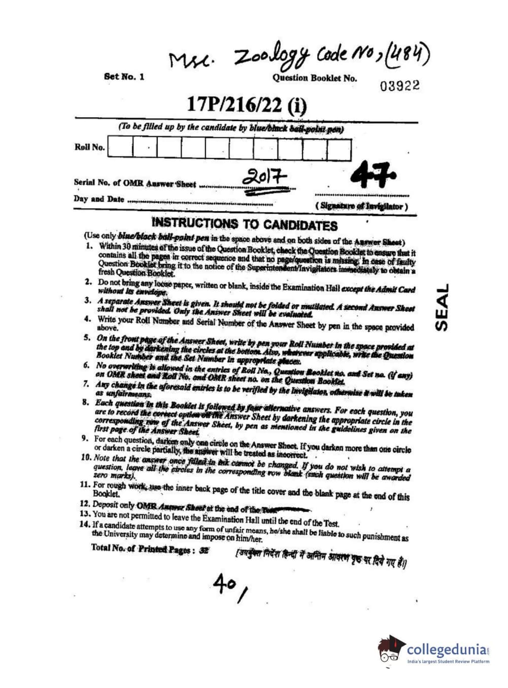 | BHU PET 2017 M.Sc Zoology Question Paper PDF | BHU PET 2017 M.Sc Zoology Answer Key PDF |