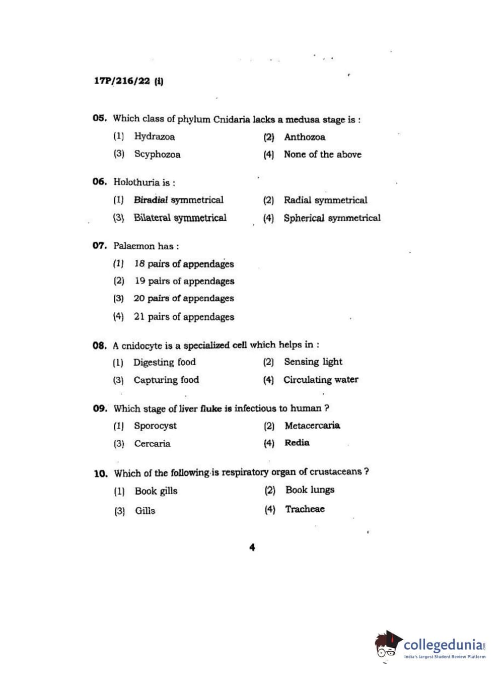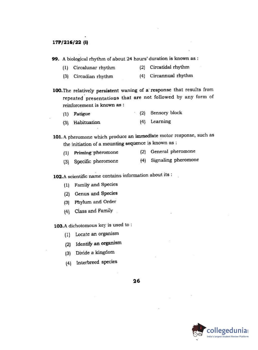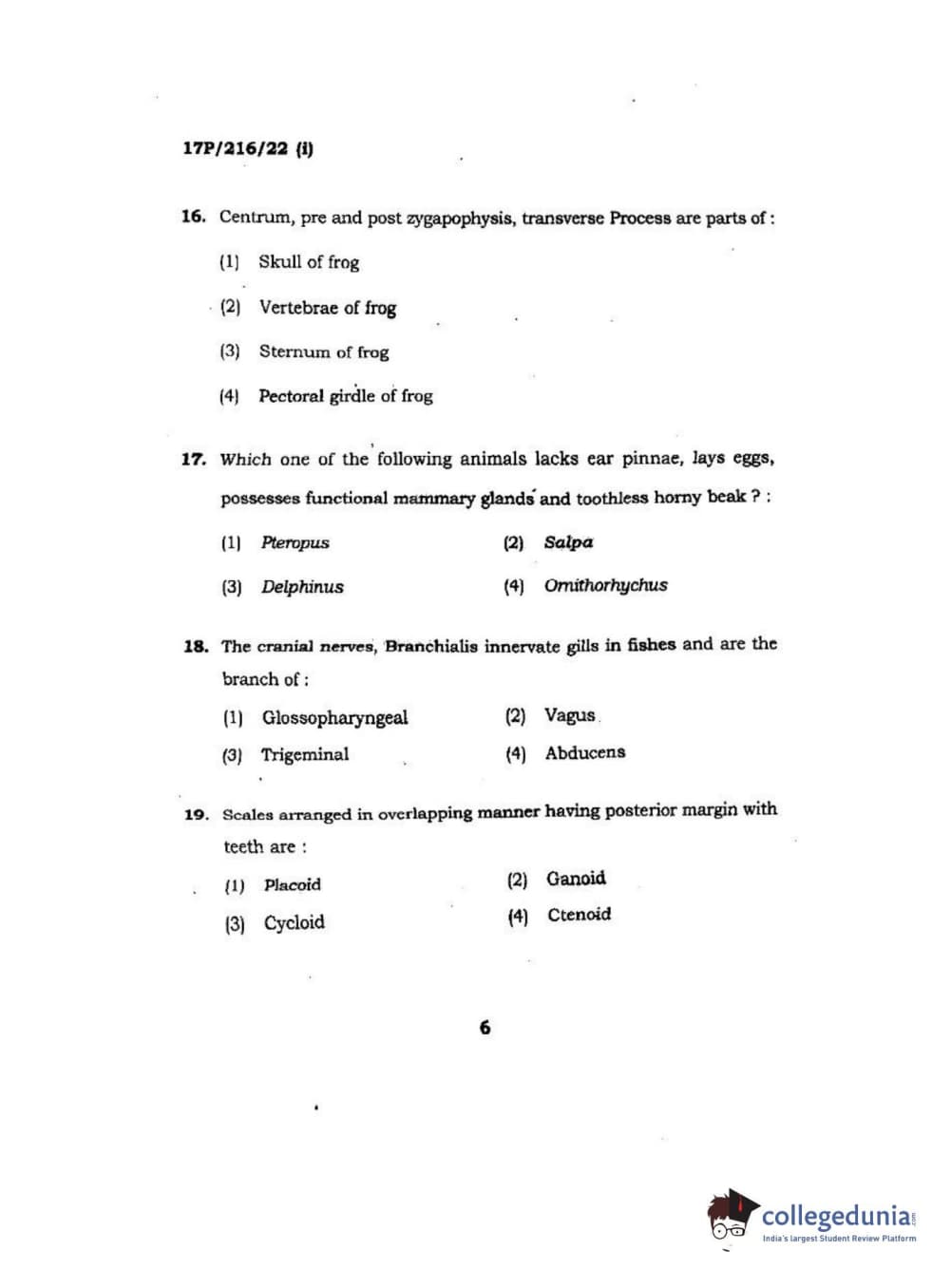 BHU PET 2017 M.Sc Zoology Question Paper with Answer Key PDFs