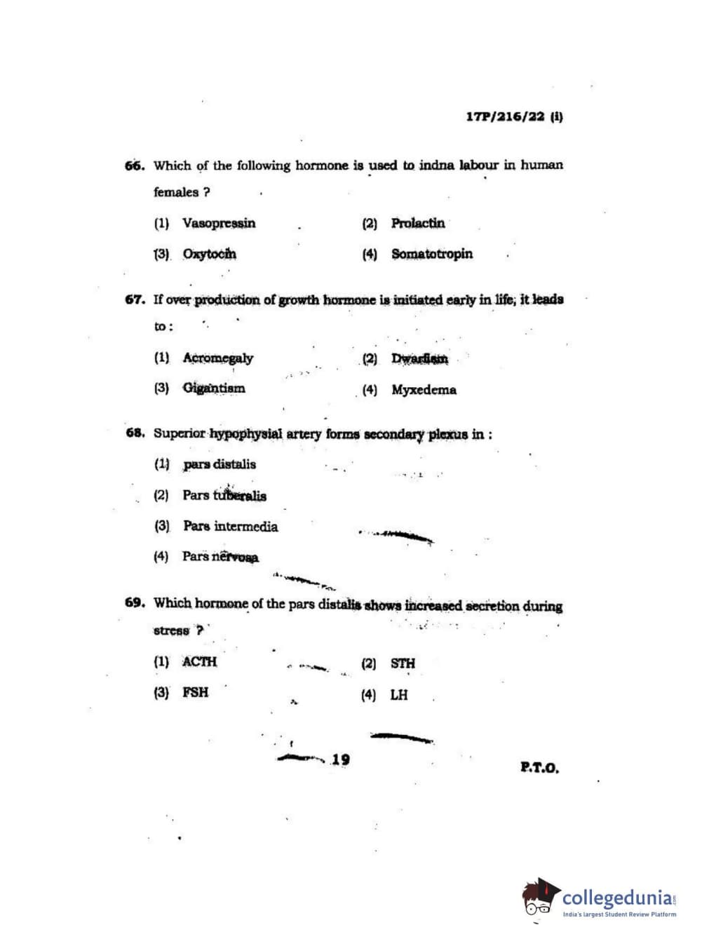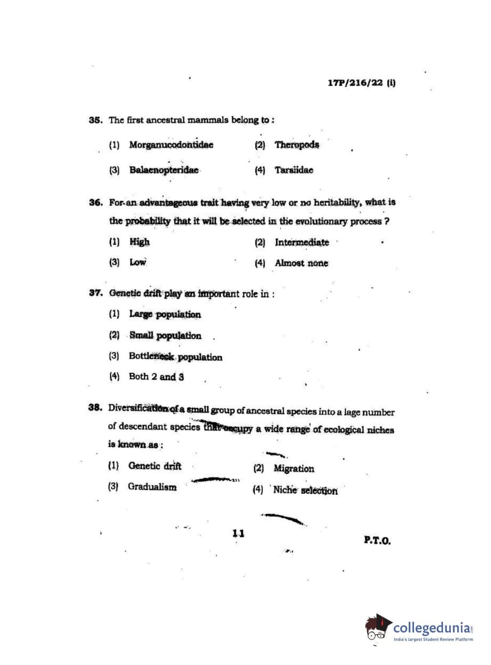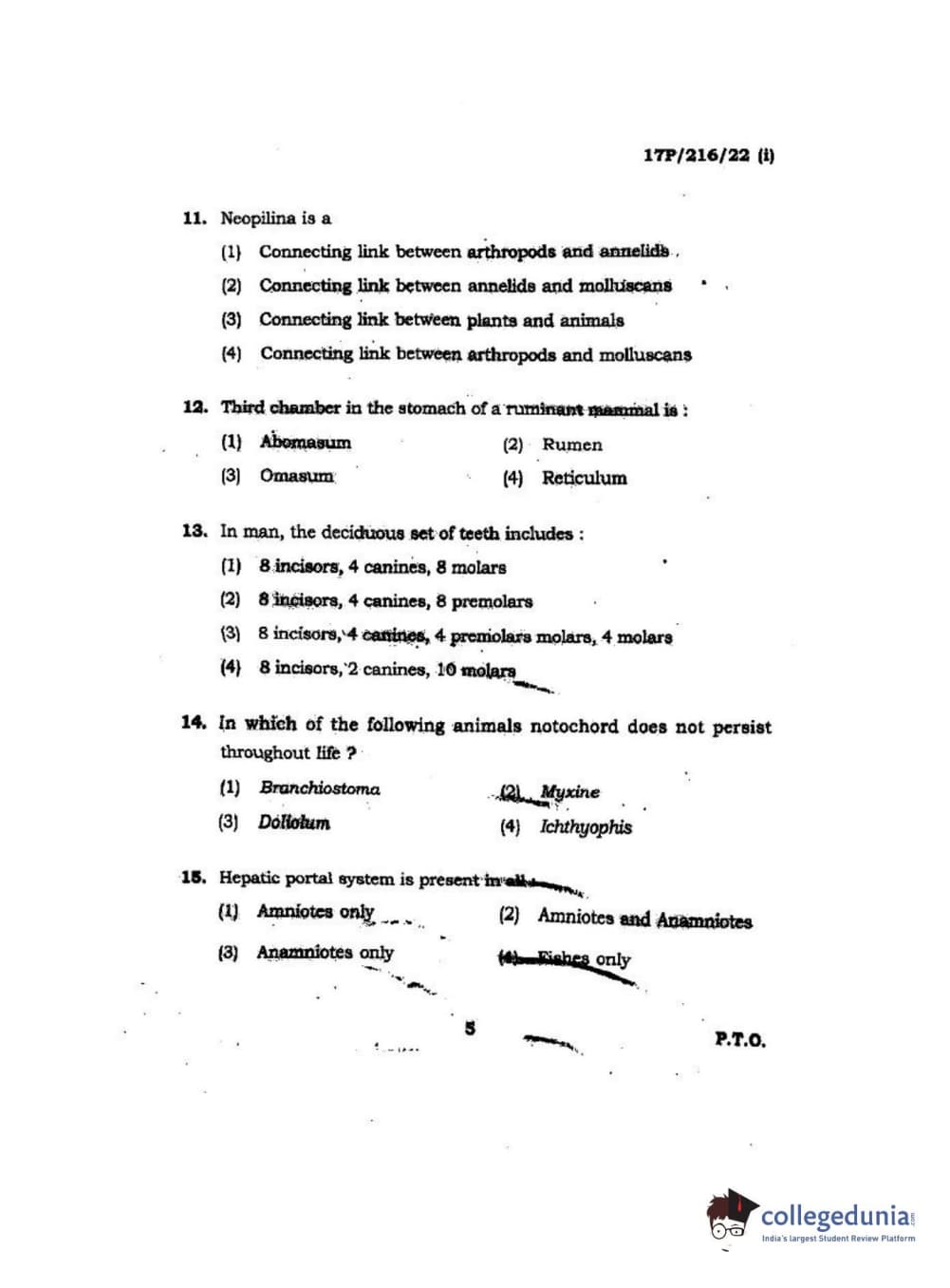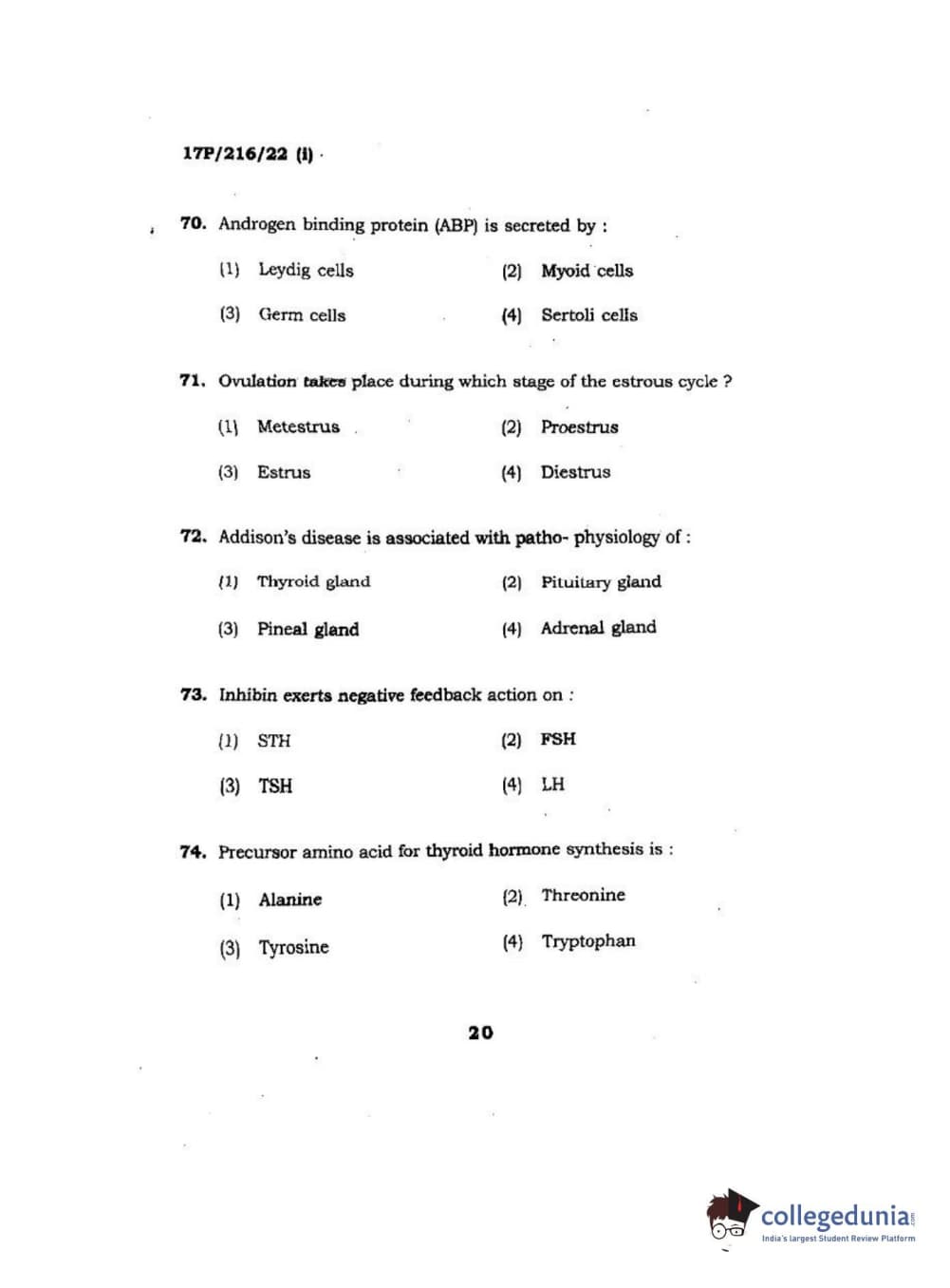 BHU PET 2017 M.Sc Zoology Question Paper with Answer Key PDFs