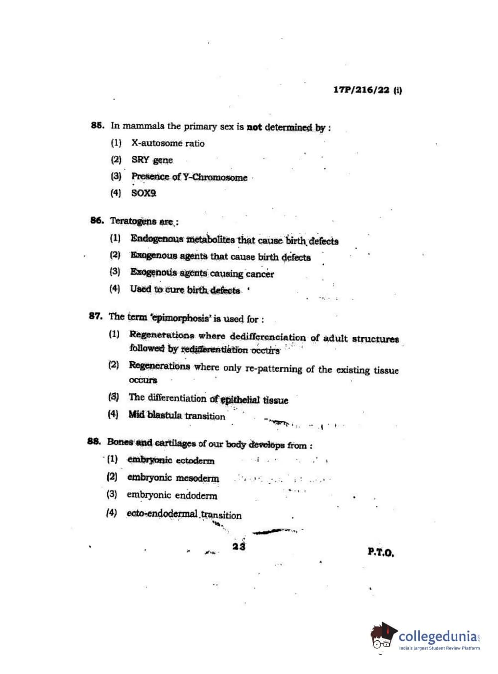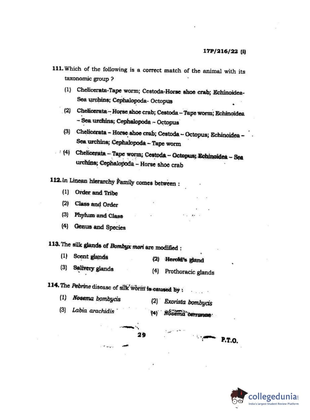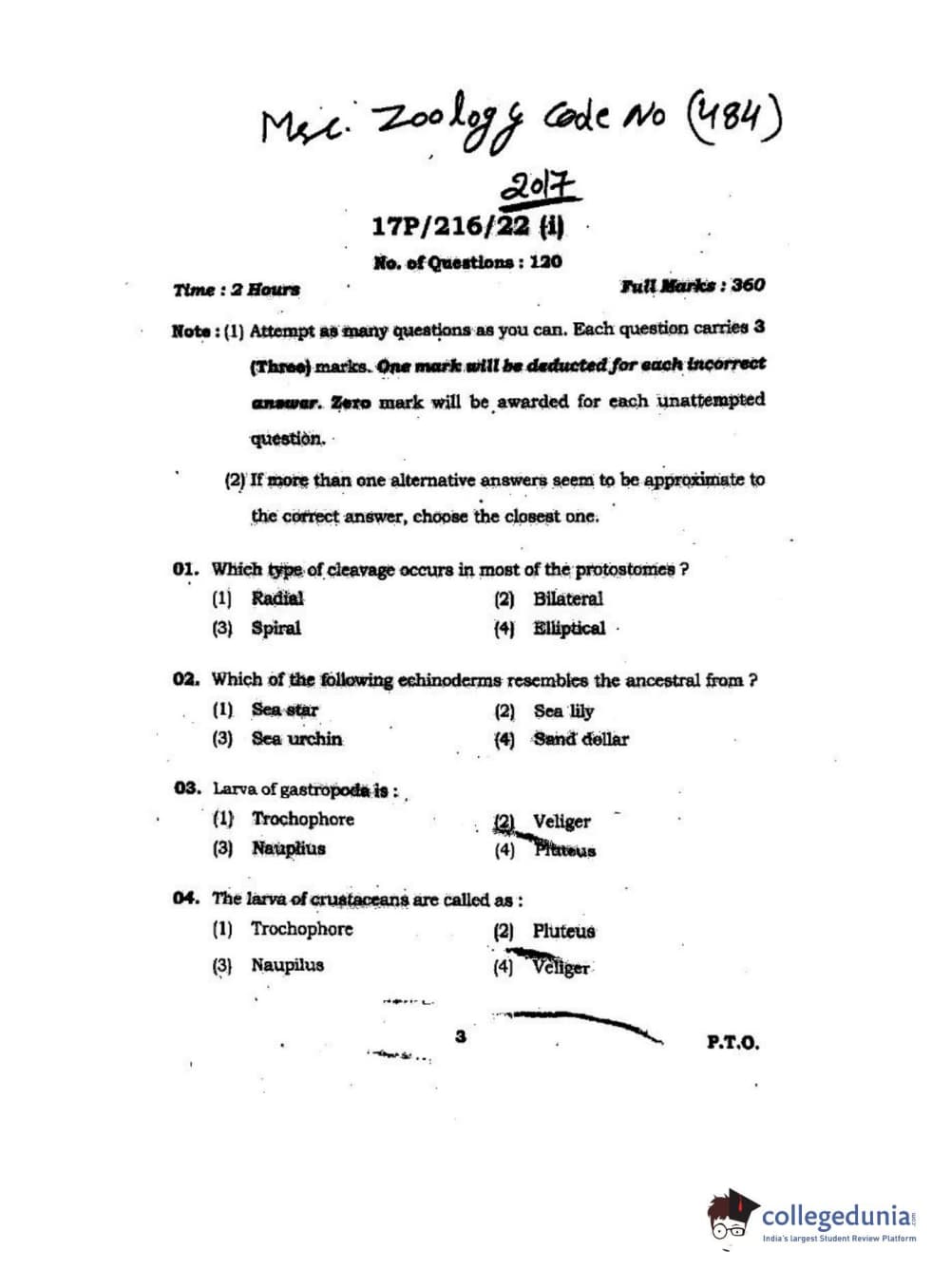 BHU PET 2017 M.Sc Zoology Question paper with answer key pdf is available for download. The exam was successfully organized by Banaras Hindu University (BHU). The question paper comprised a total of 120 questions.