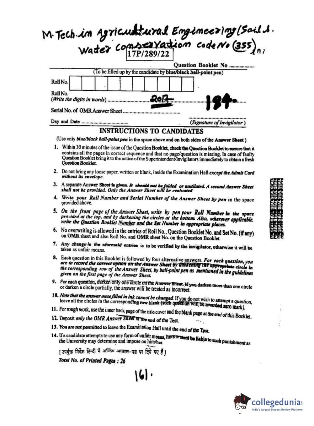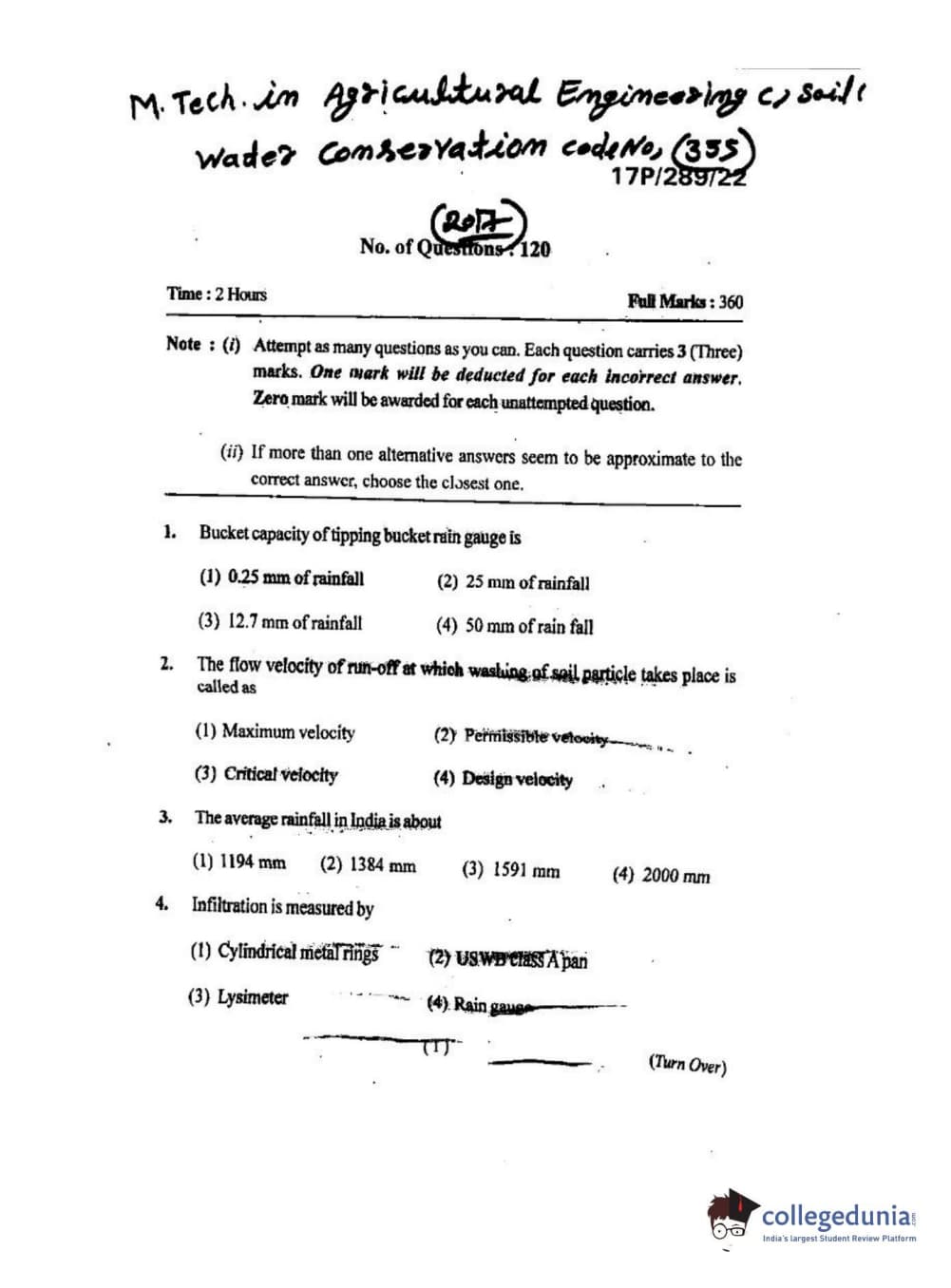 BHU PET 2017 M.Tech in Agricultural Engineer Question paper with answer key pdf is available for download. The exam was successfully organized by Banaras Hindu University (BHU). The question paper comprised a total of 120 questions.