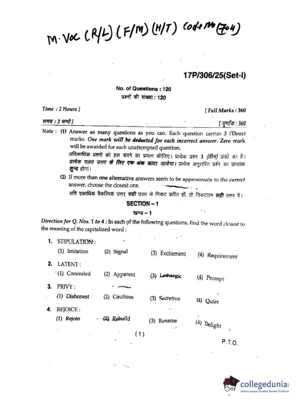 | BHU PET 2017 M.Voc Question Paper PDF | BHU PET 2017 M.Voc Answer Key PDF |