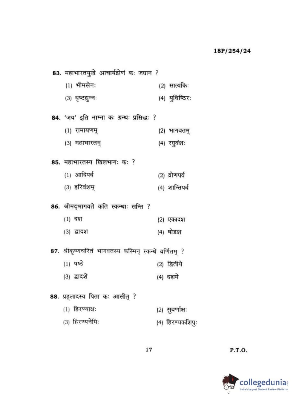 BHU PET 2018 Acharya Dharmagam Question paper with answer key pdf is available for download. The exam was successfully organized by Banaras Hindu University (BHU). The question paper comprised a total of 120 questions.