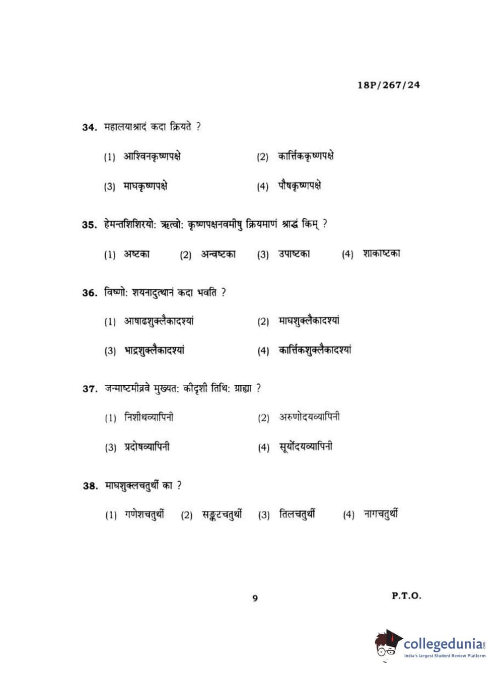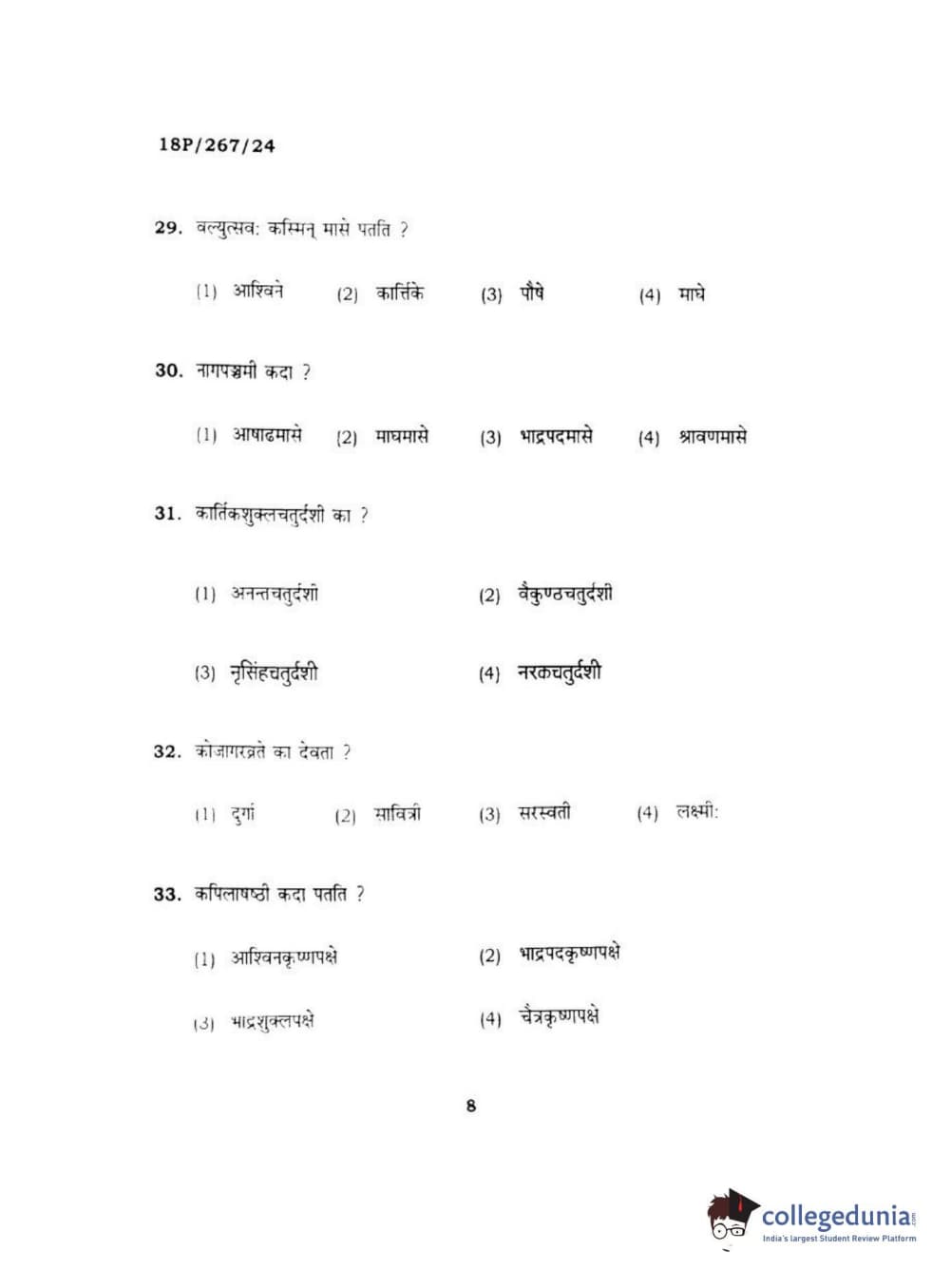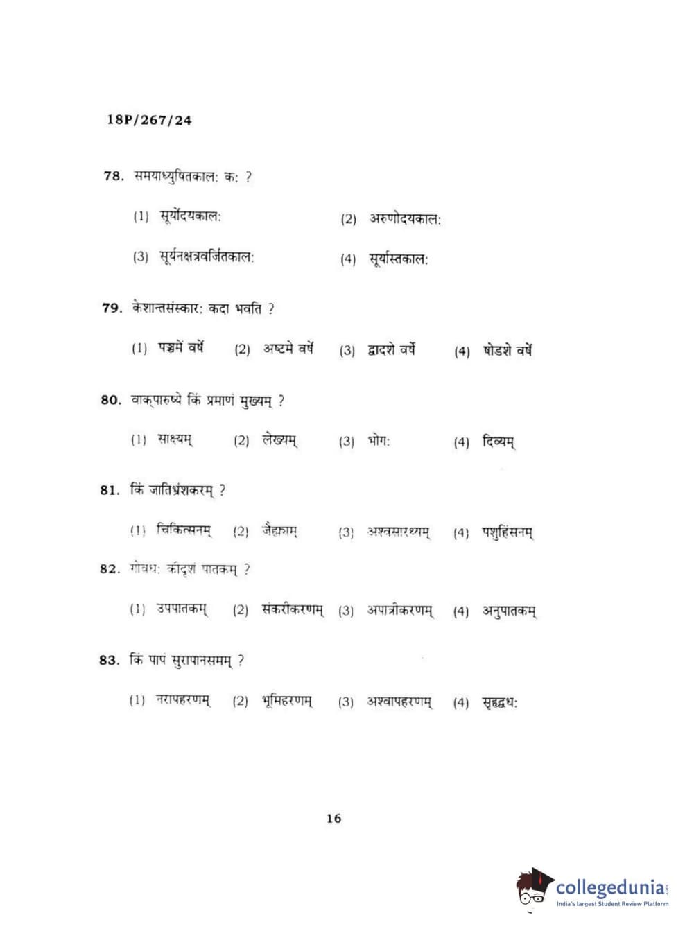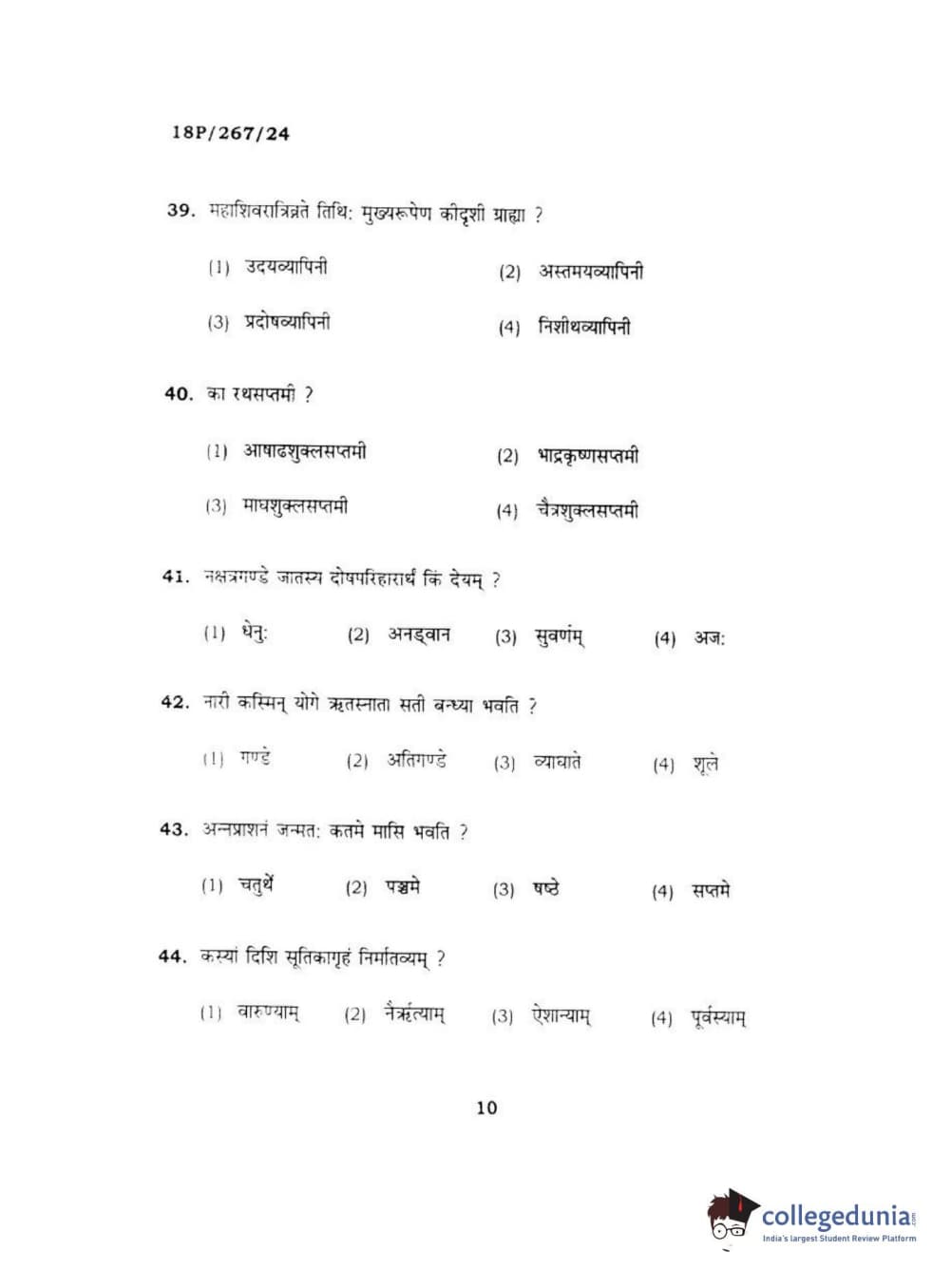 BHU PET 2018 Acharya in Dharmashastra Question Paper with Answer Key PDF in Hindi