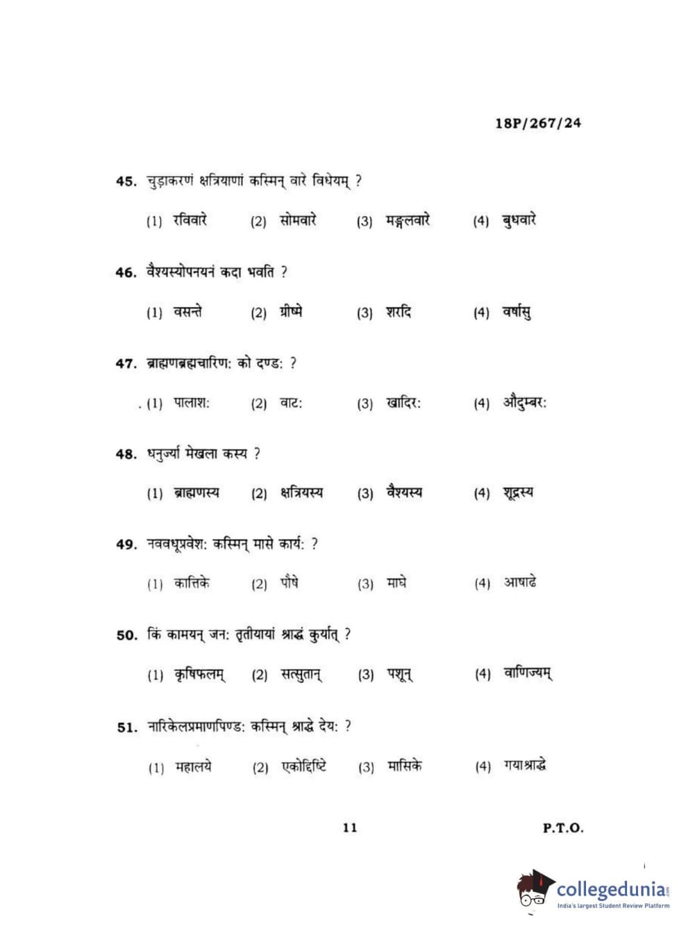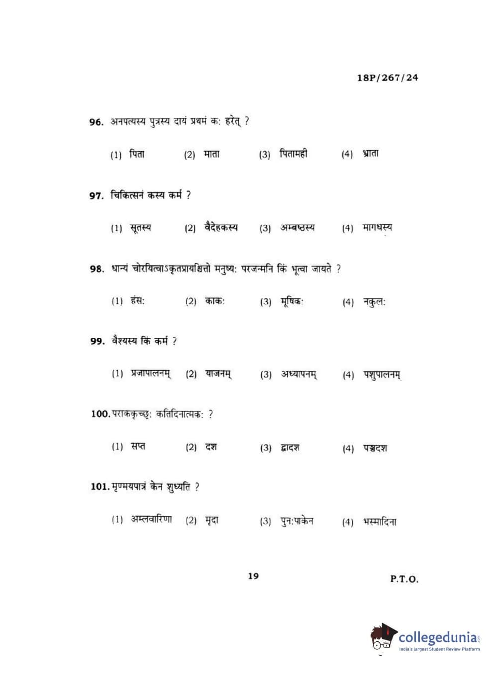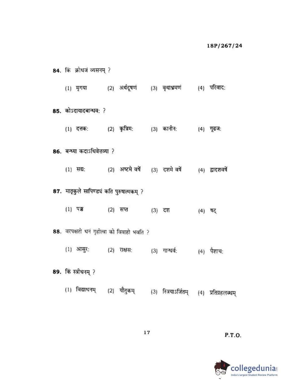 BHU PET 2018 Acharya in Dharmashastra Question paper with answer key pdf is available for download. The exam was successfully organized by Banaras Hindu University (BHU). The question paper comprised a total of 120 questions.