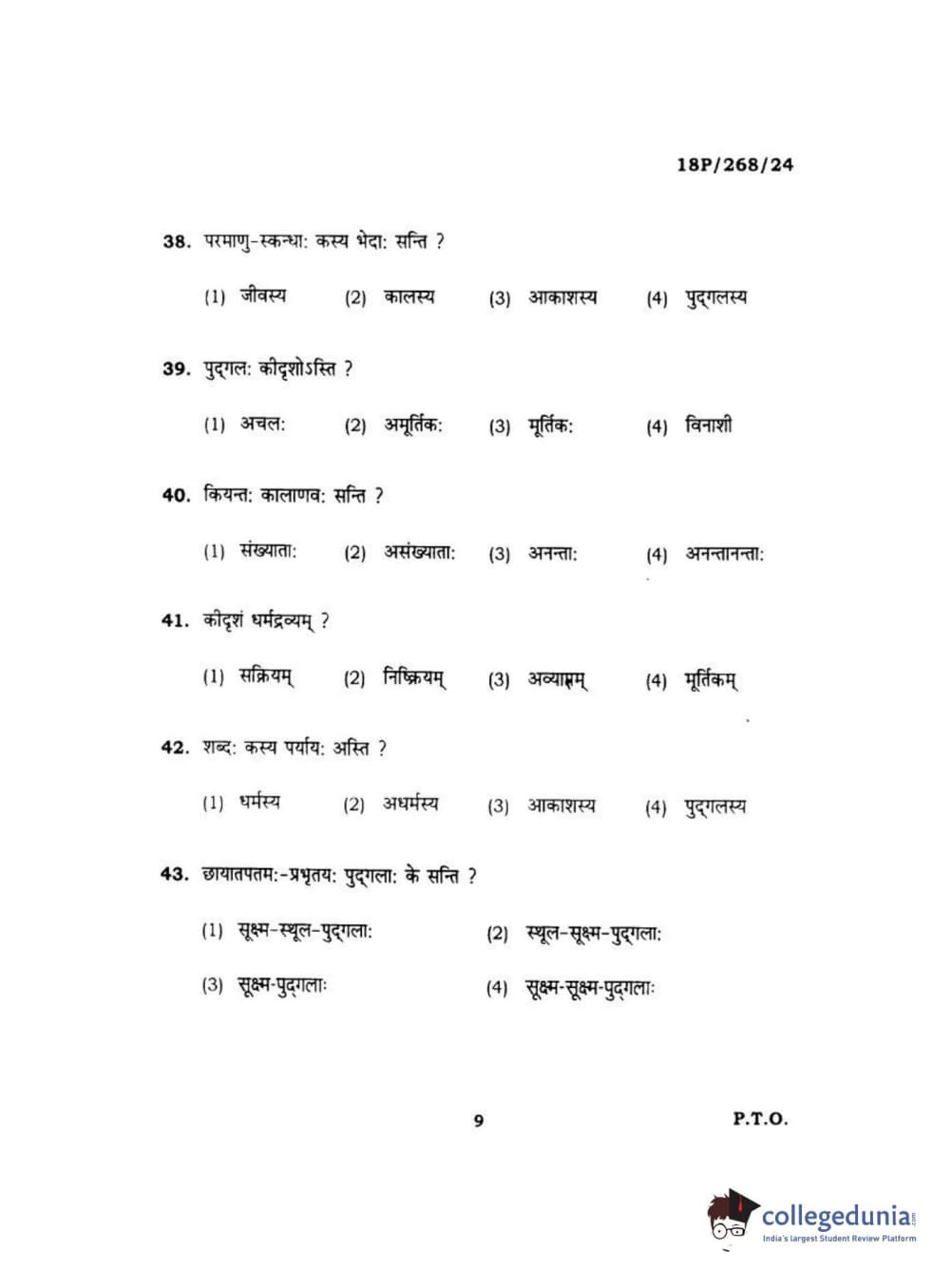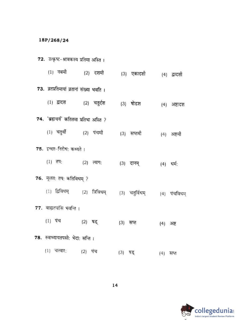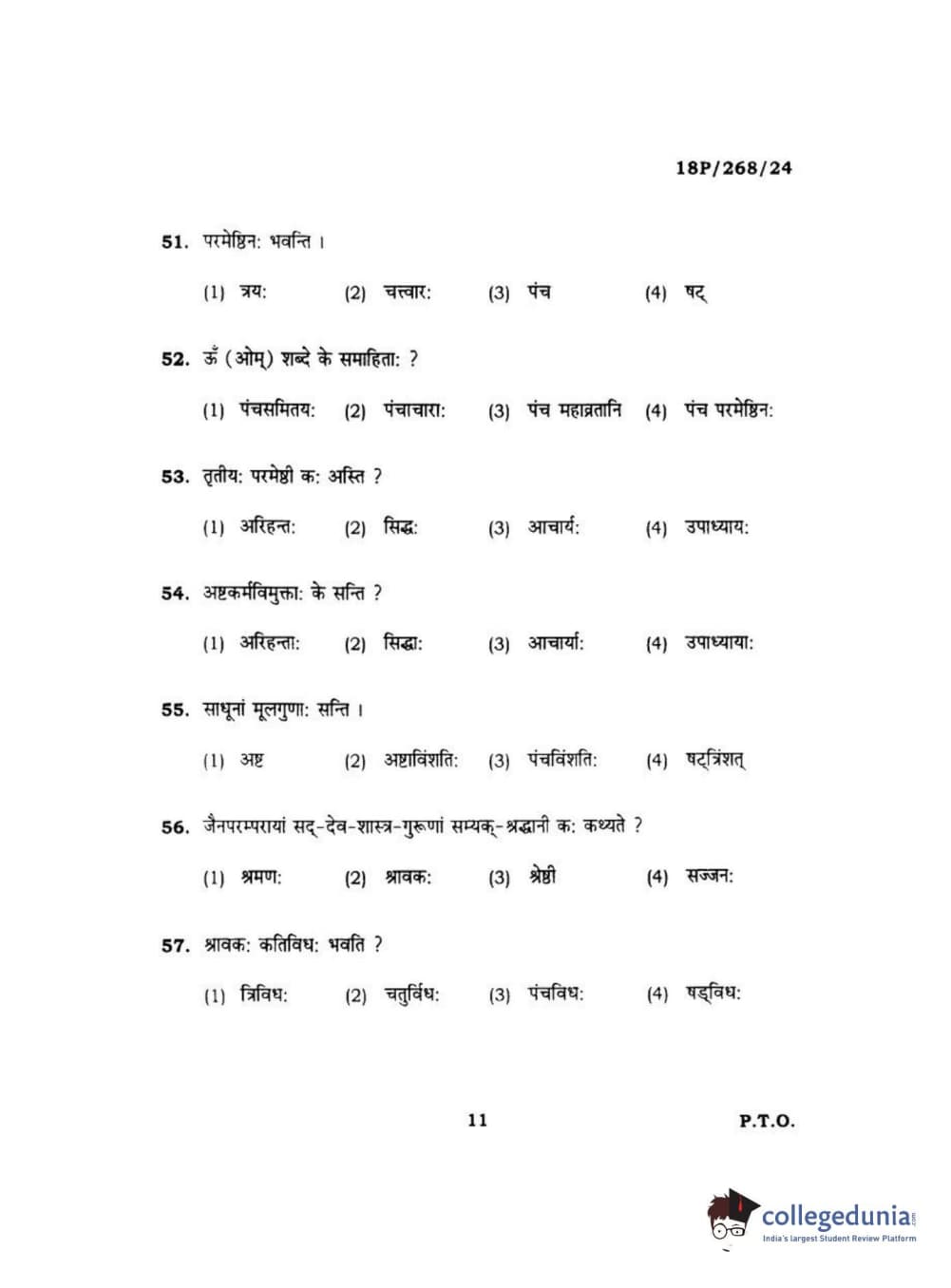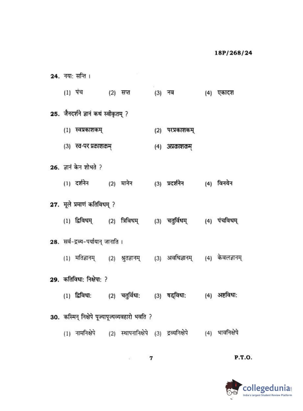 BHU PET 2018 Acharya jain darshan Question Paper with Answer Key PDF in Hindi