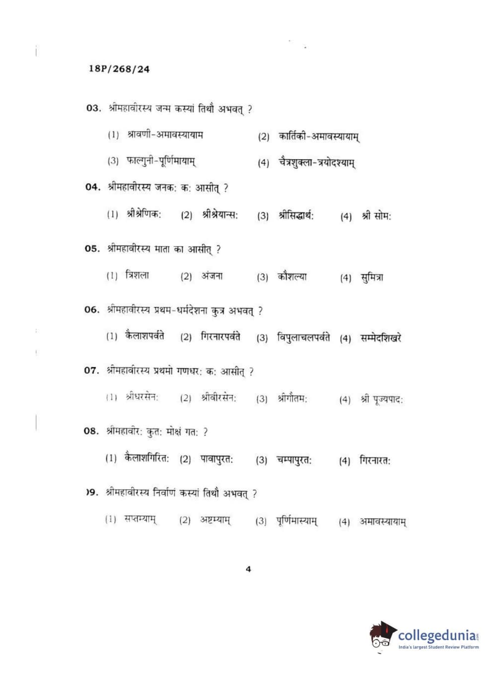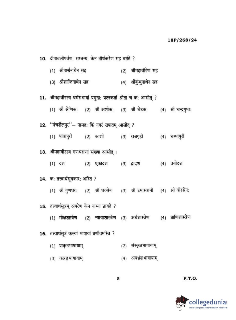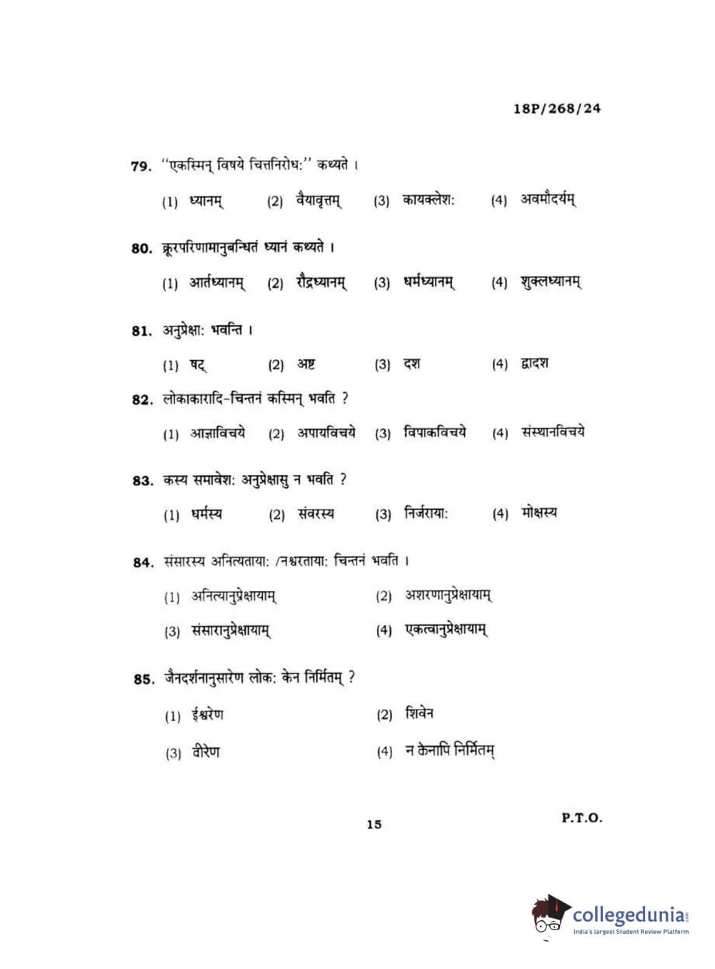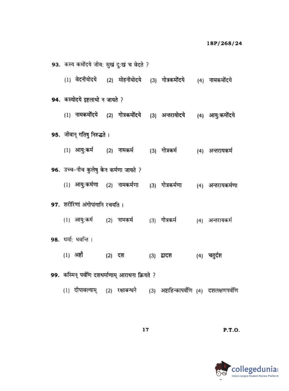 BHU PET 2018 Acharya jain darshan Question Paper with Answer Key PDF in Hindi