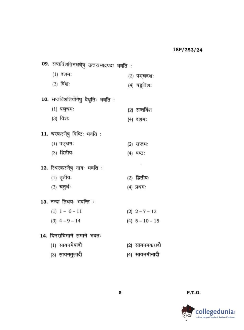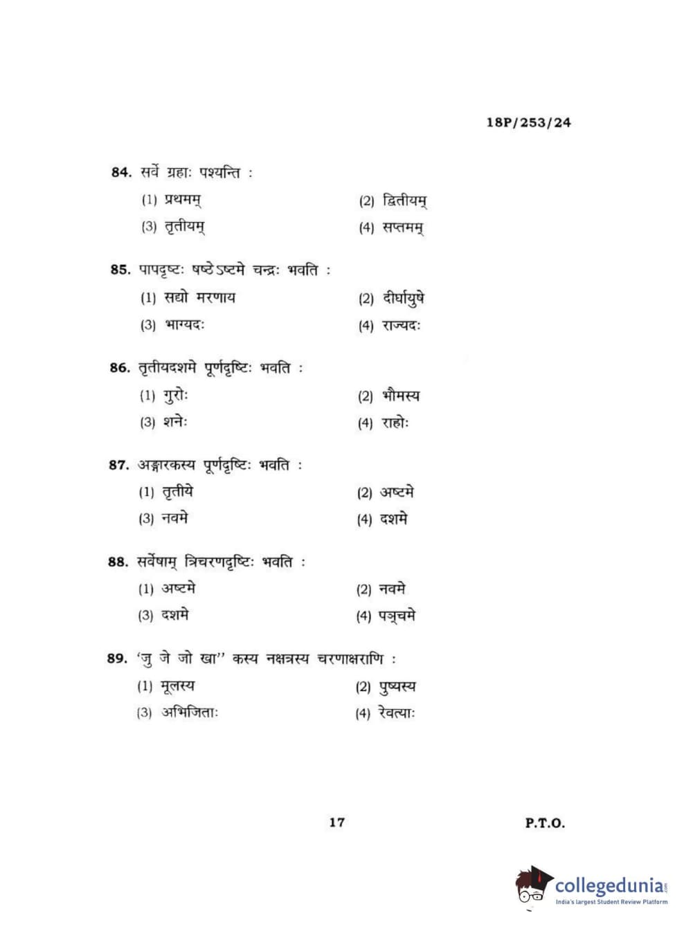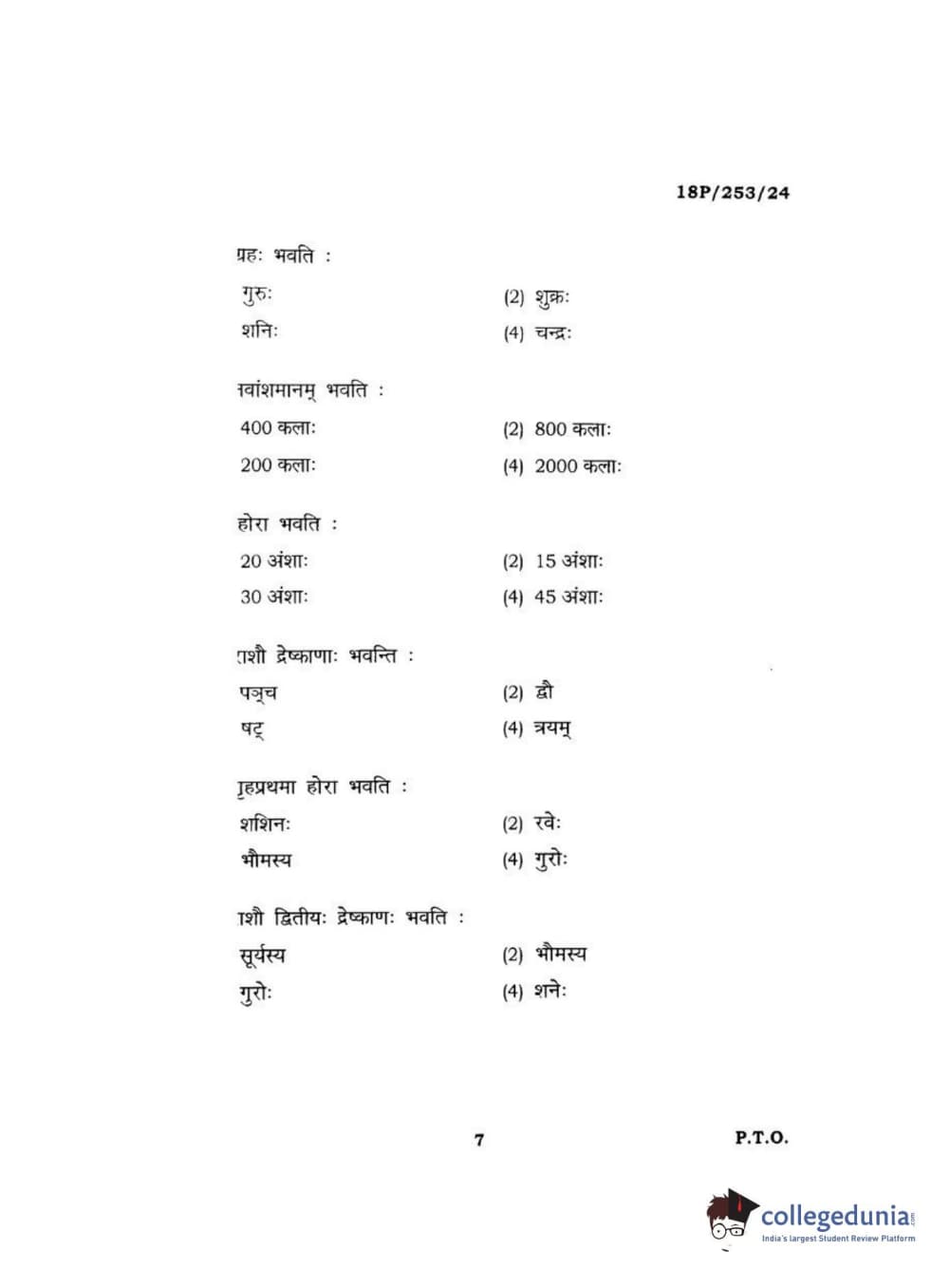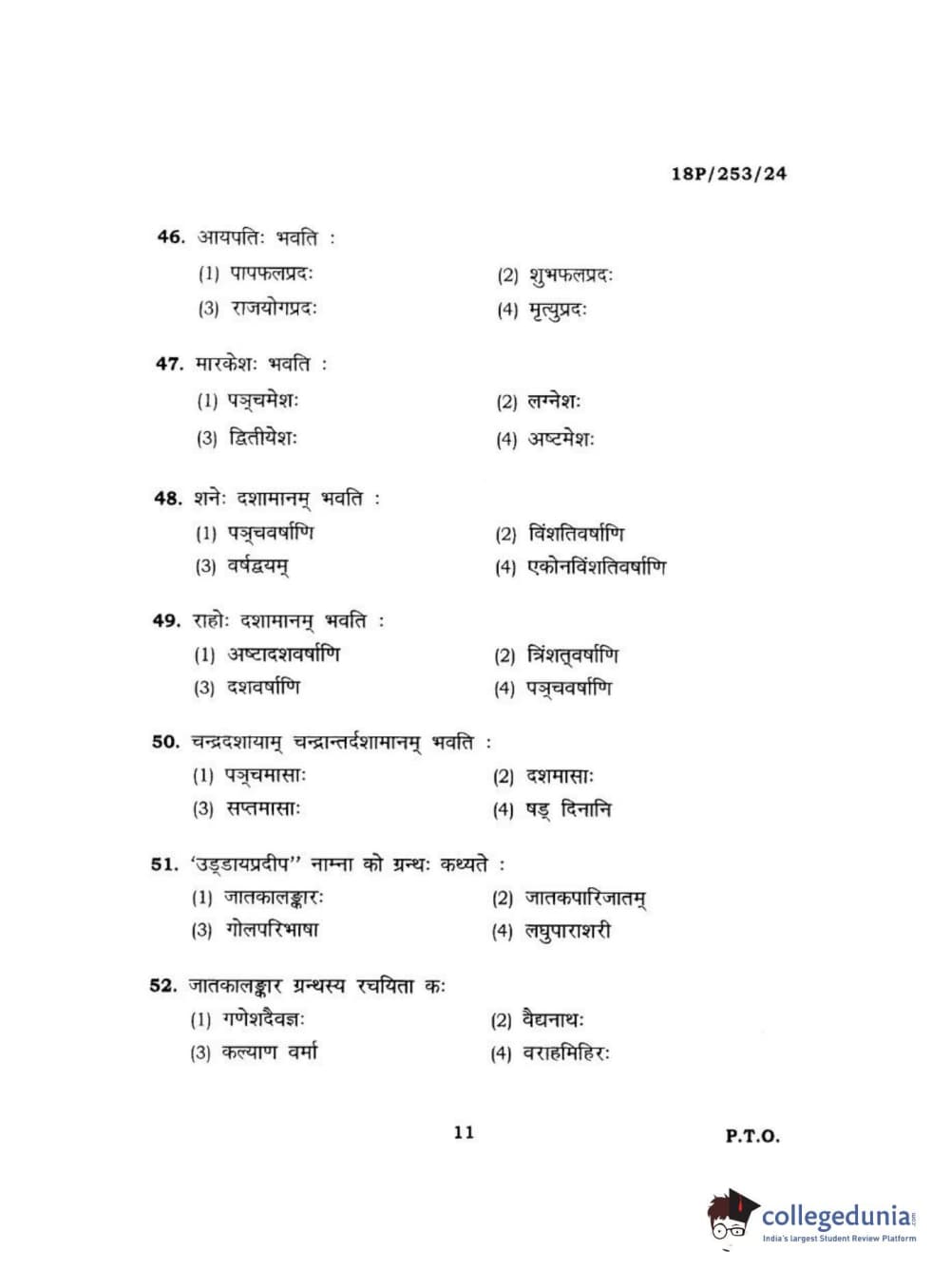 BHU PET 2018 ACHARYA JOYTISH FALIT Question Paper with Answer Key PDF in Hindi