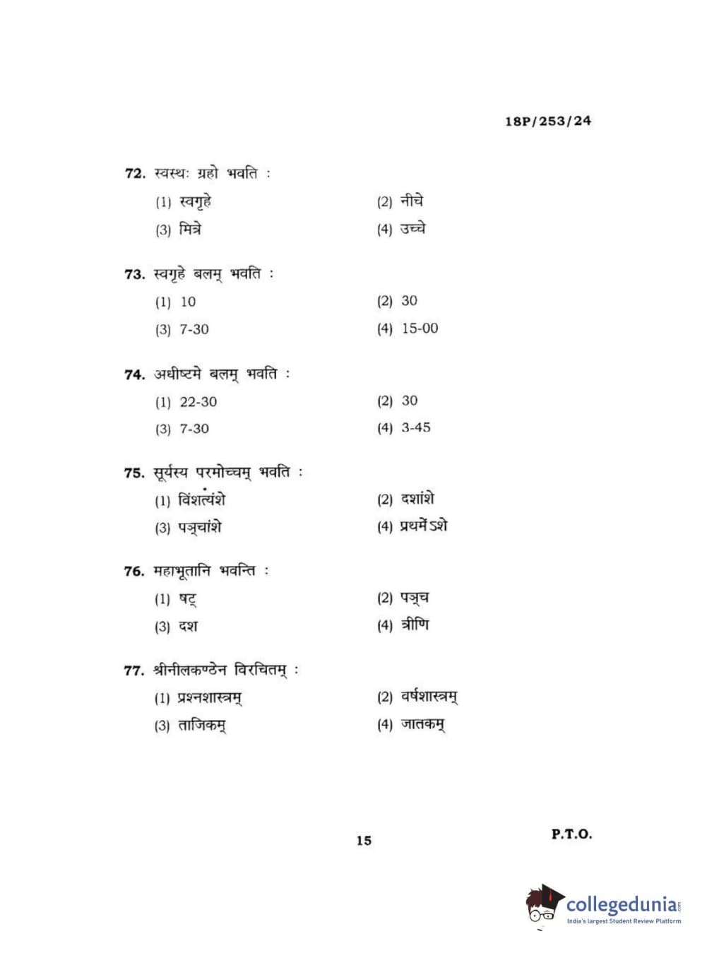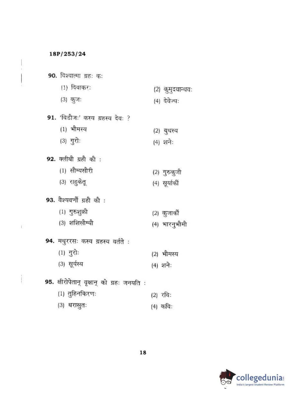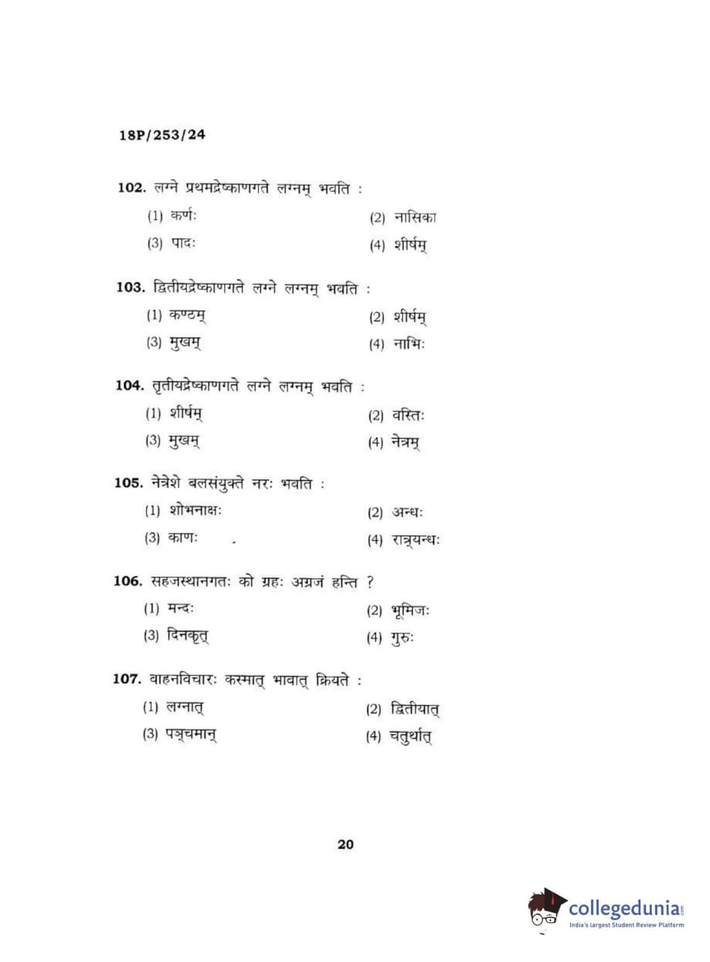 BHU PET 2018 ACHARYA JOYTISH FALIT Question paper with answer key pdf is available for download. The exam was successfully organized by Banaras Hindu University (BHU). The question paper comprised a total of 120 questions.