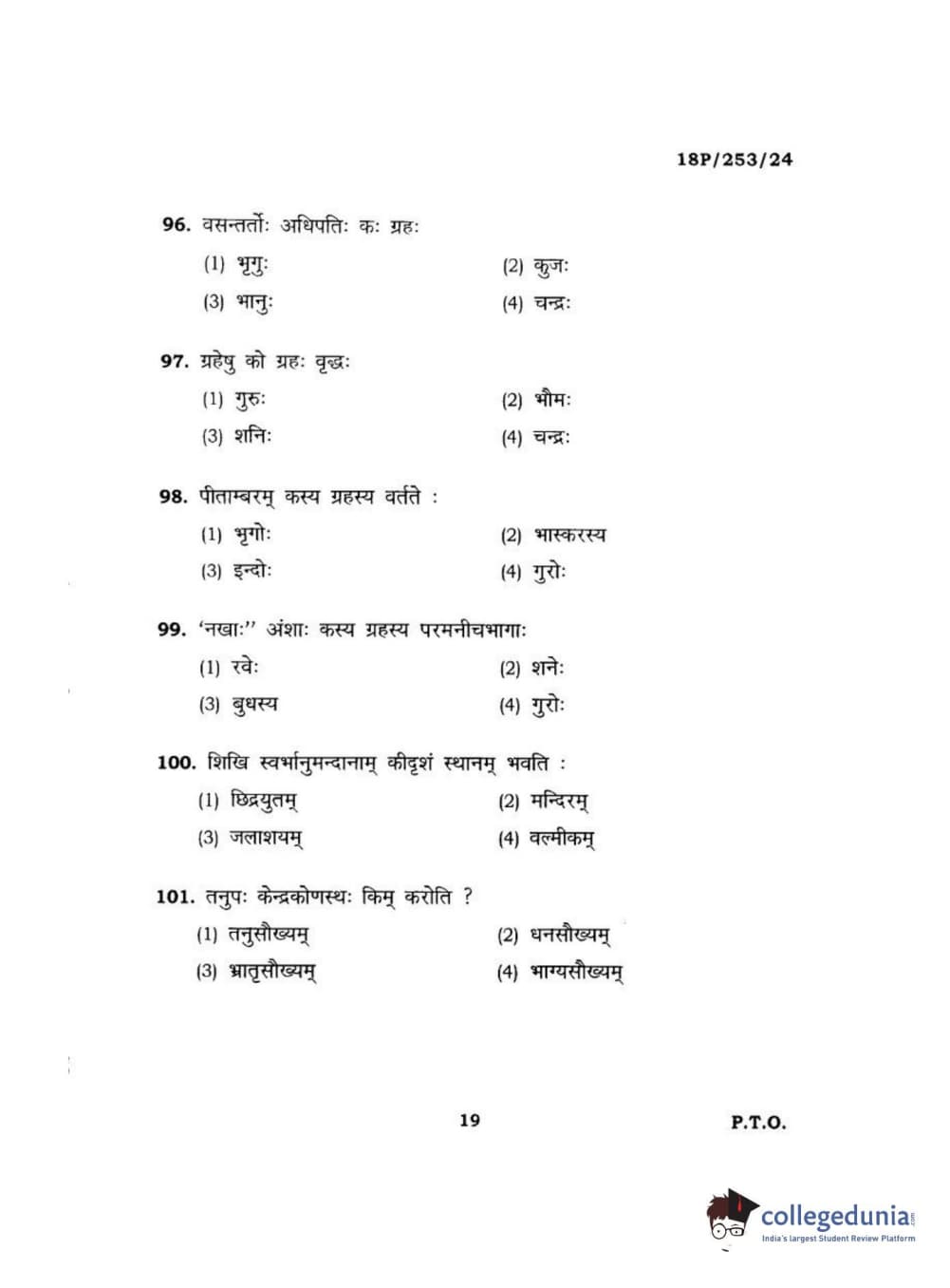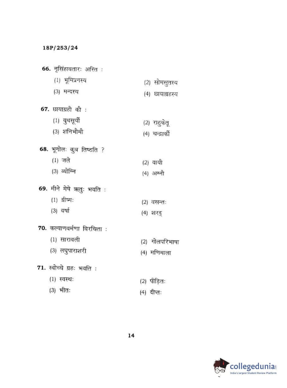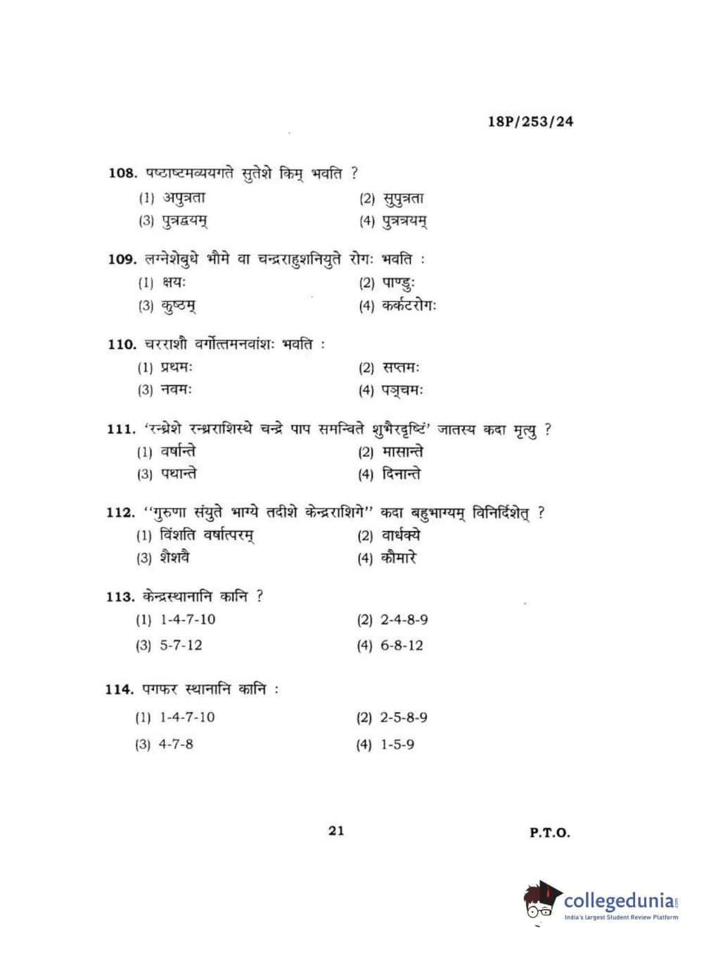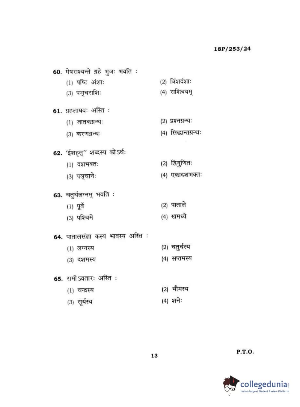 BHU PET 2018 ACHARYA JOYTISH FALIT Question paper with answer key pdf is available for download. The exam was successfully organized by Banaras Hindu University (BHU). The question paper comprised a total of 120 questions.