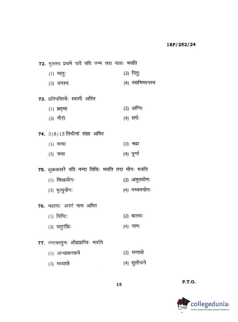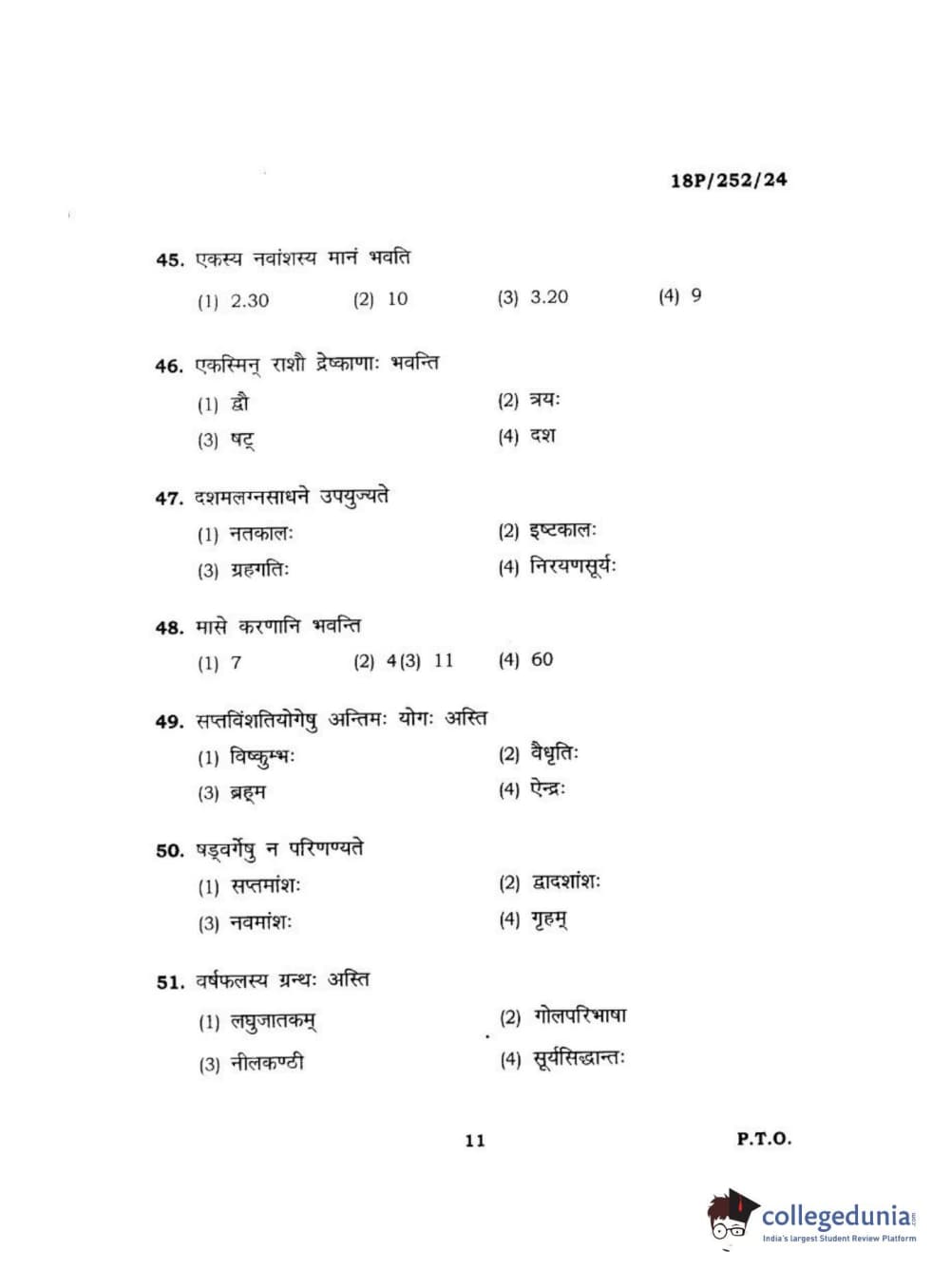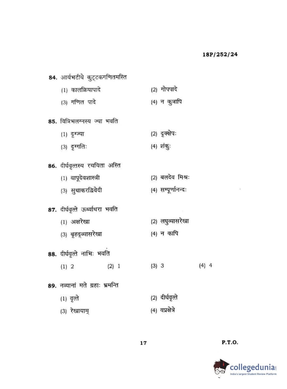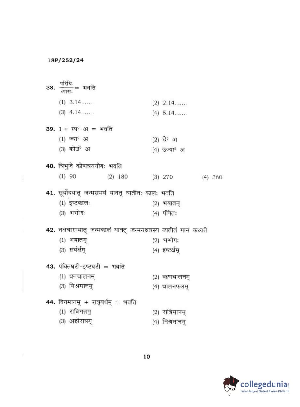BHU PET 2018 ACHARYA JOYTISH GANIT Question Paper with Answer Key PDF in Hindi