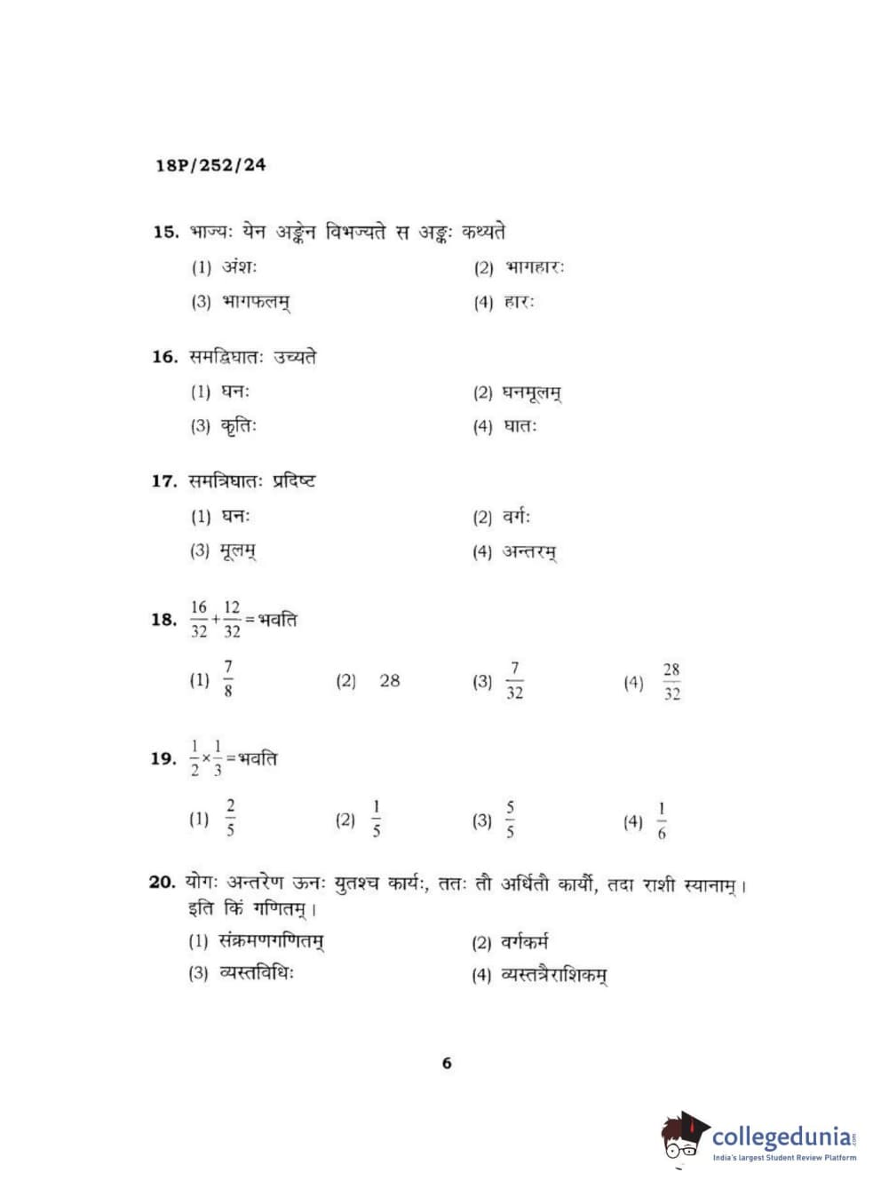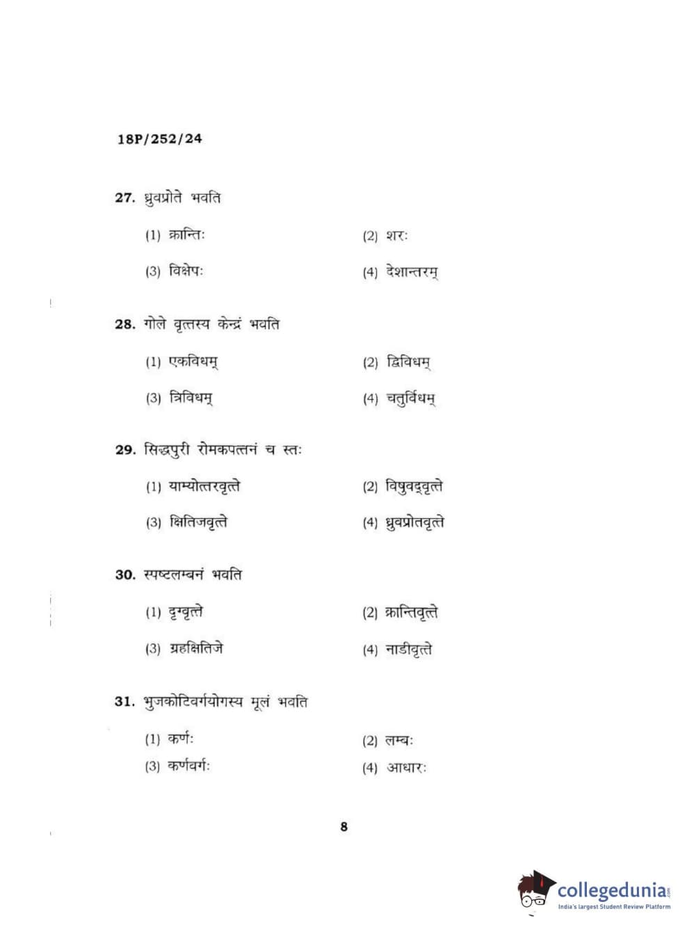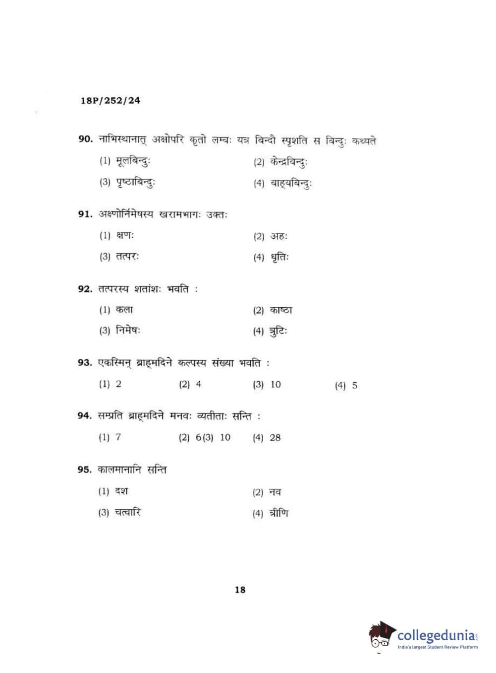 BHU PET 2018 ACHARYA JOYTISH GANIT Question Paper with Answer Key PDF in Hindi