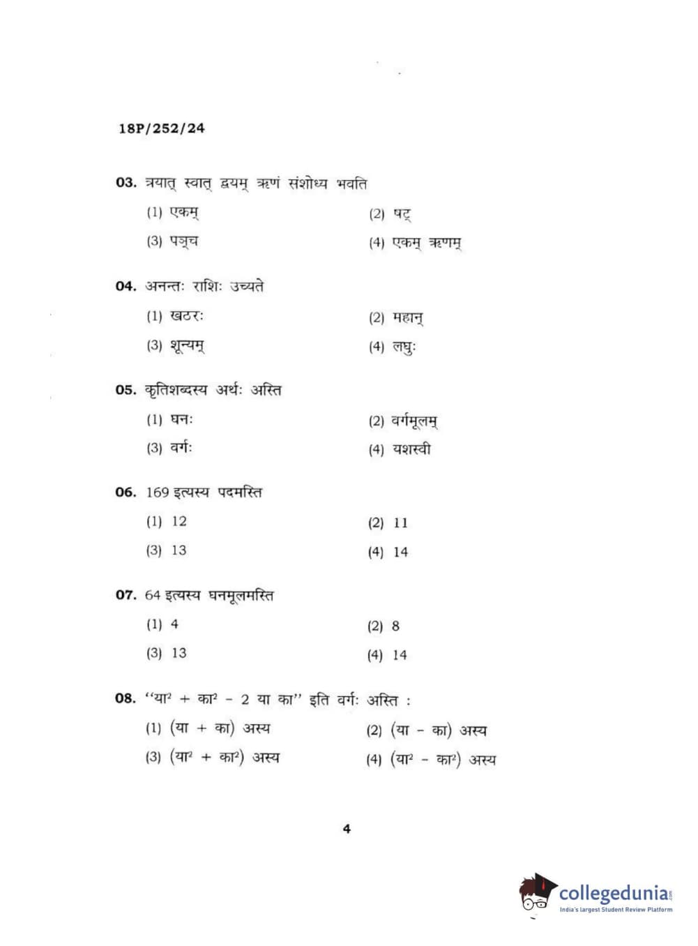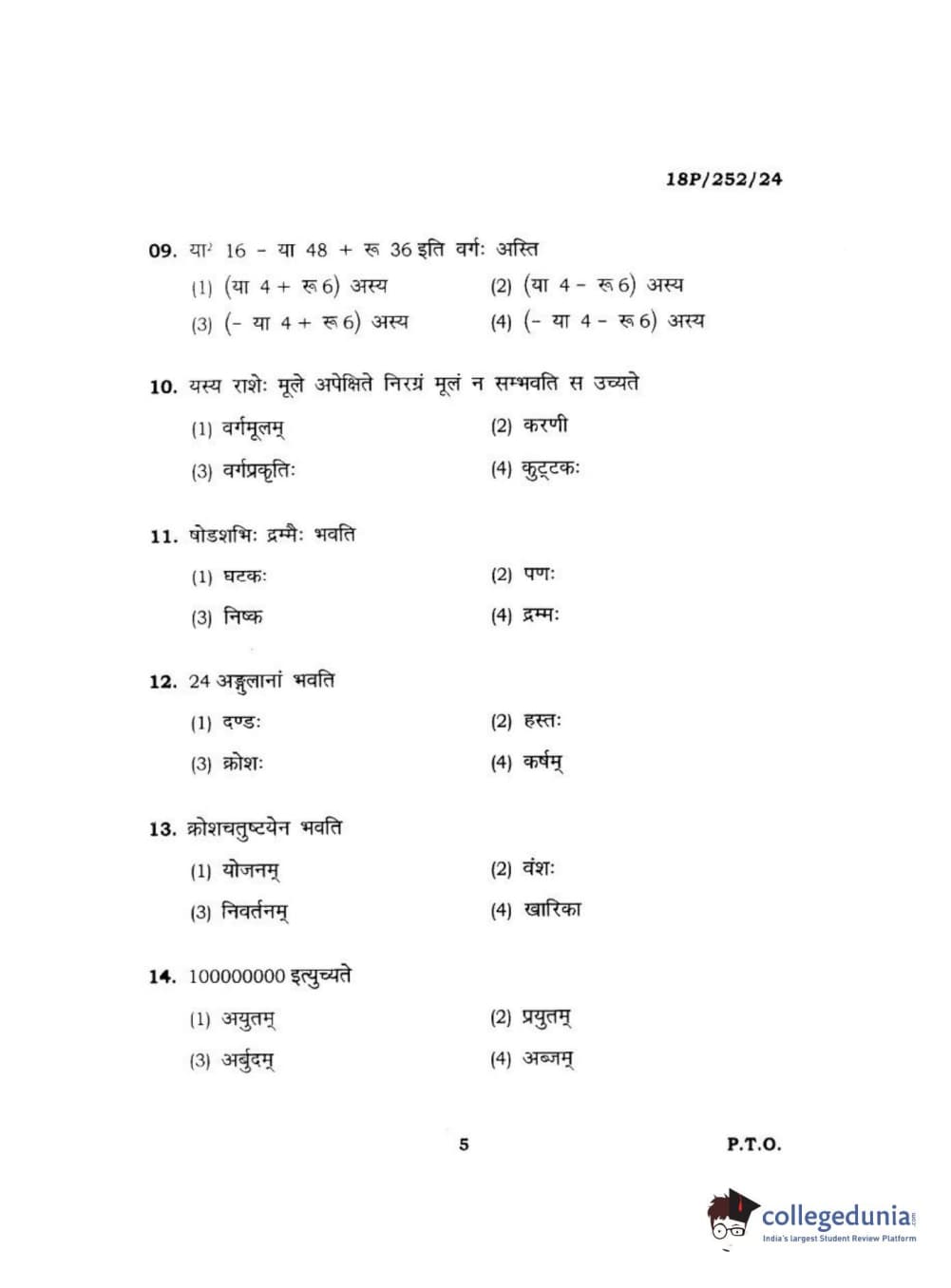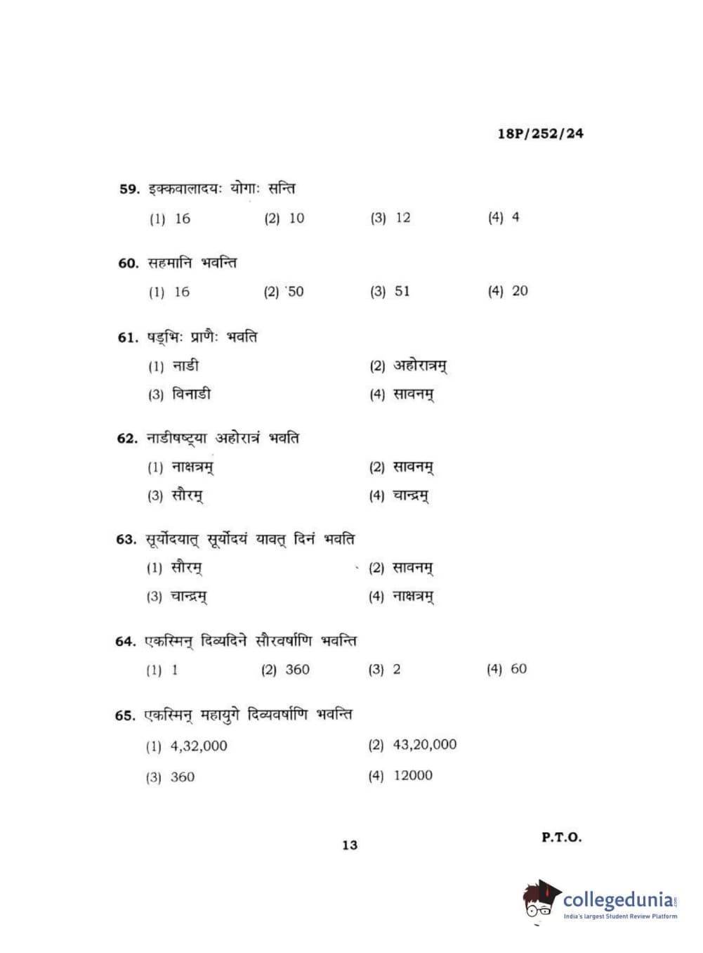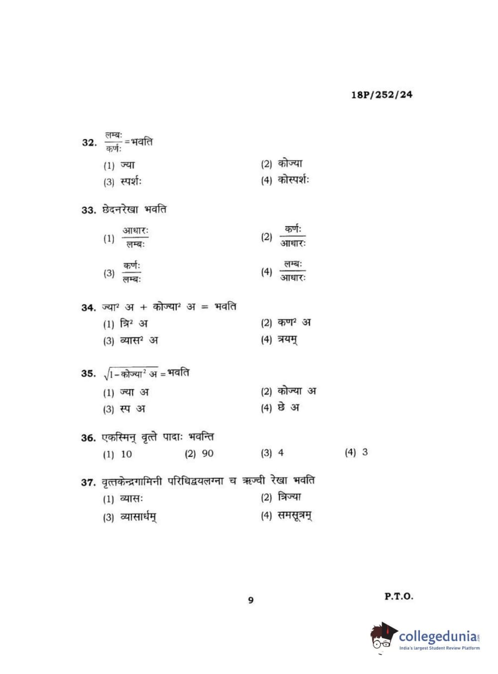 BHU PET 2018 ACHARYA JOYTISH GANIT Question Paper with Answer Key PDF in Hindi