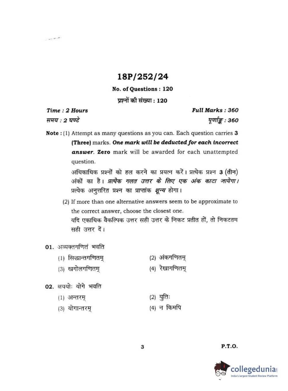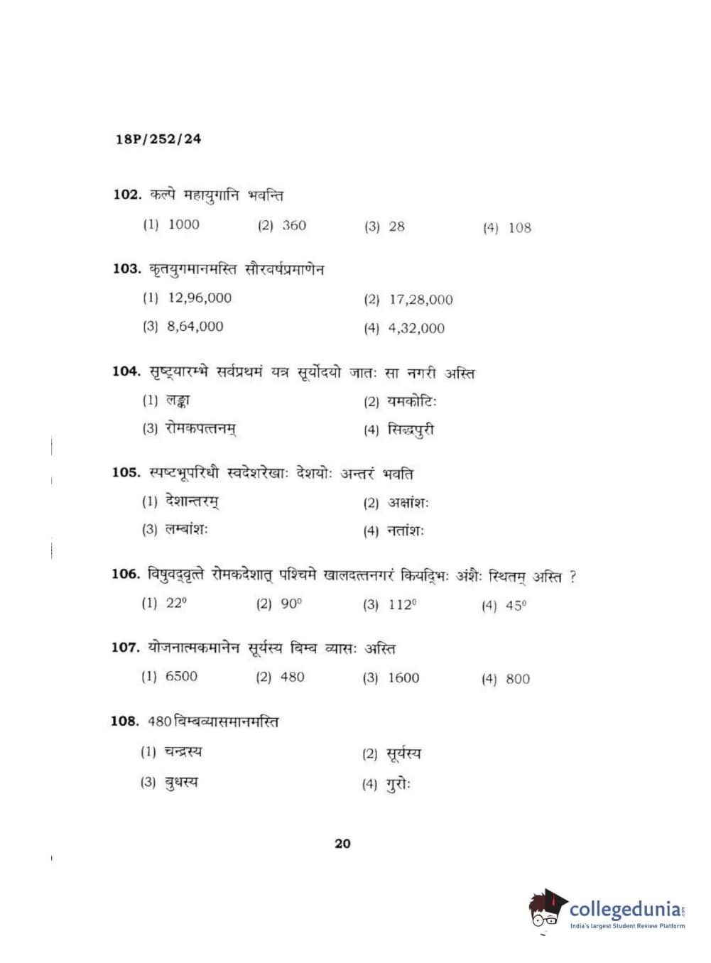 BHU PET 2018 ACHARYA JOYTISH GANIT Question paper with answer key pdf is available for download. The exam was successfully organized by Banaras Hindu University (BHU). The question paper comprised a total of 120 questions.