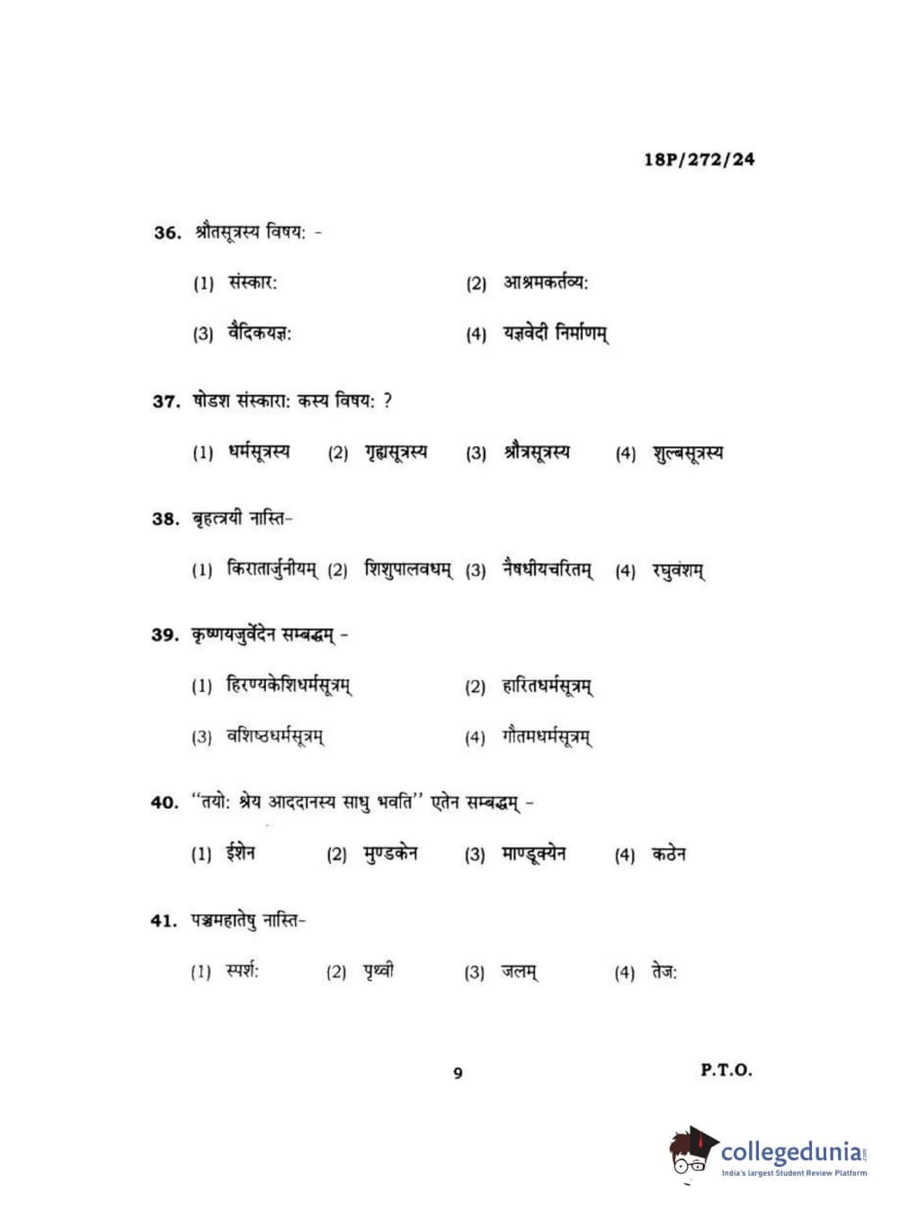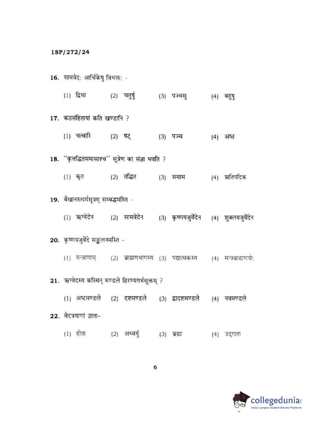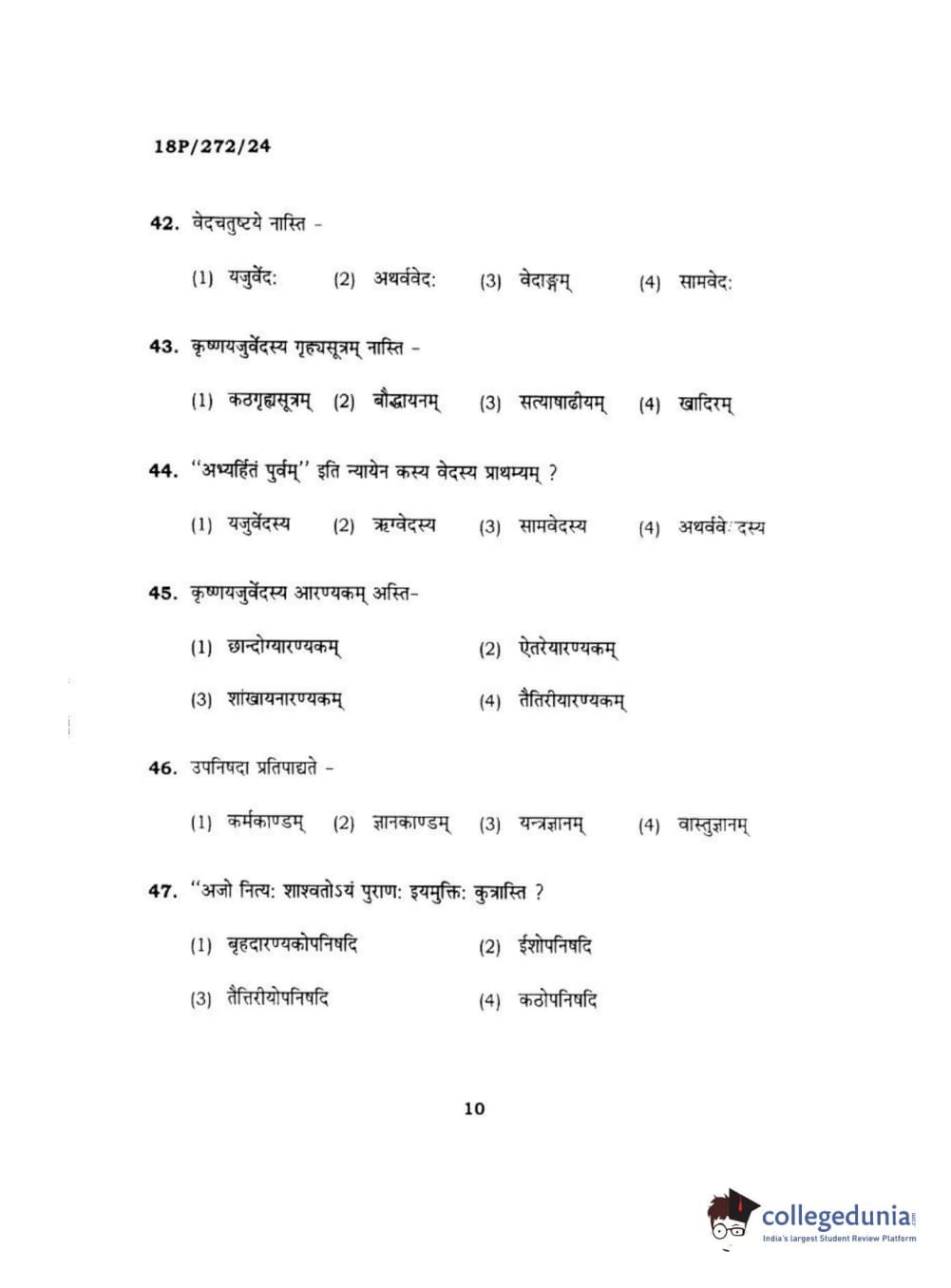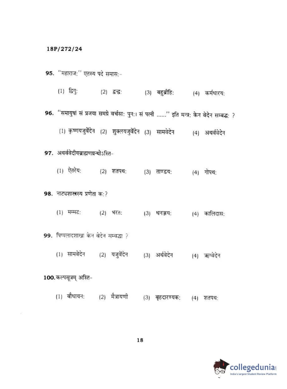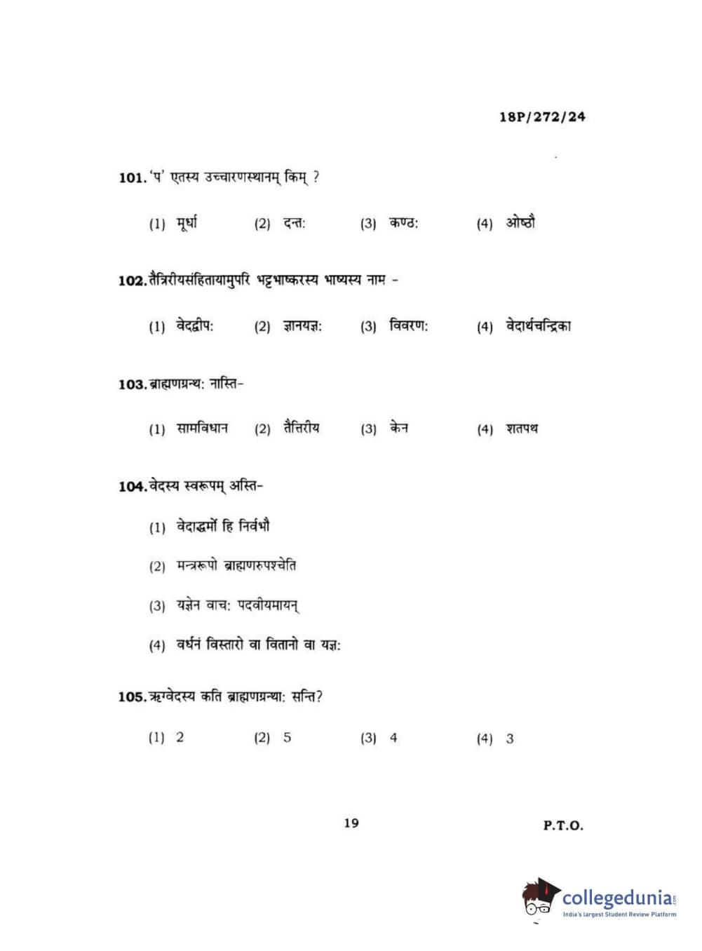 BHU PET 2018 Acharya krishna yajurveda Question Paper with Answer Key PDF in Hindi