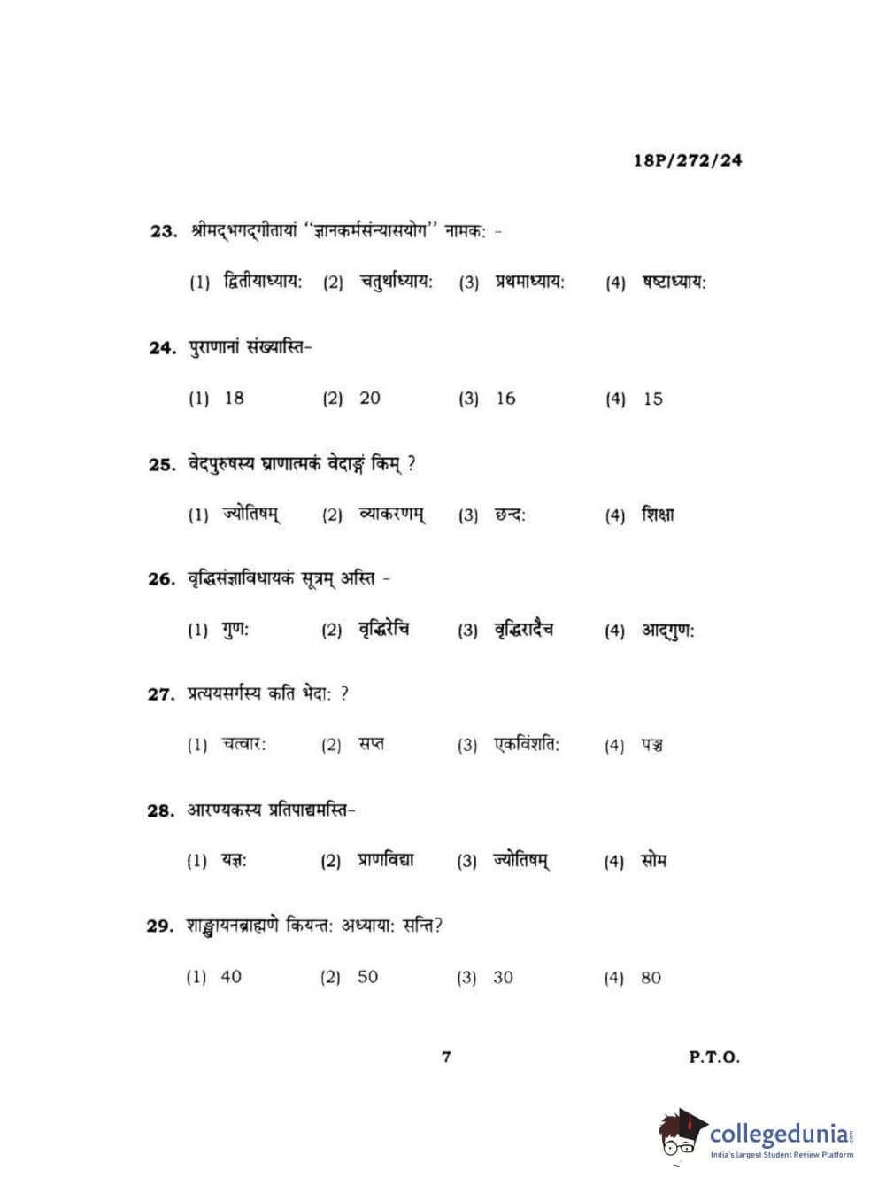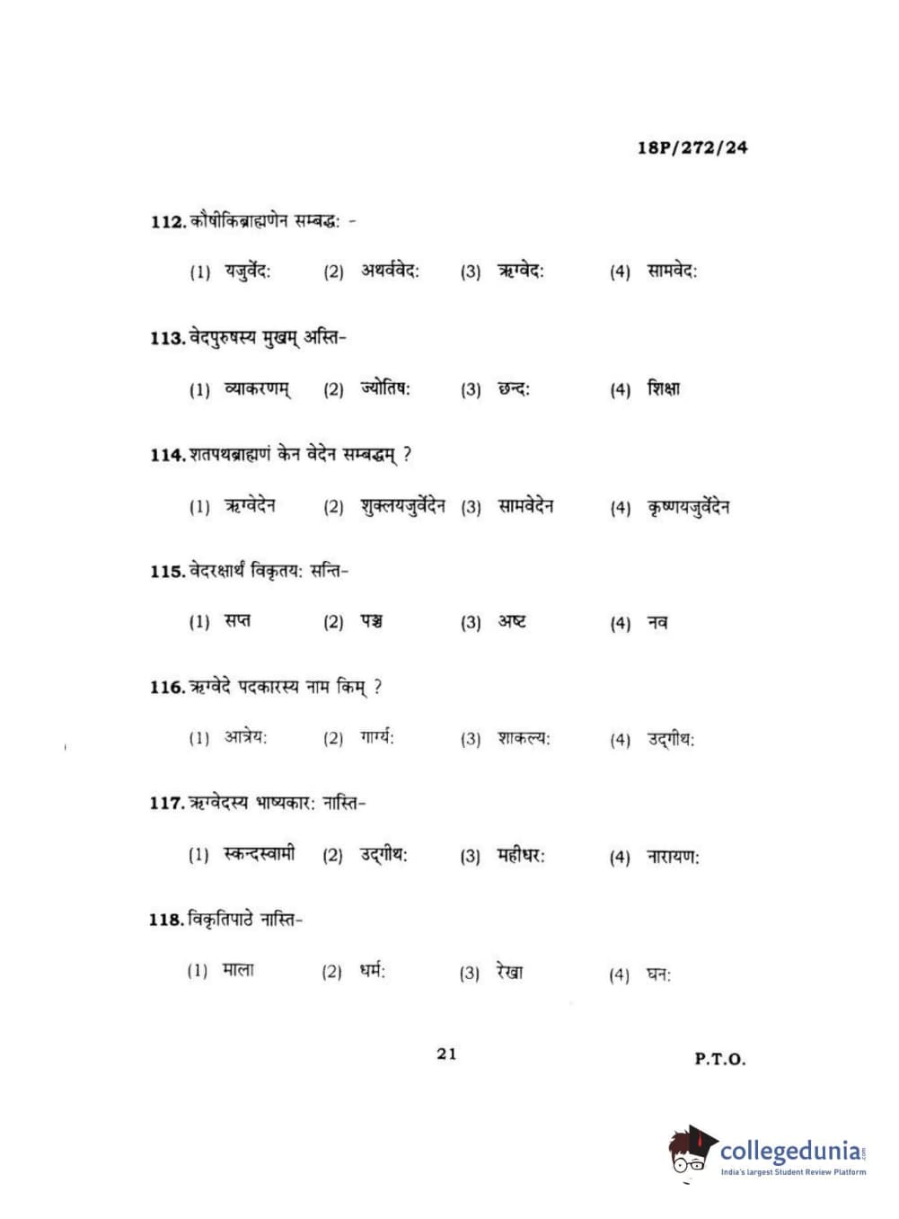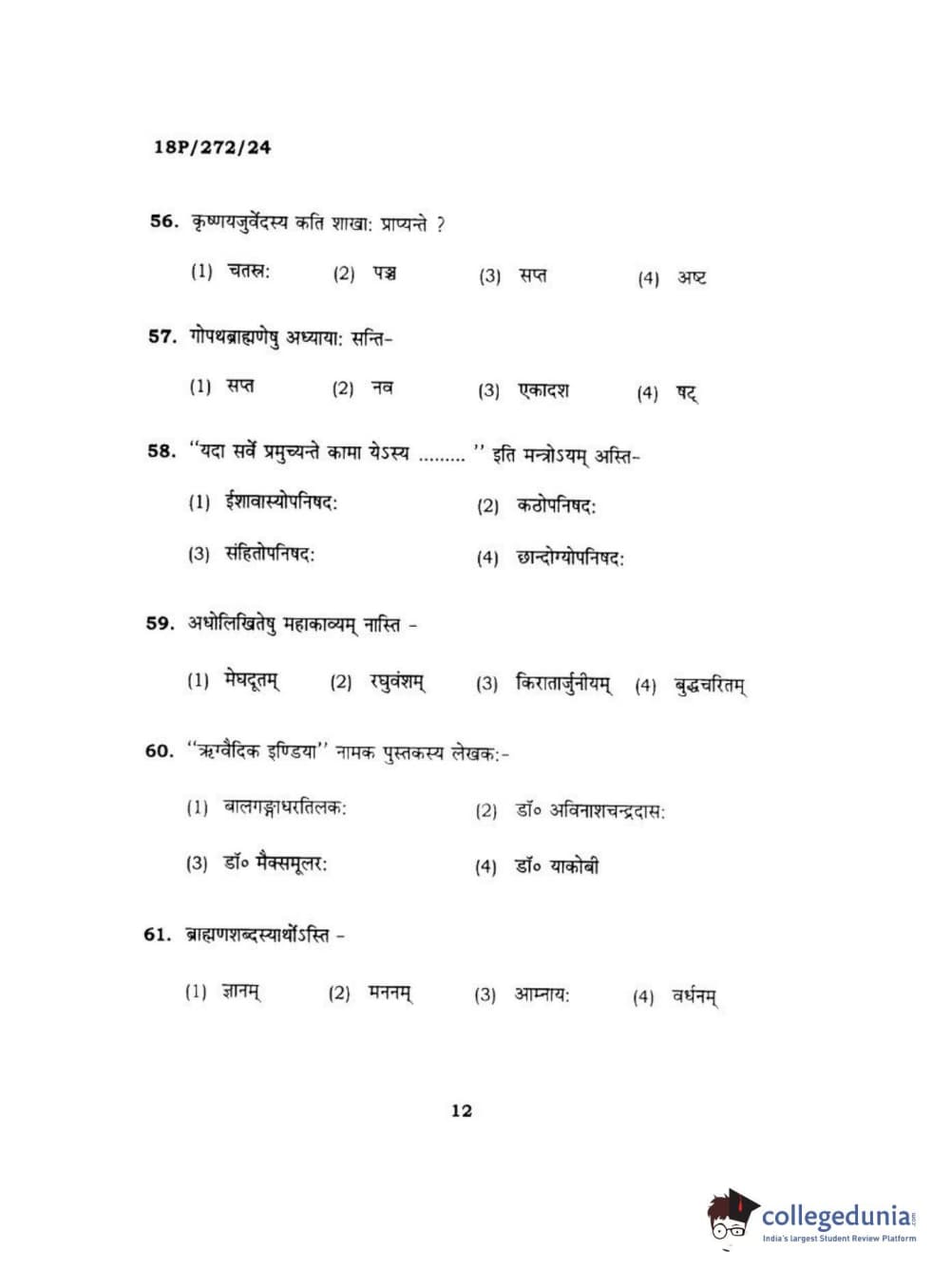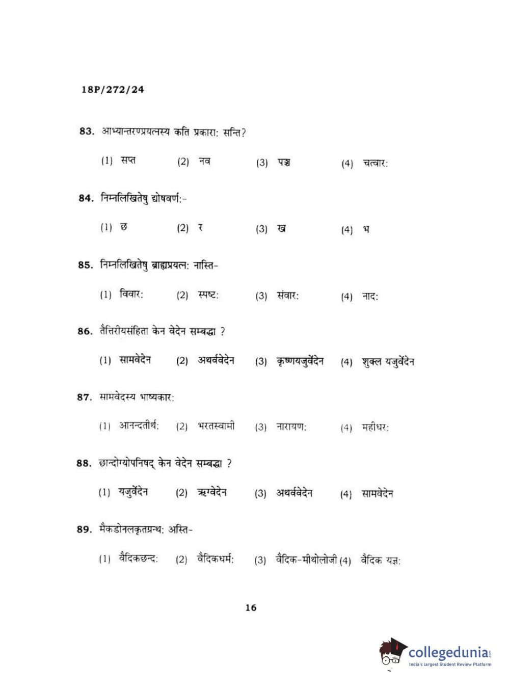 BHU PET 2018 Acharya krishna yajurveda Question Paper with Answer Key PDF in Hindi