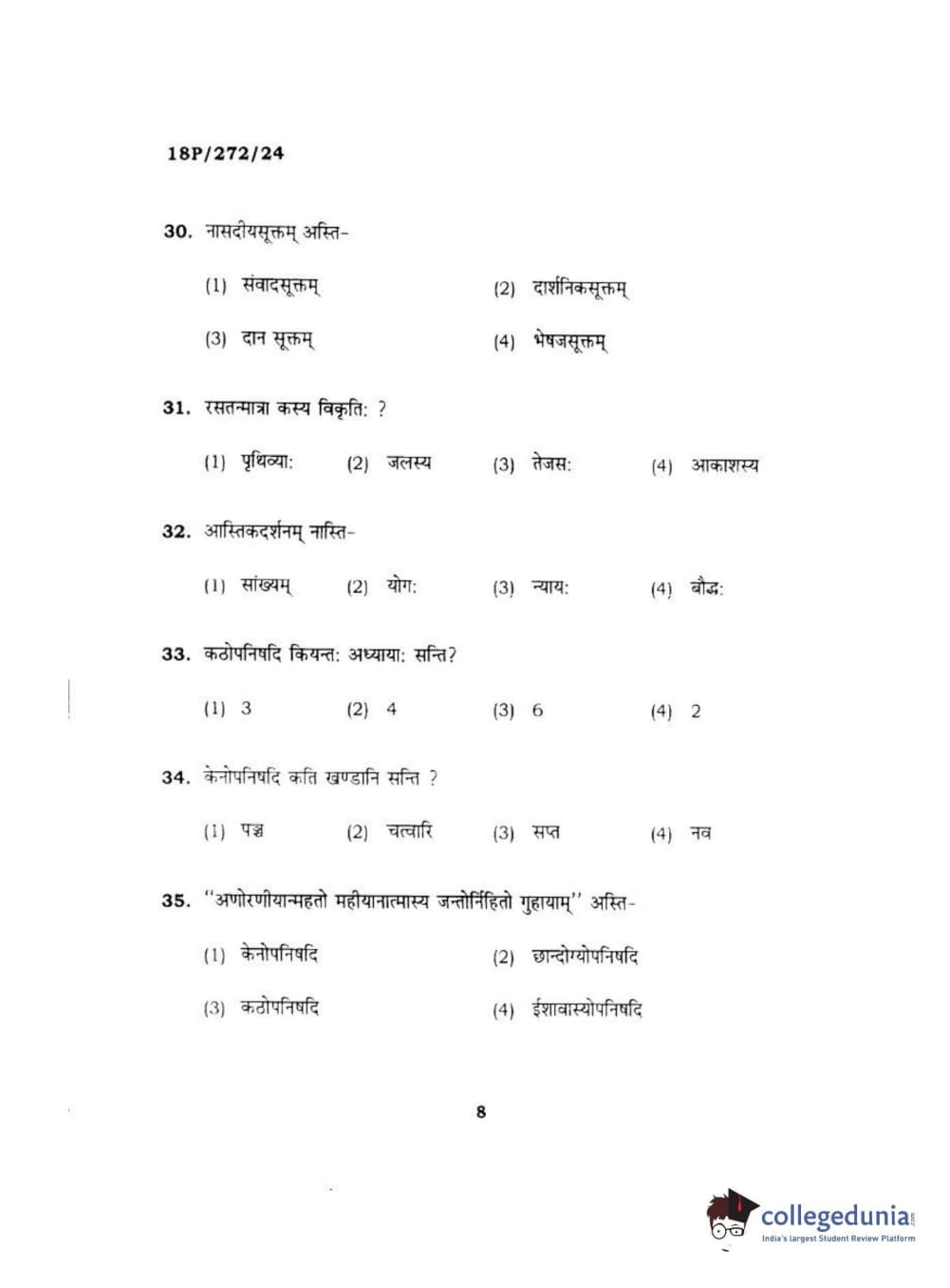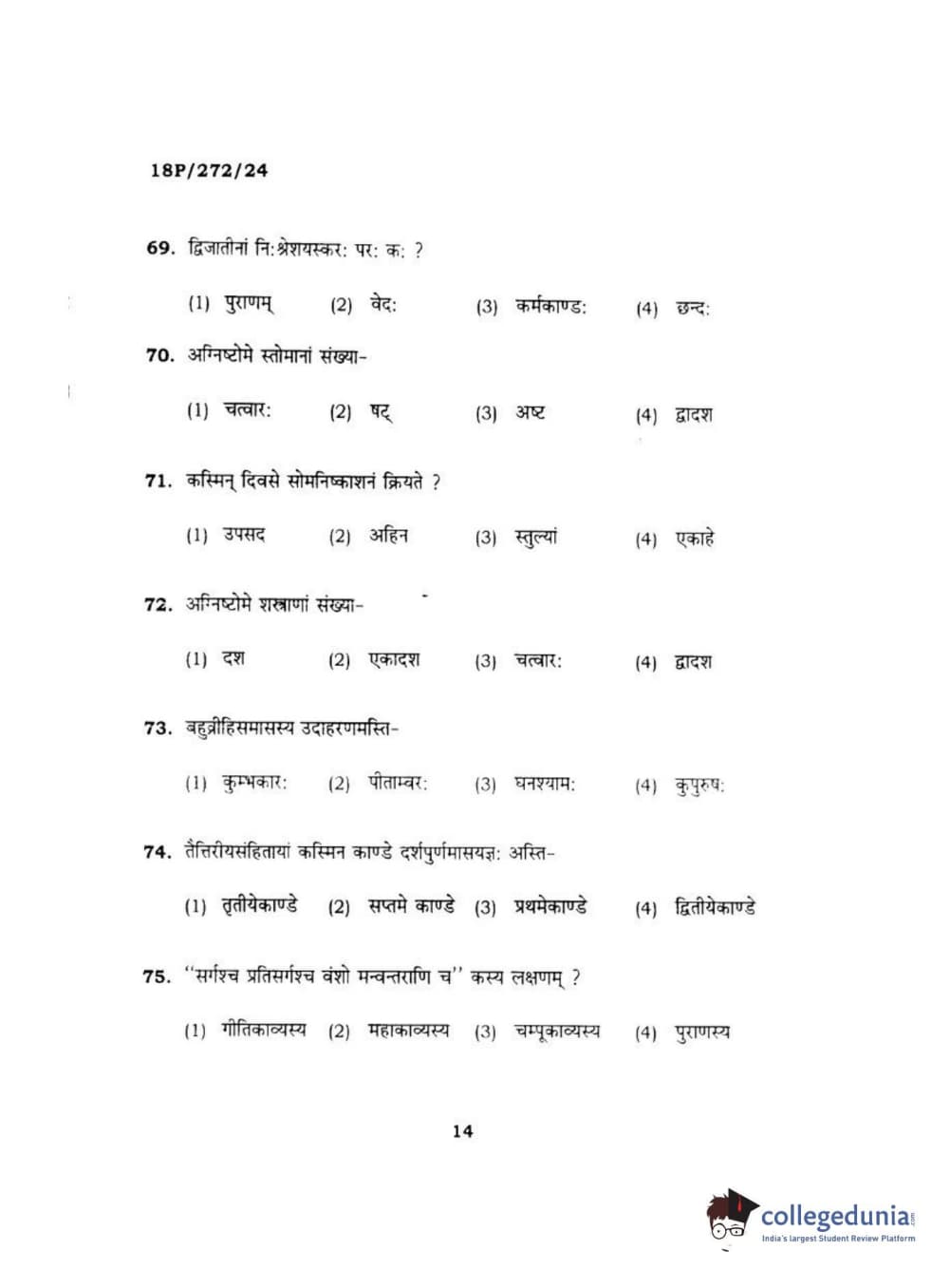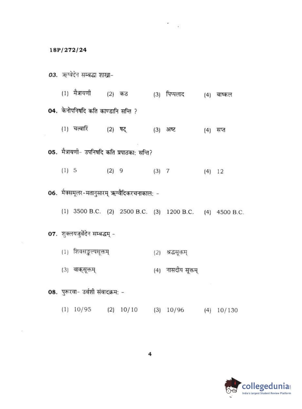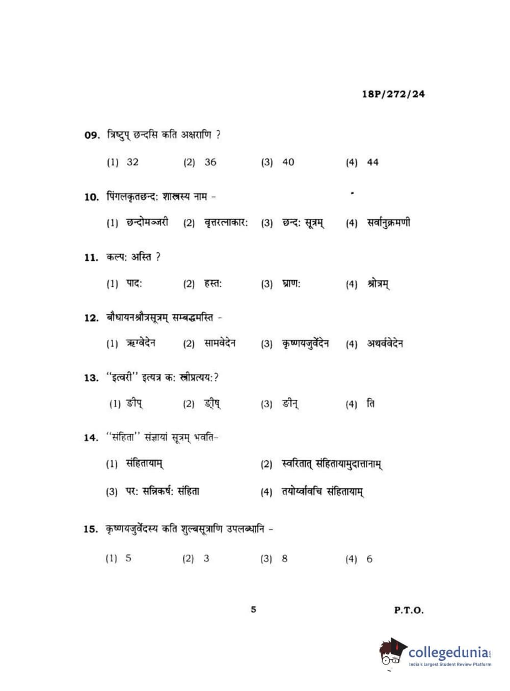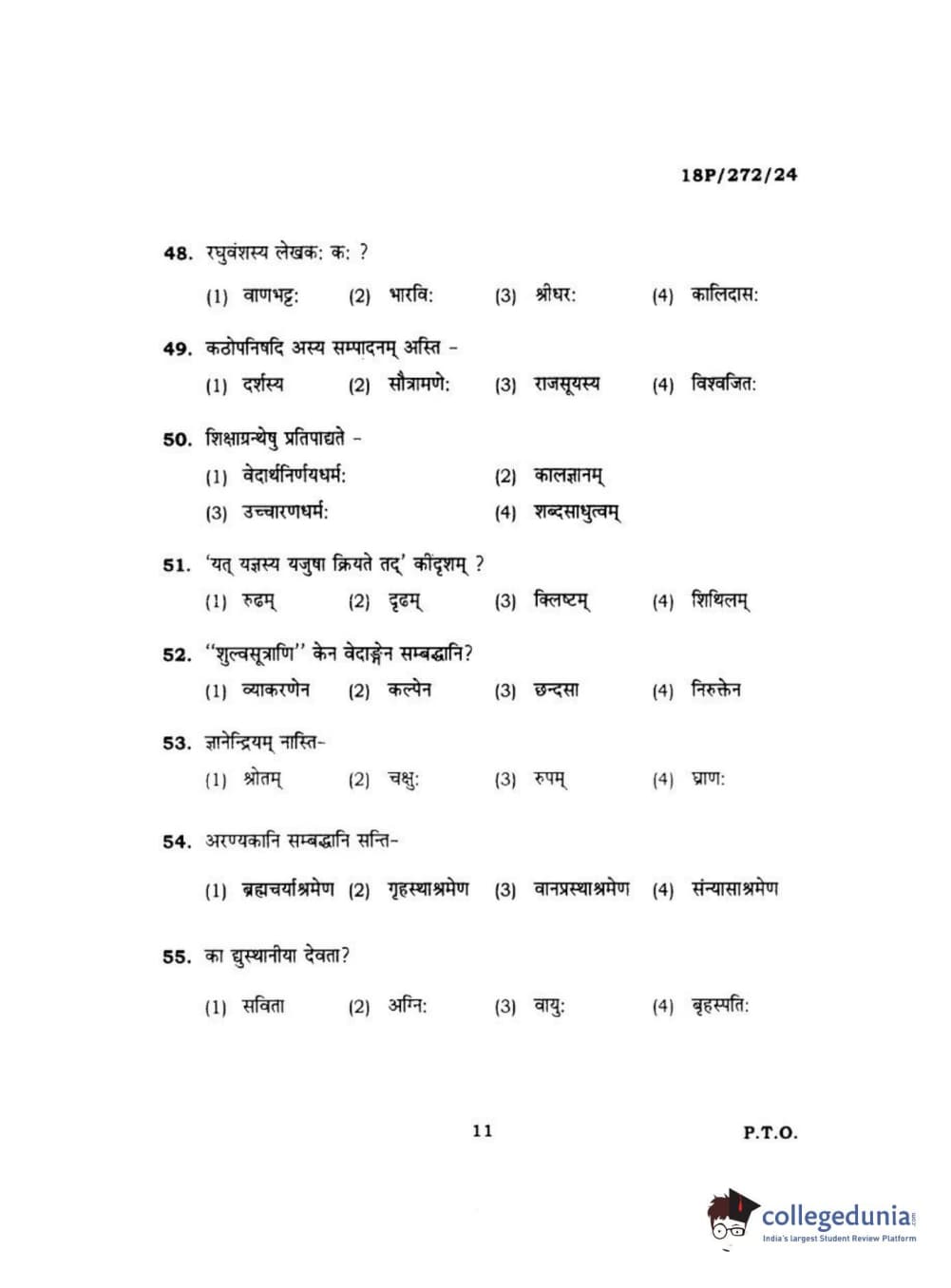 BHU PET 2018 Acharya krishna yajurveda Question Paper with Answer Key PDF in Hindi