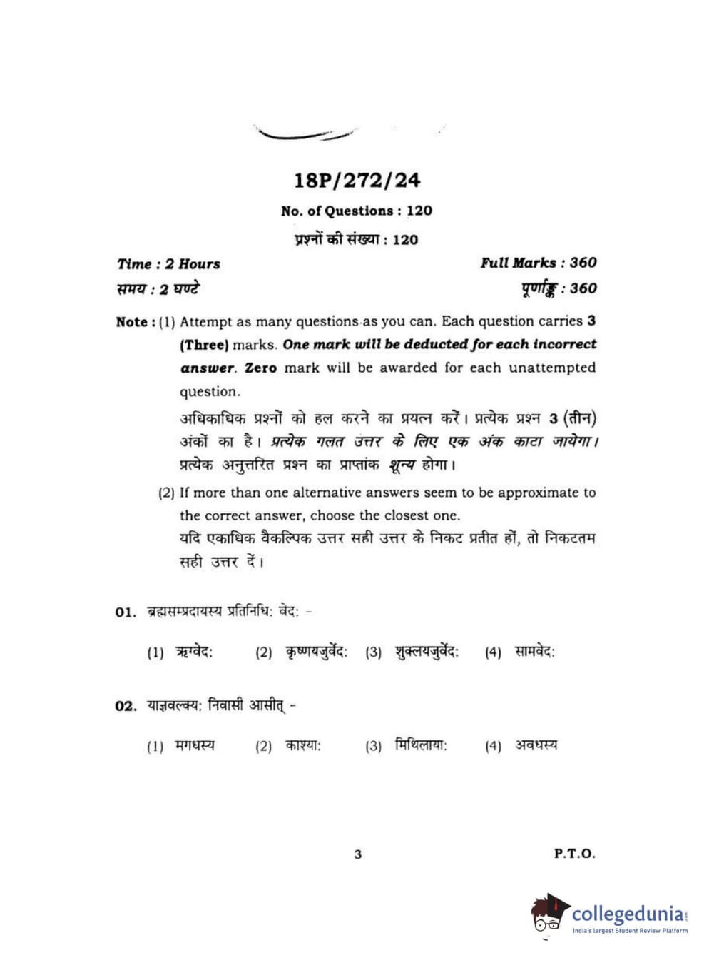 BHU PET 2018 Acharya krishna yajurveda Question paper with answer key pdf is available for download. The exam was successfully organized by Banaras Hindu University (BHU). The question paper comprised a total of 120 questions.
