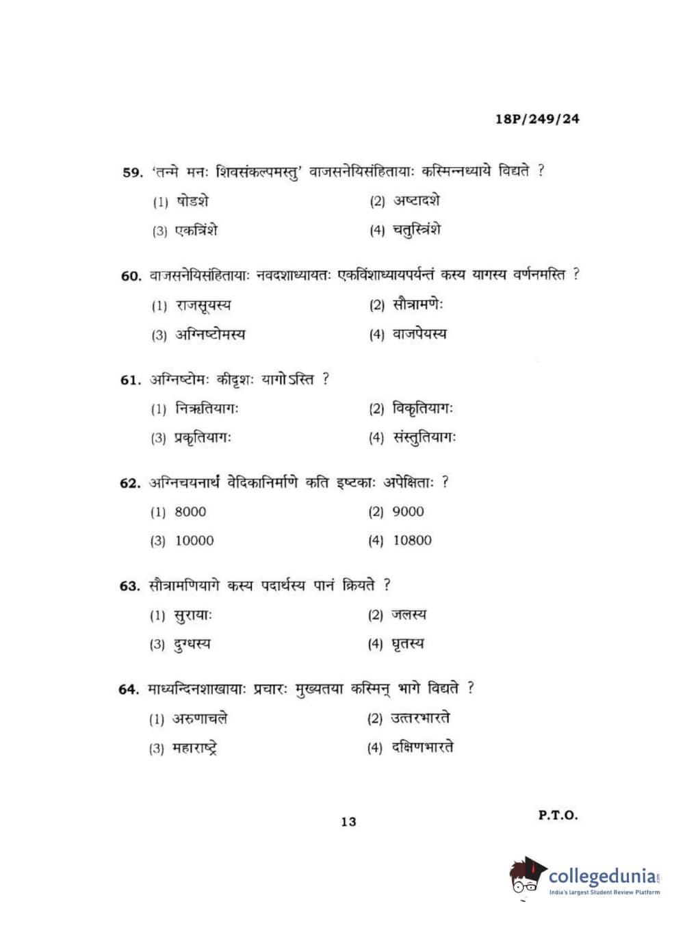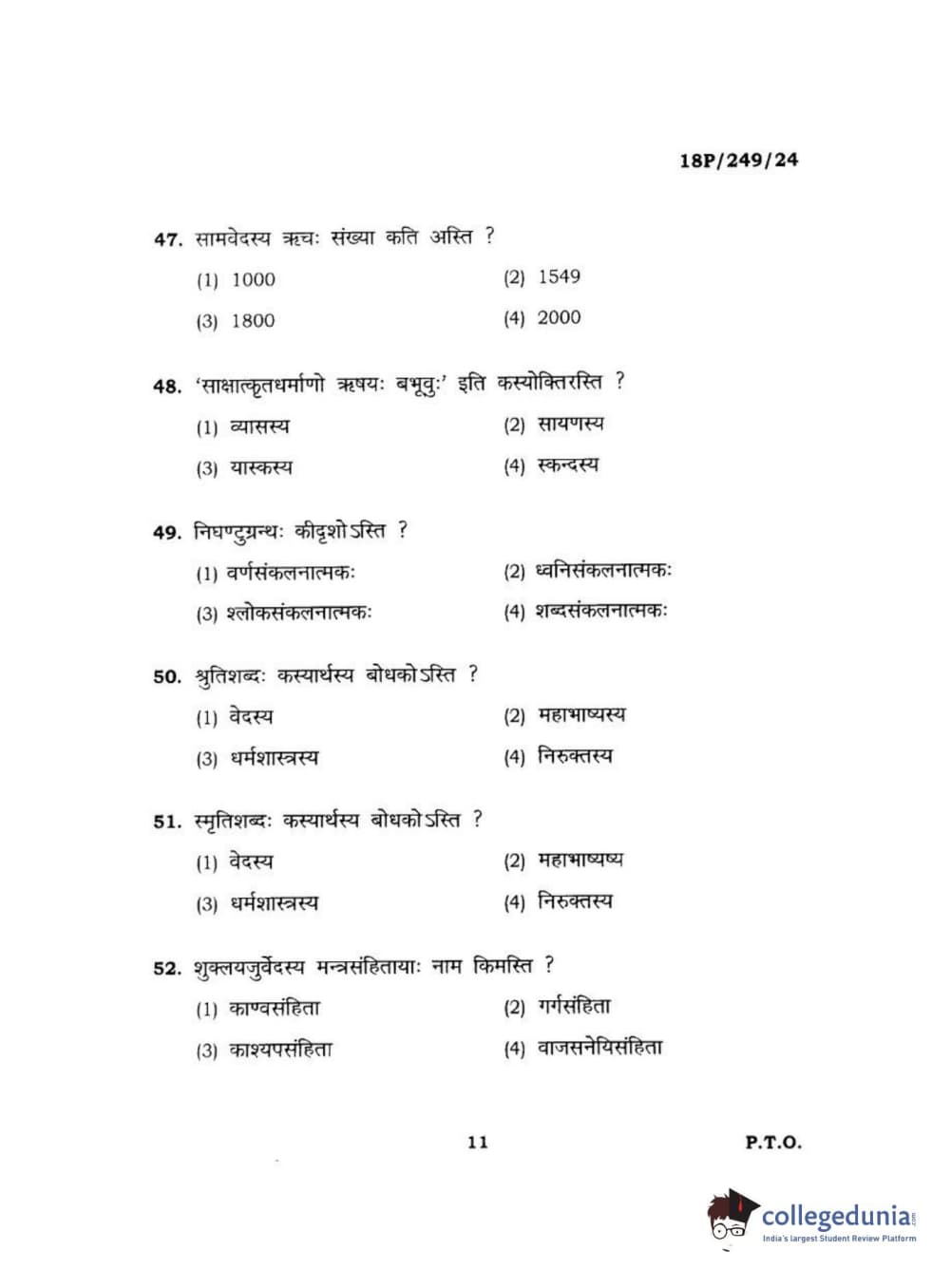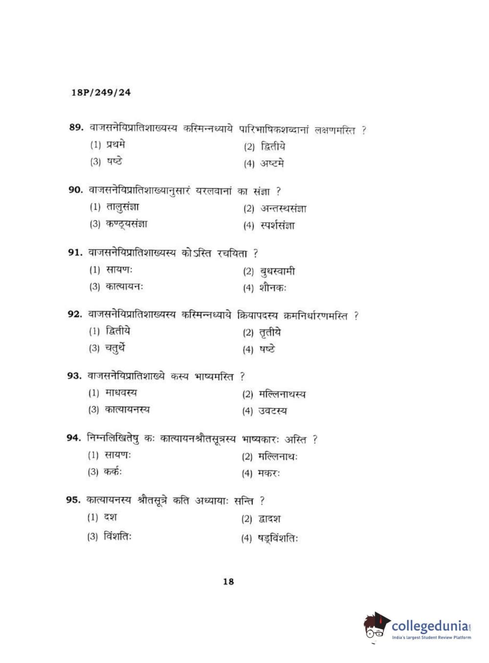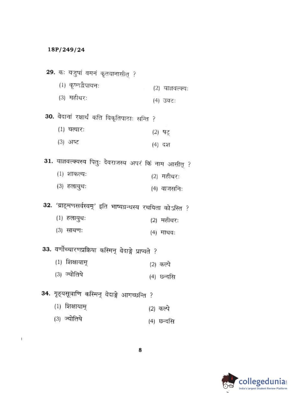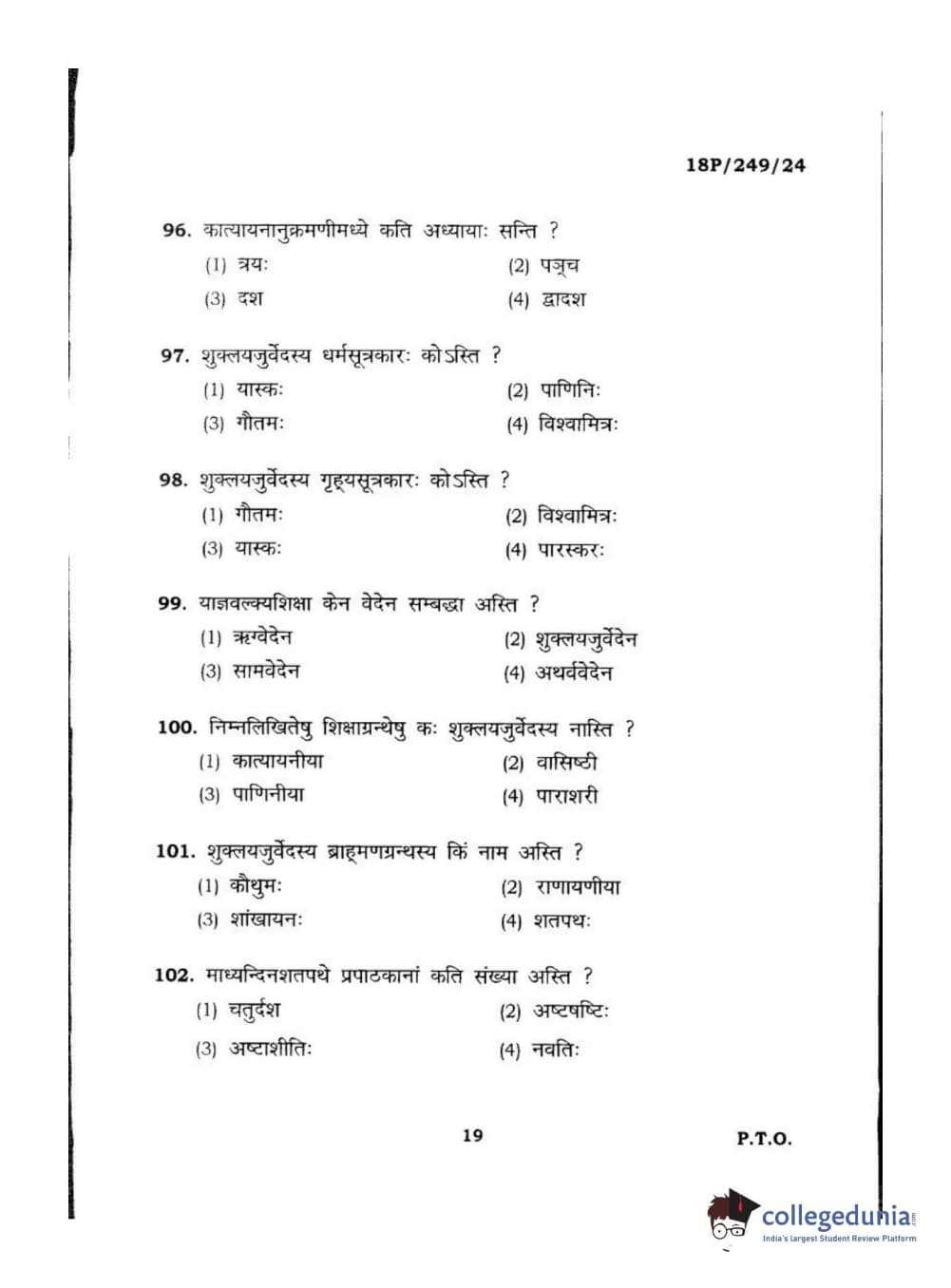 BHU PET 2018 ACHARYA SHUKLAJURVEDA Question Paper with Answer Key PDF in Hindi