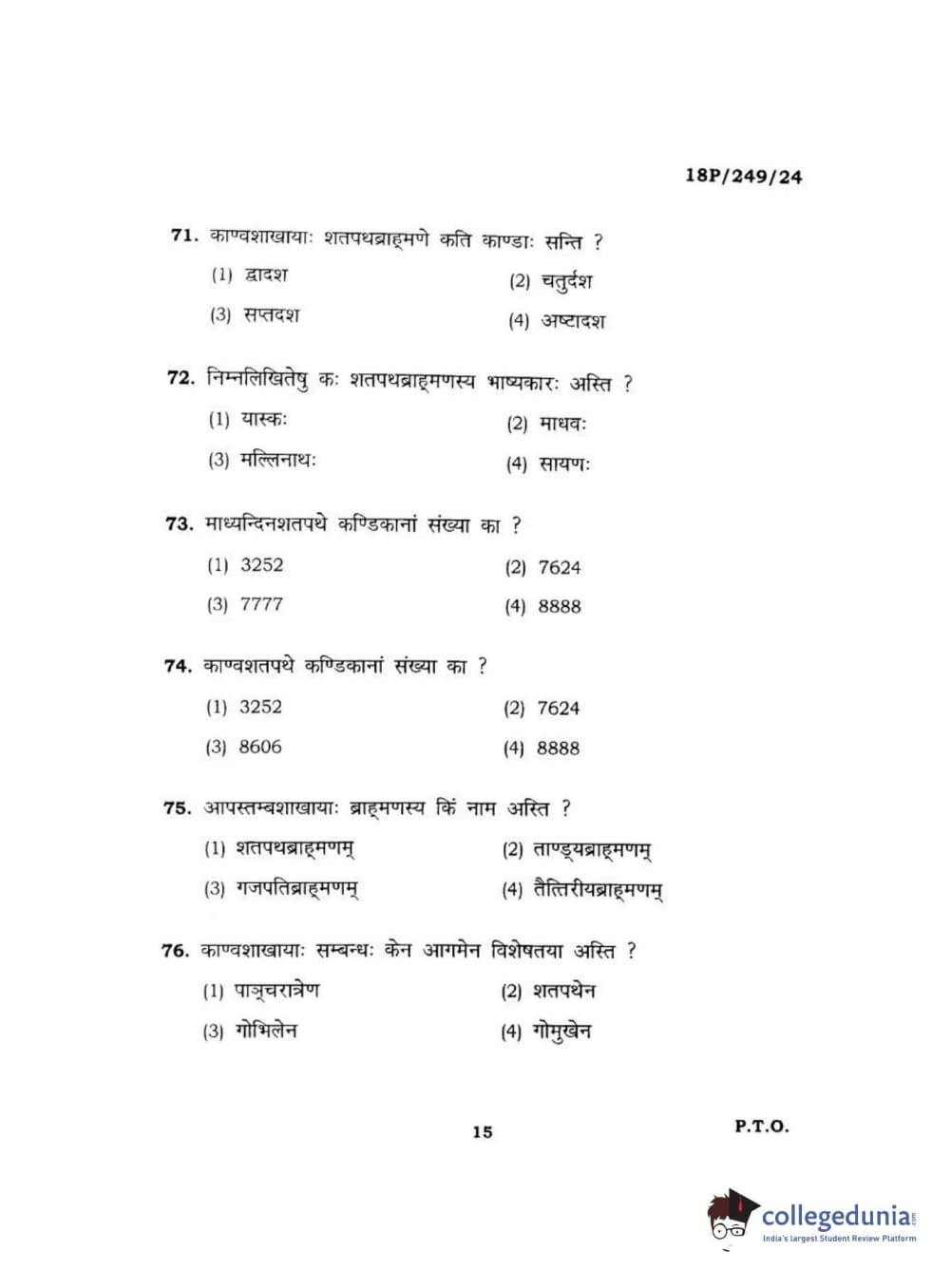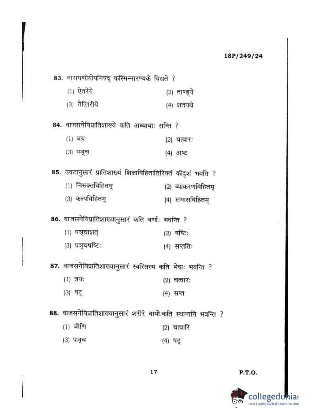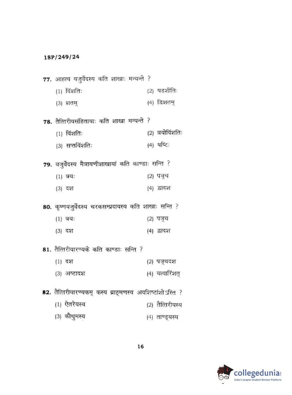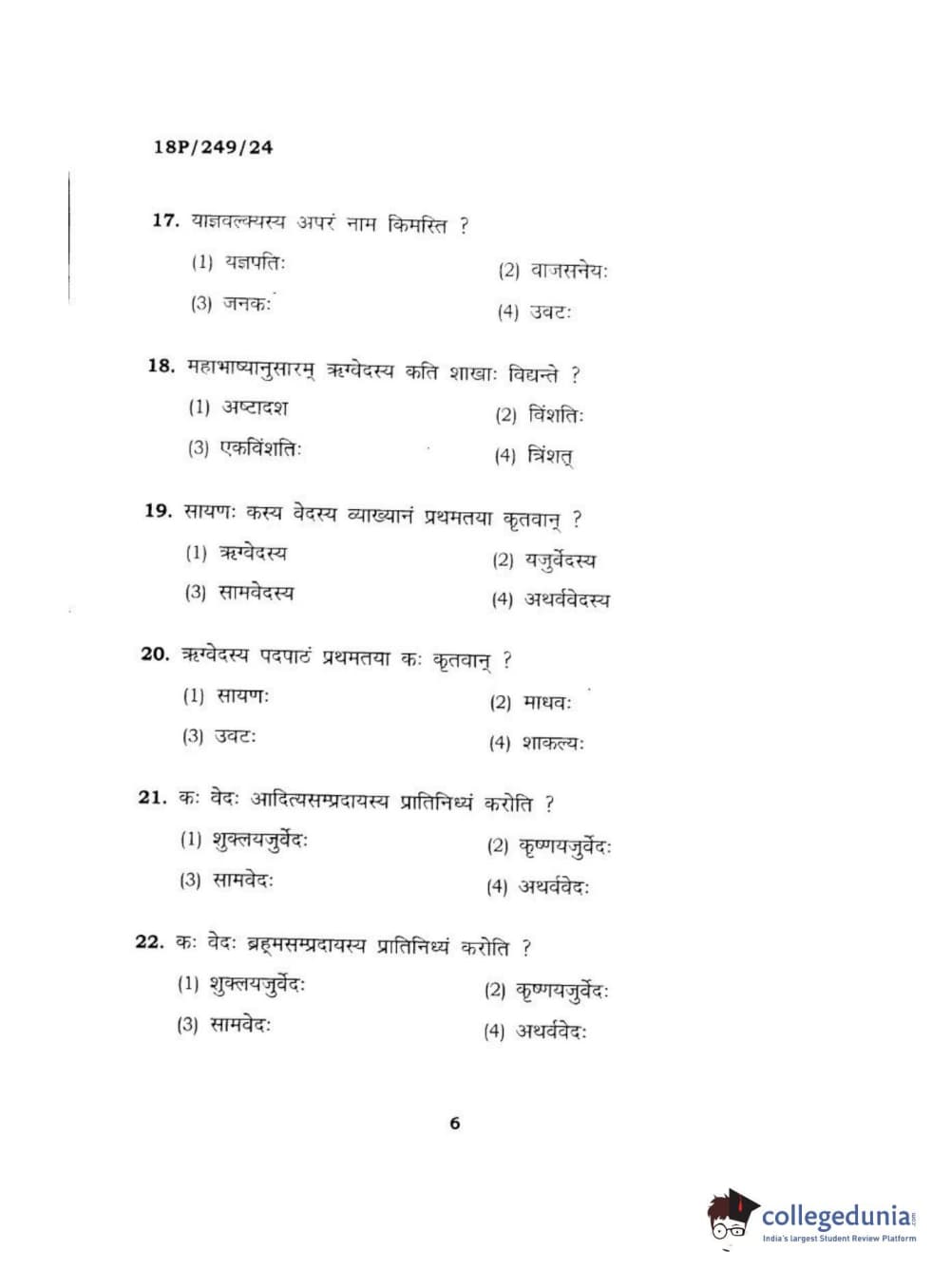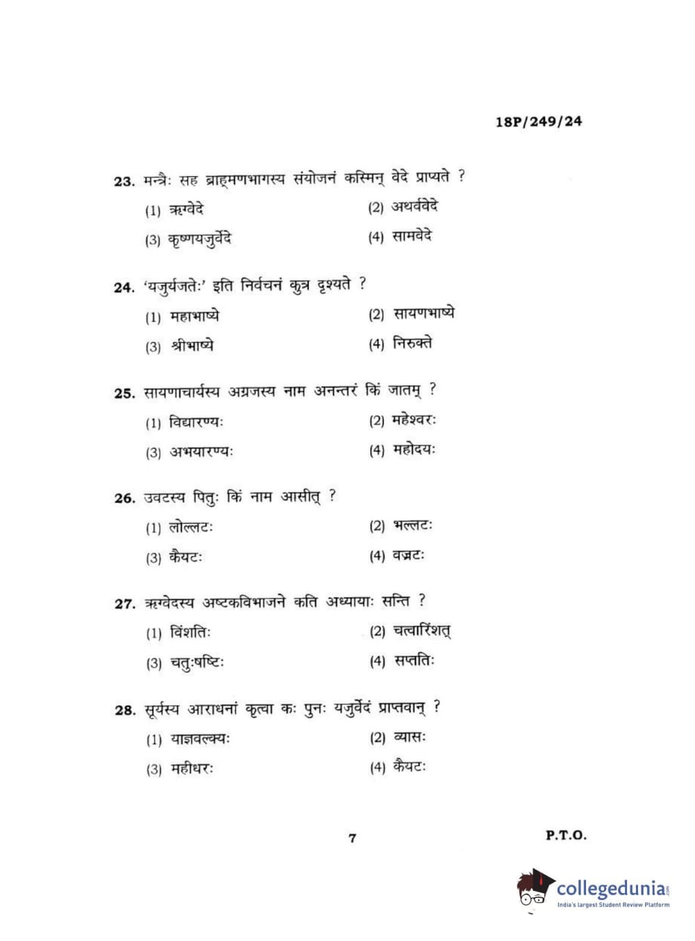 BHU PET 2018 ACHARYA SHUKLAJURVEDA Question Paper with Answer Key PDF in Hindi