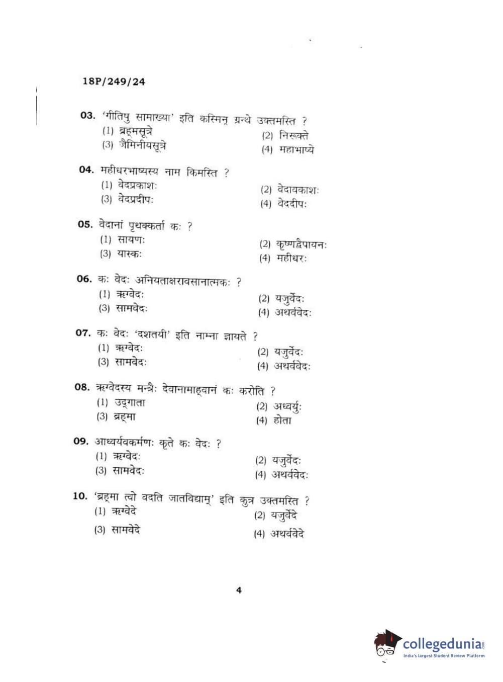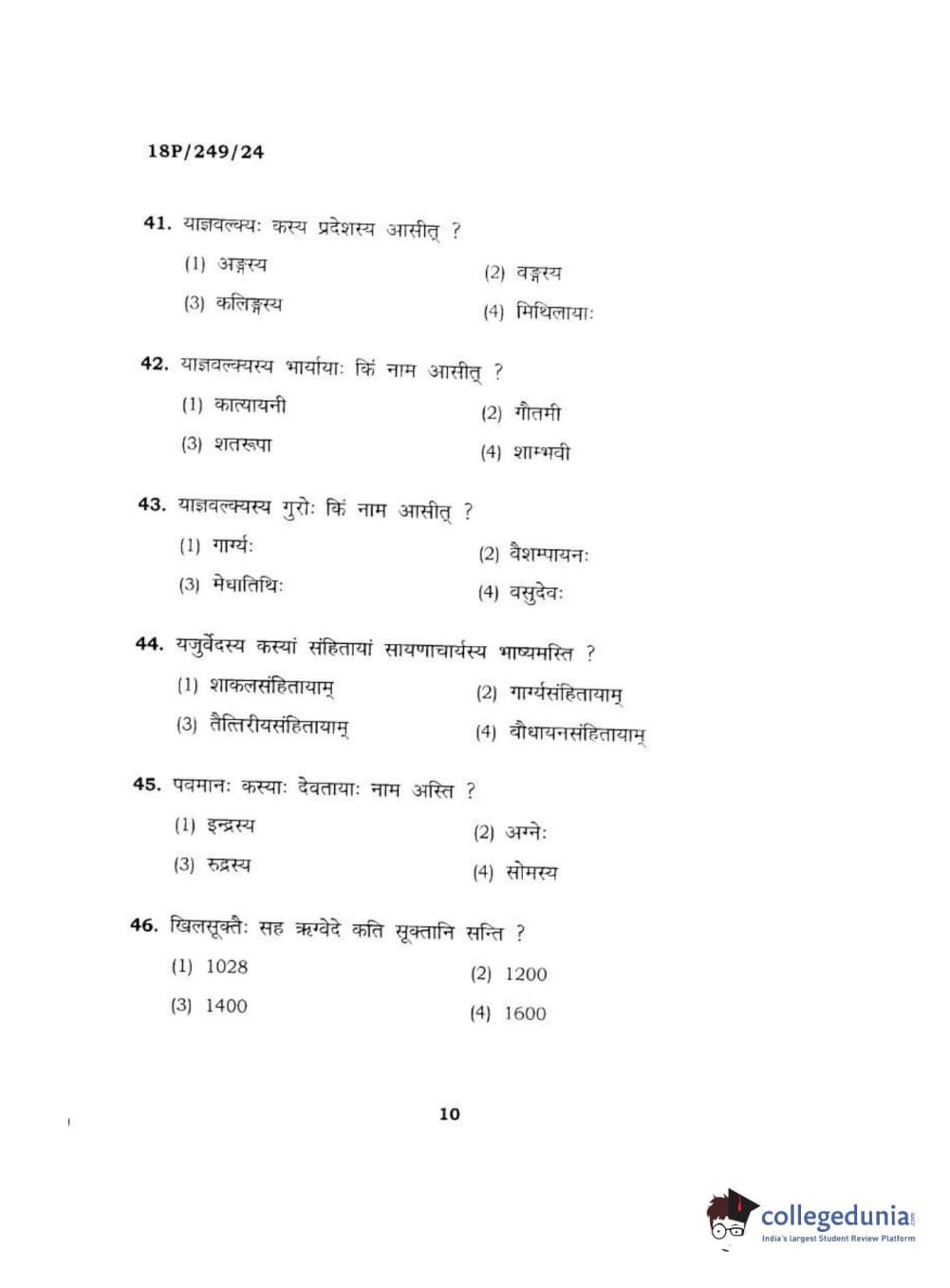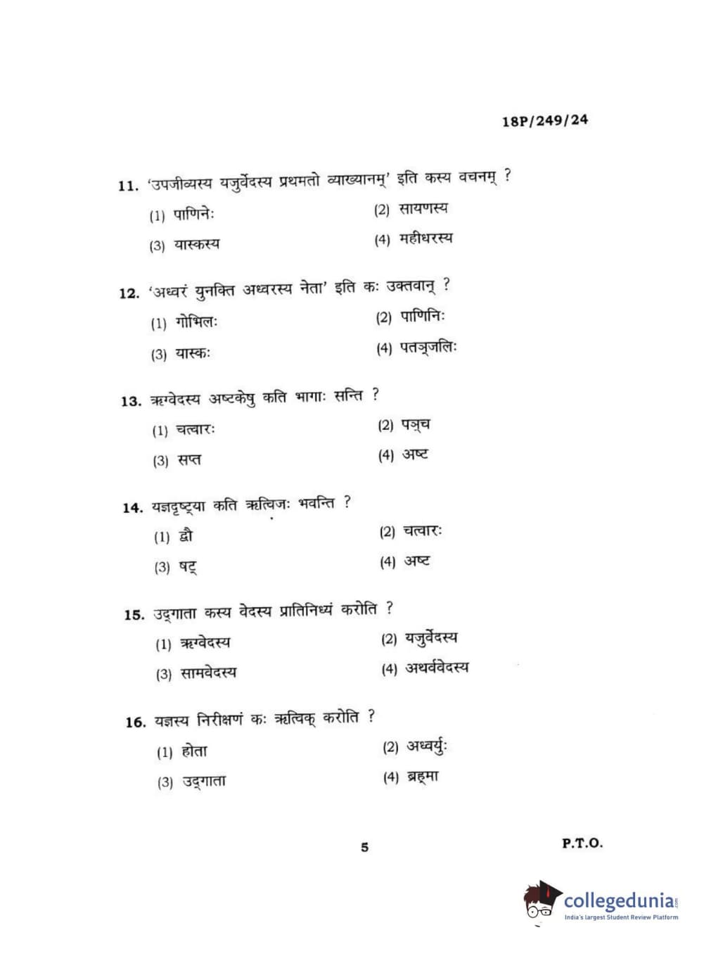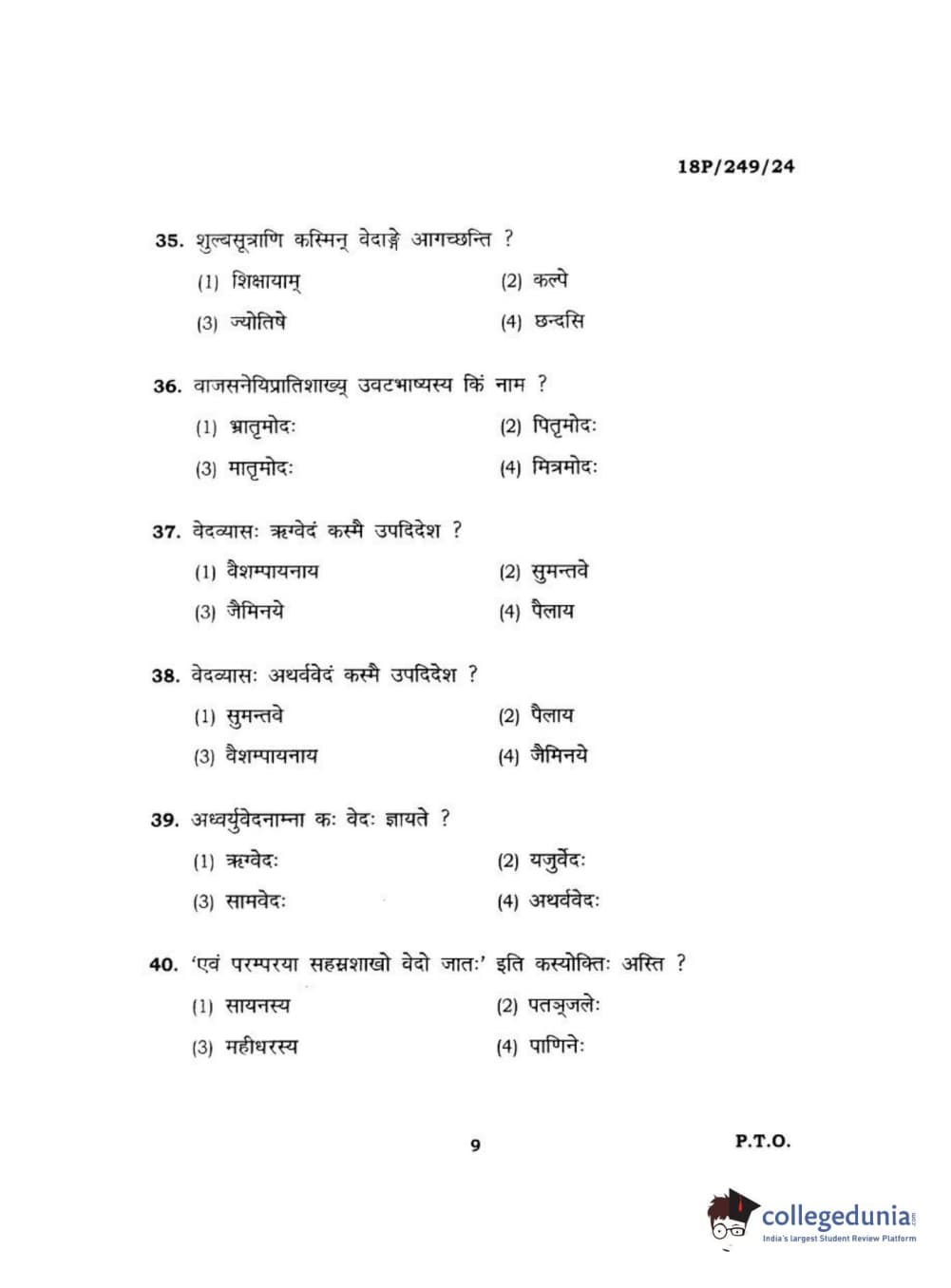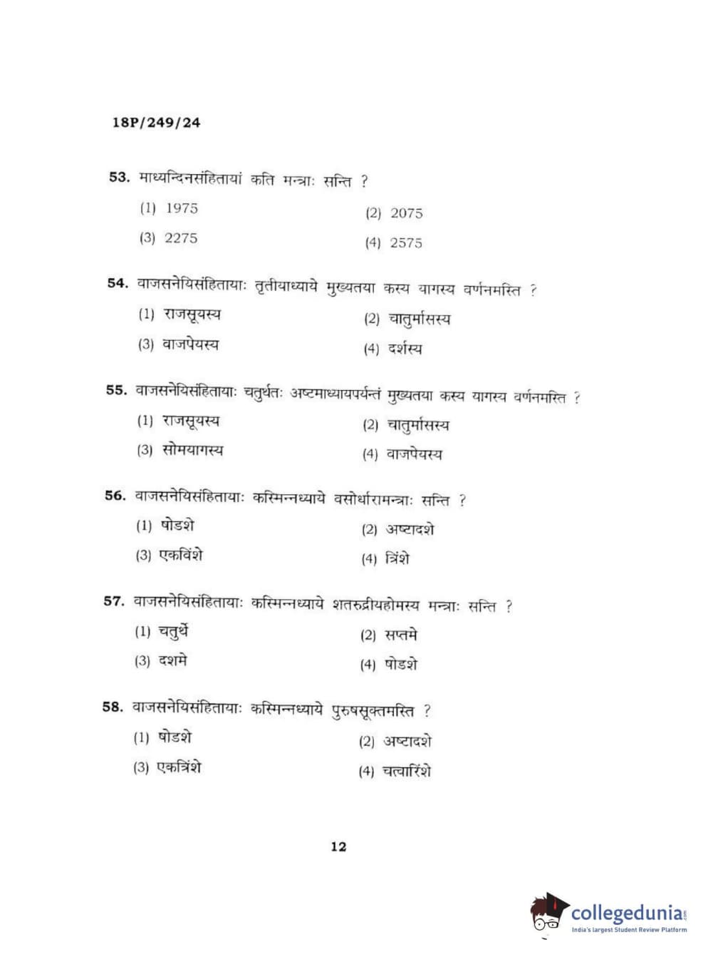 BHU PET 2018 ACHARYA SHUKLAJURVEDA Question Paper with Answer Key PDF in Hindi