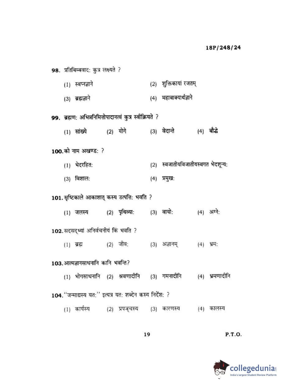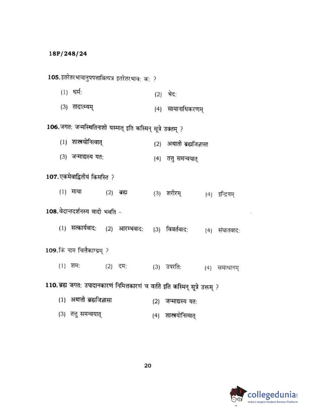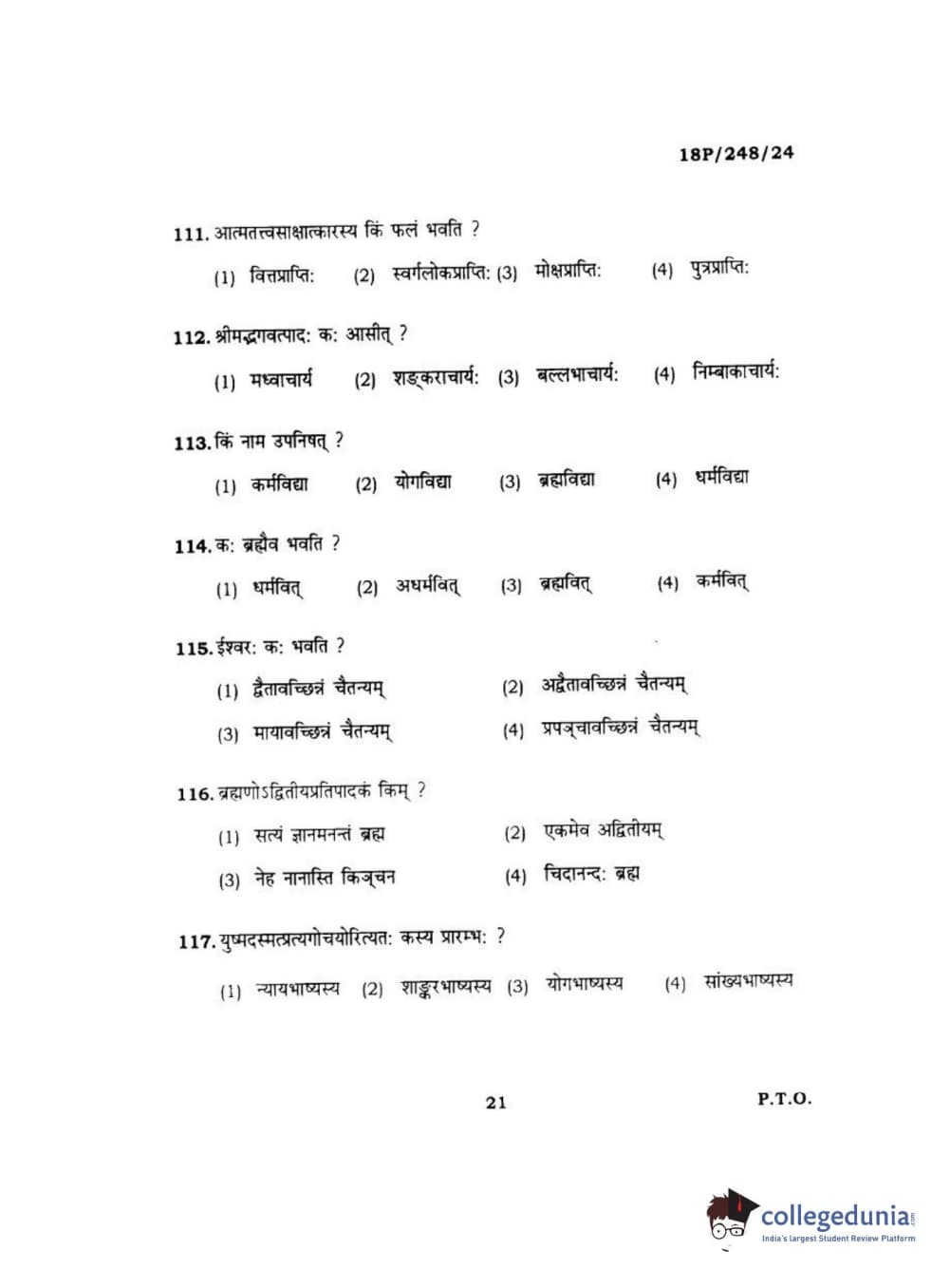 BHU PET 2018 ACHARYA VEDANTA Question paper with answer key pdf is available for download. The exam was successfully organized by Banaras Hindu University (BHU). The question paper comprised a total of 120 questions.