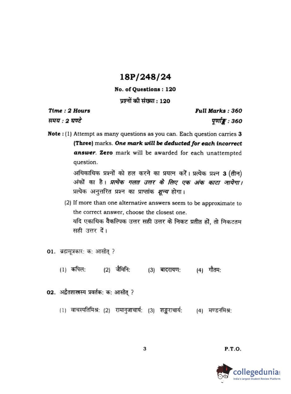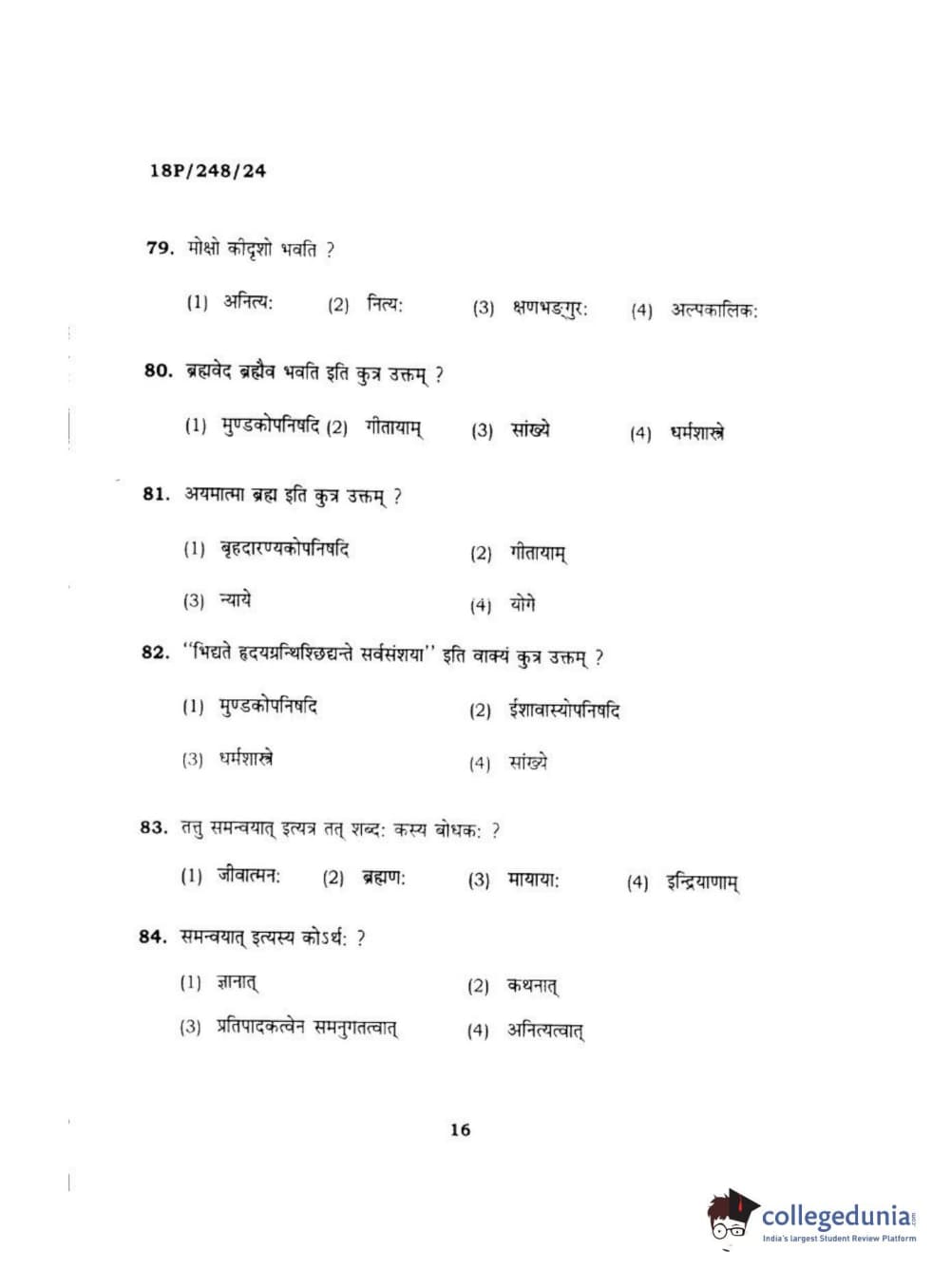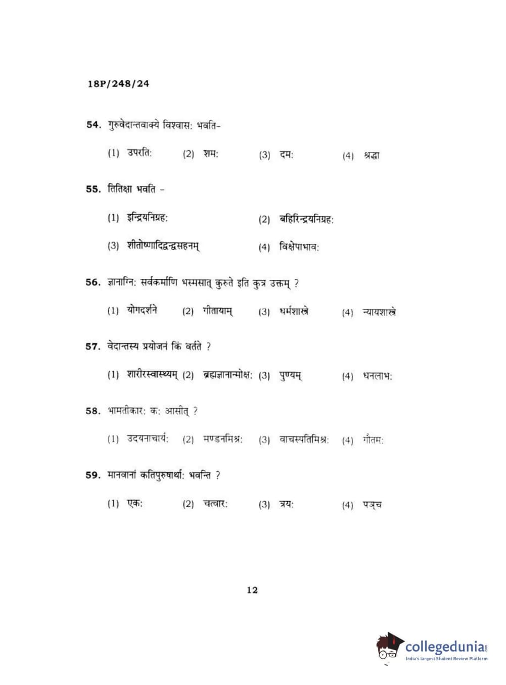 BHU PET 2018 ACHARYA VEDANTA Question paper with answer key pdf is available for download. The exam was successfully organized by Banaras Hindu University (BHU). The question paper comprised a total of 120 questions.