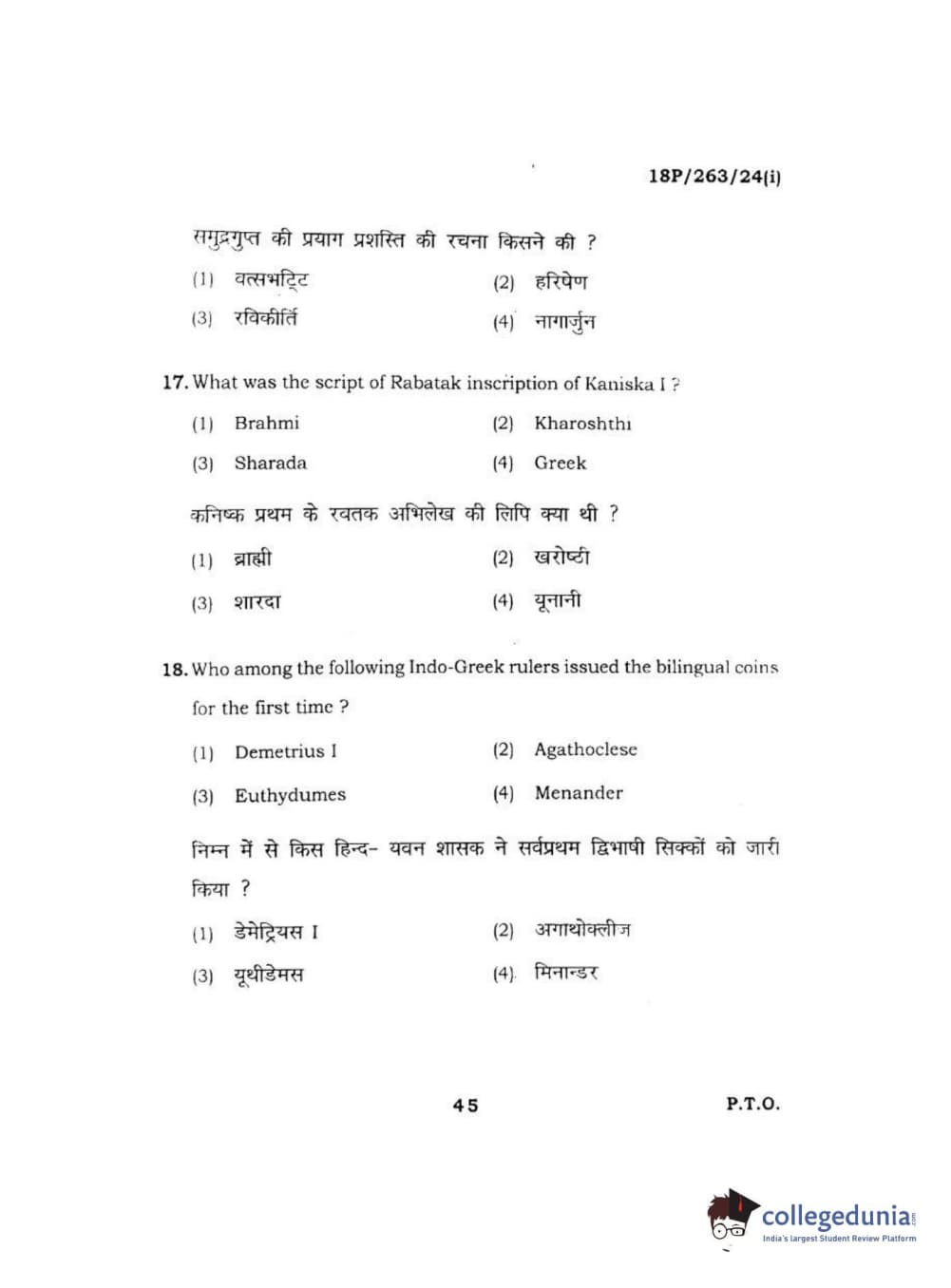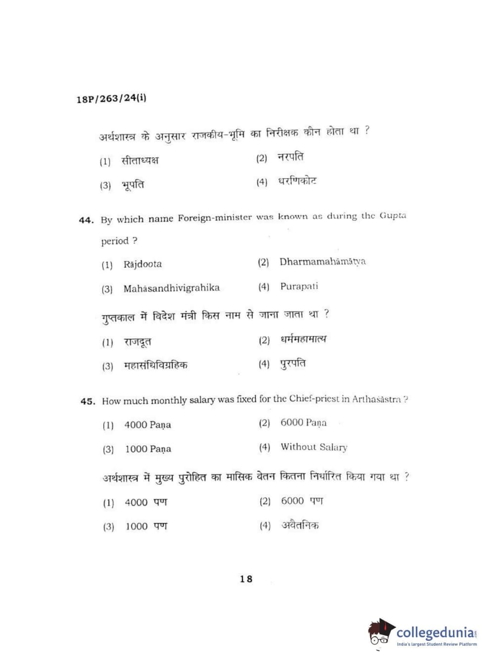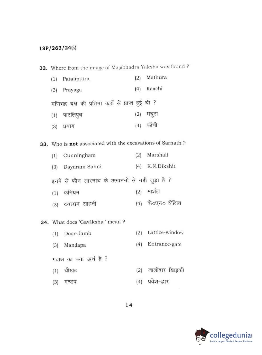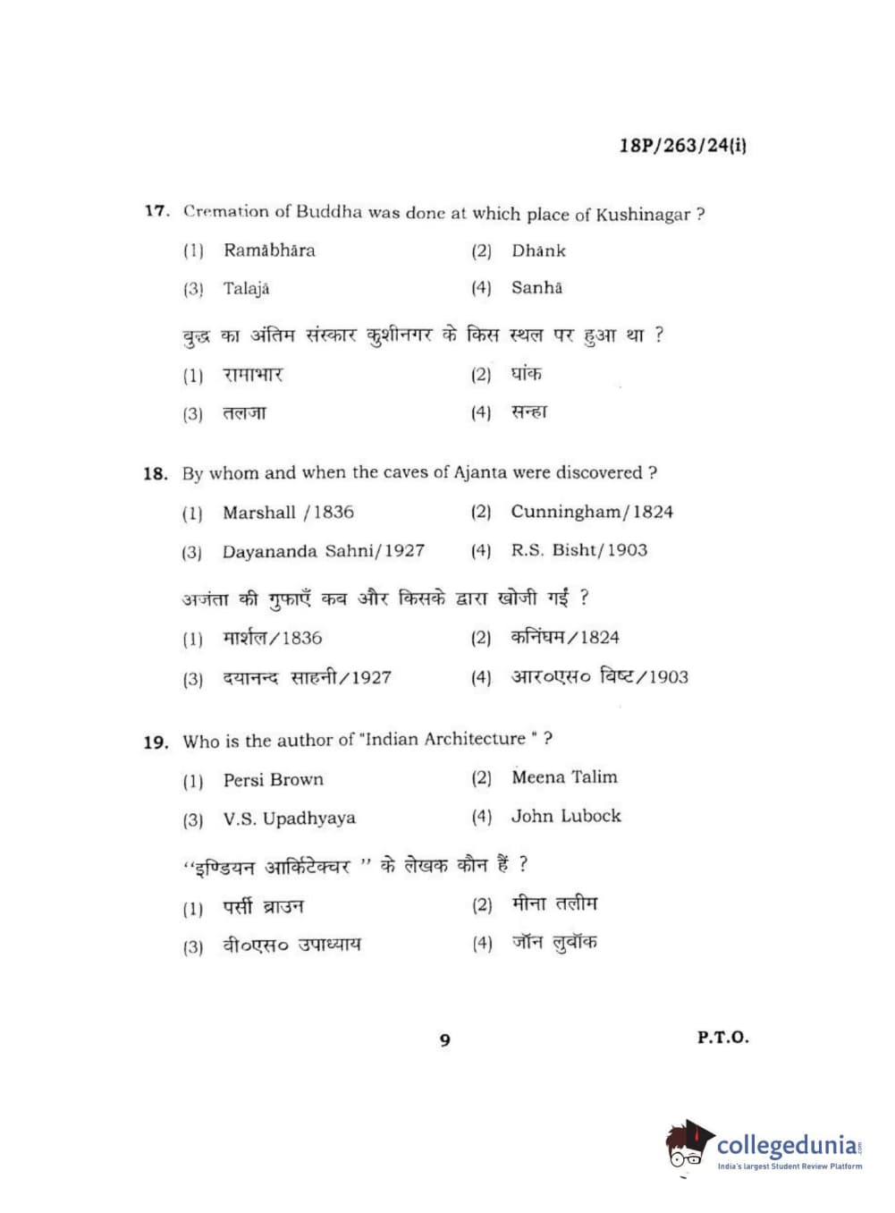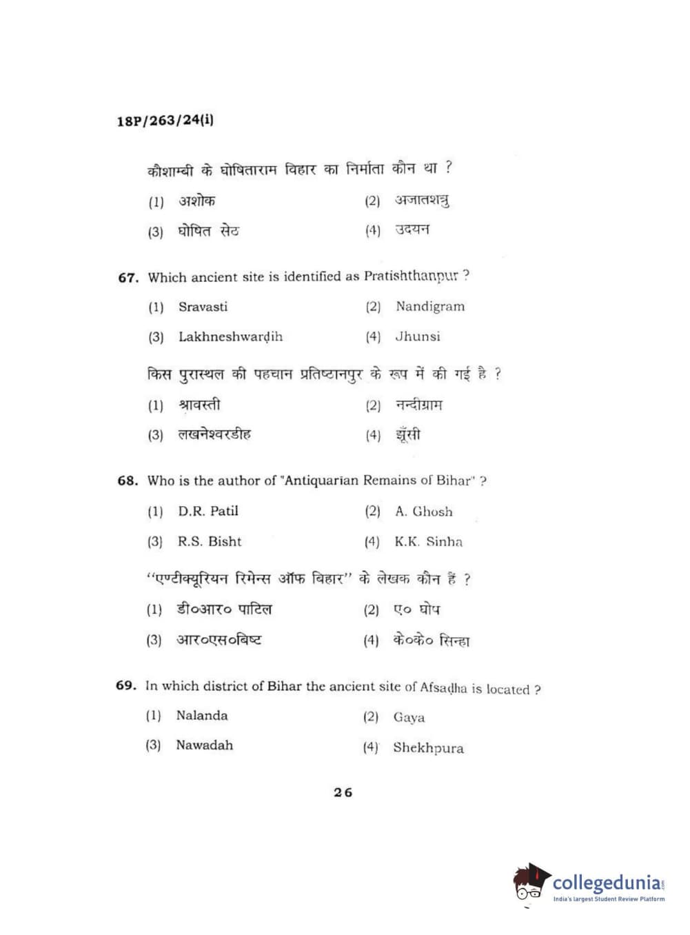BHU PET 2018 M.A AIHC Question Paper with Answer Key PDF in Hindi