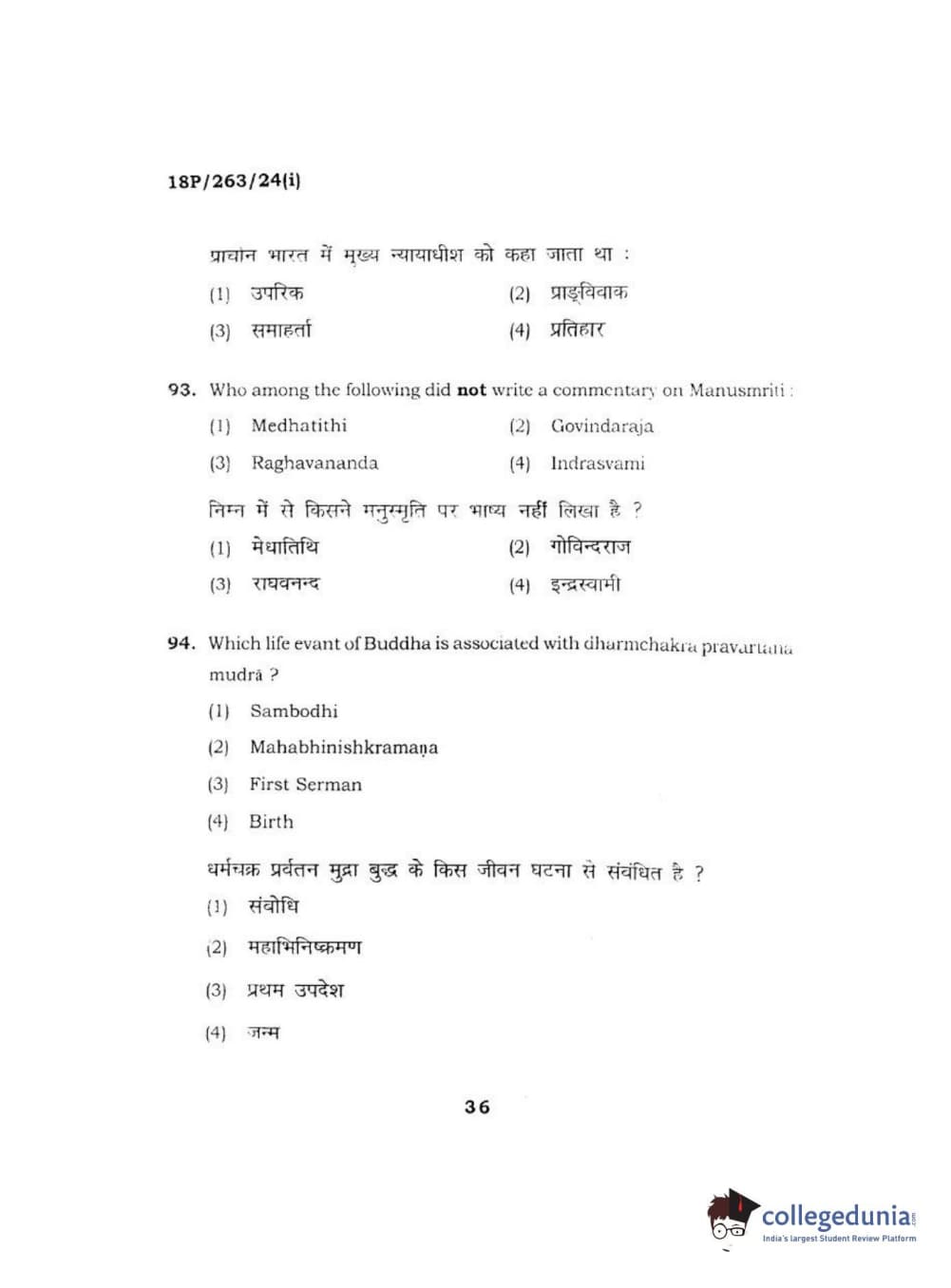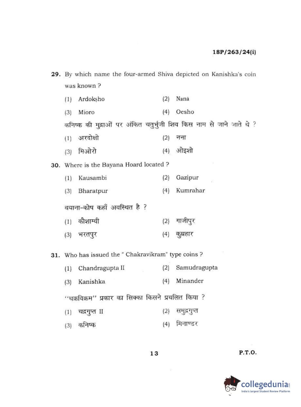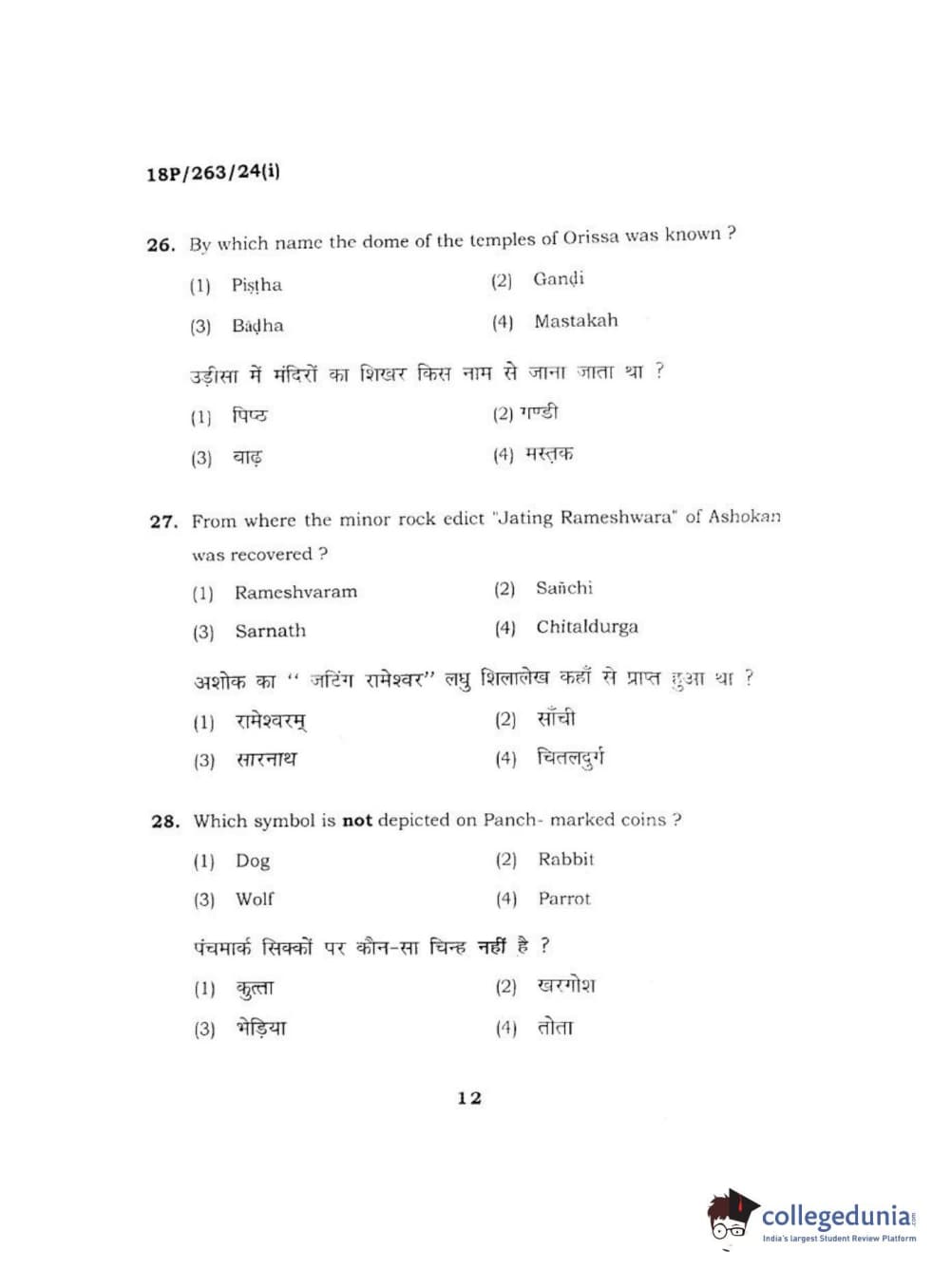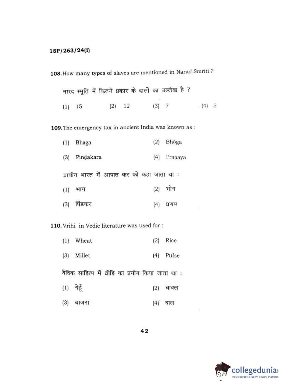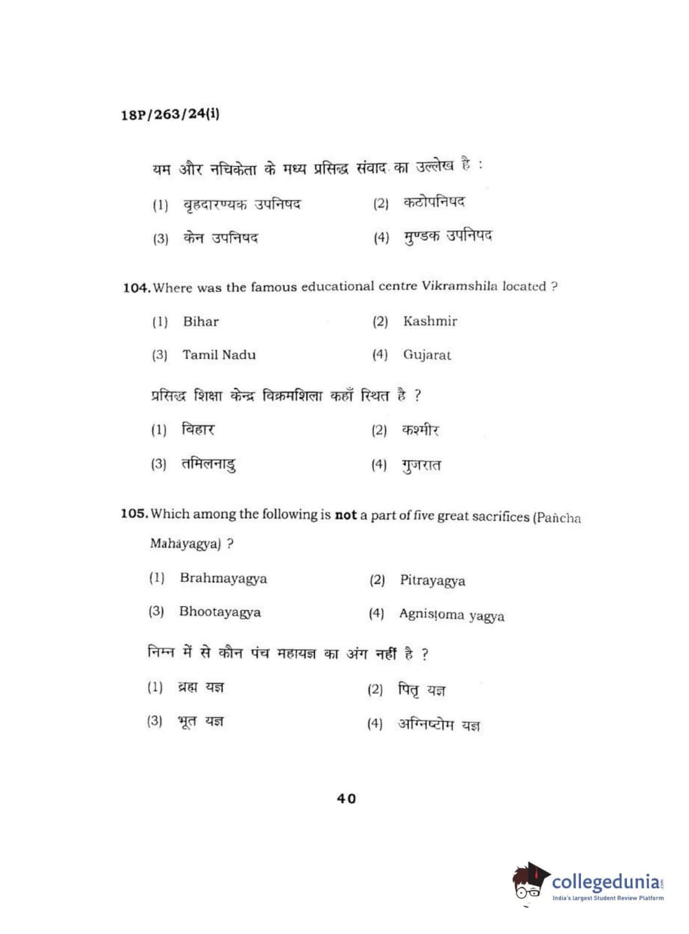 BHU PET 2018 M.A AIHC Question Paper with Answer Key PDF in Hindi