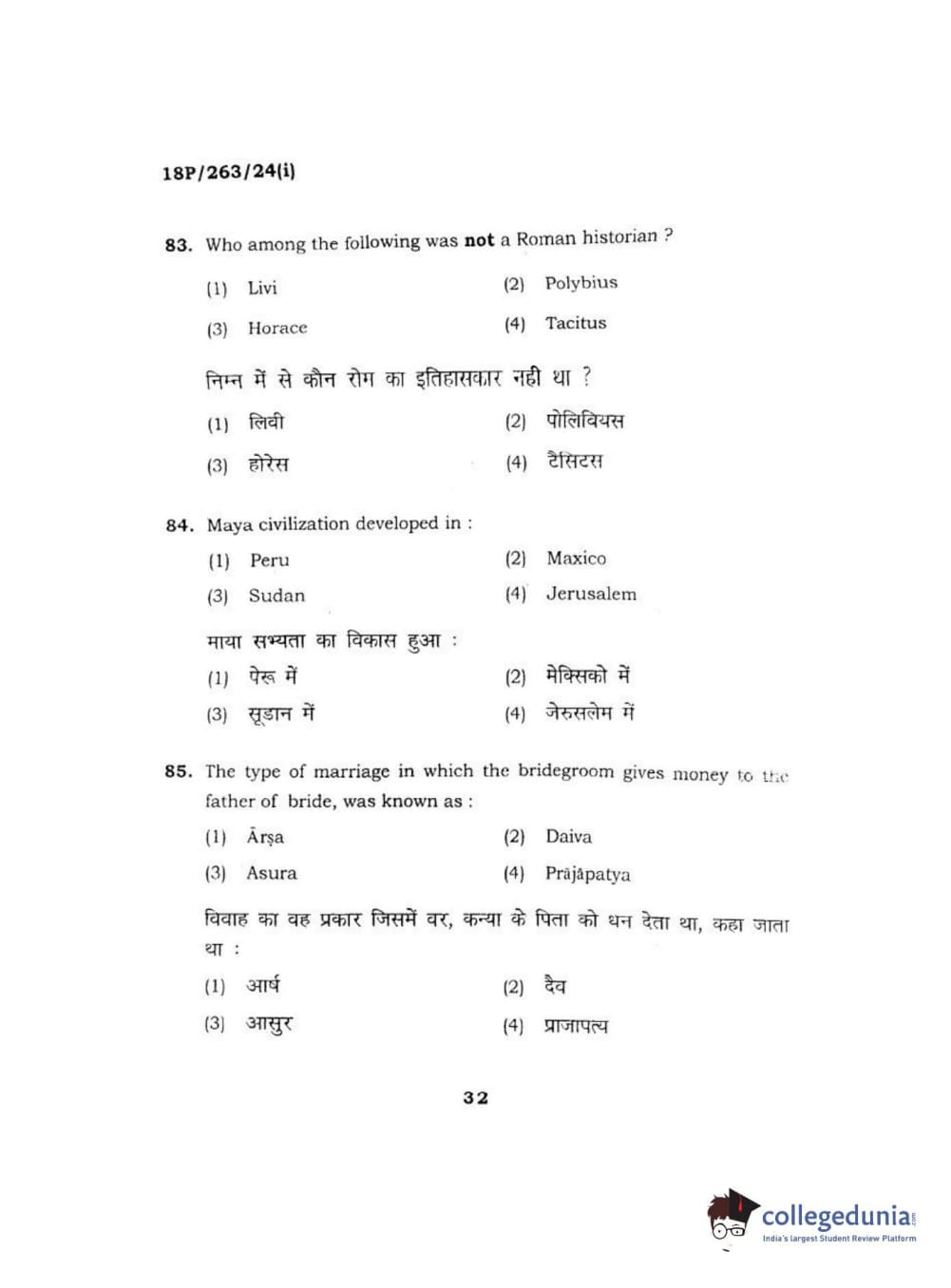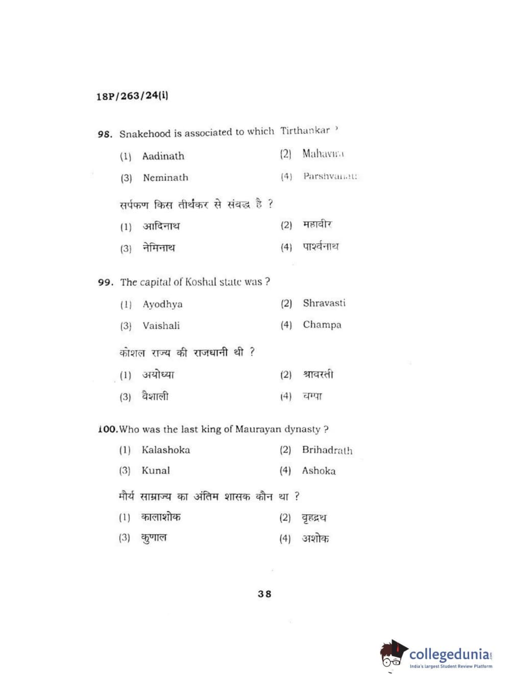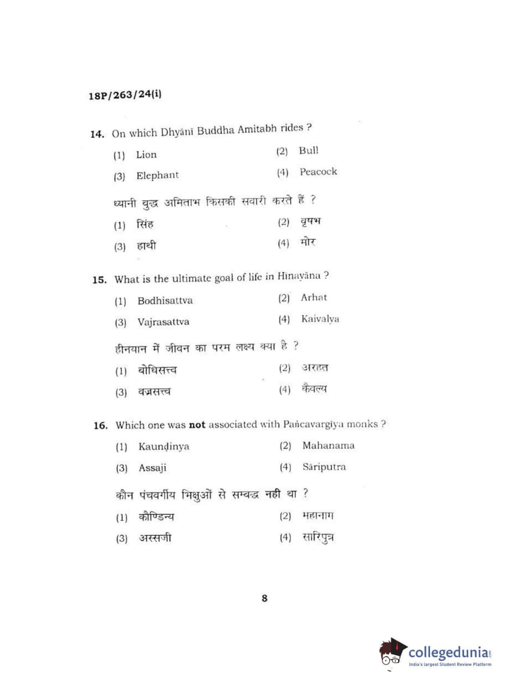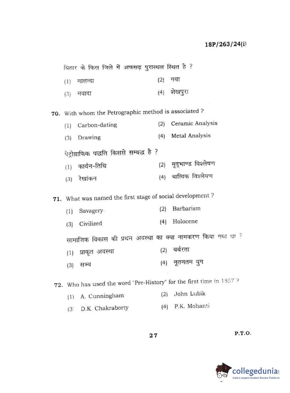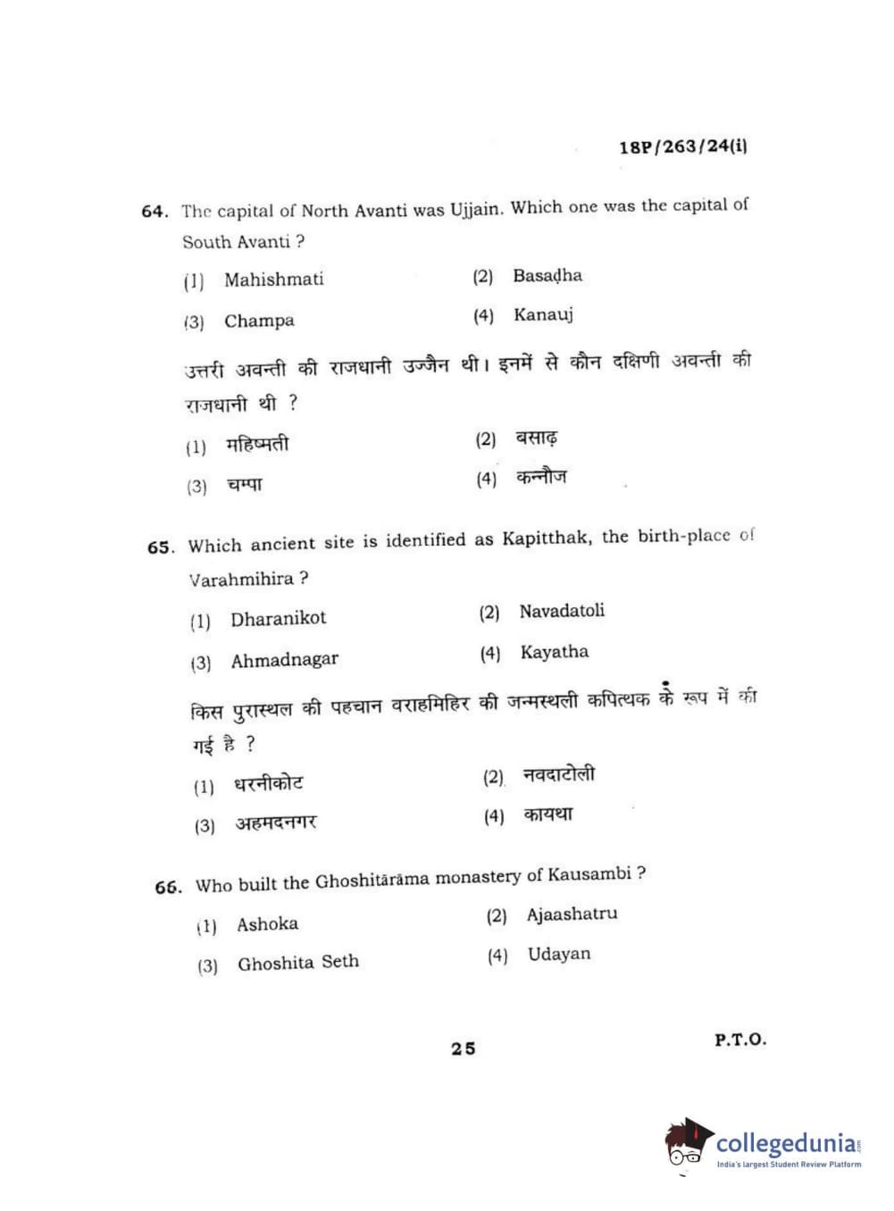 BHU PET 2018 M.A AIHC Question Paper with Answer Key PDF in Hindi