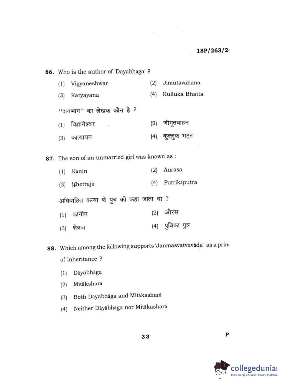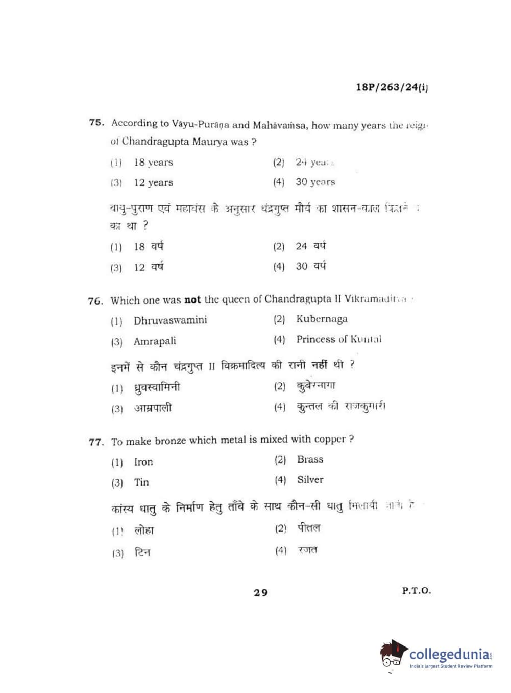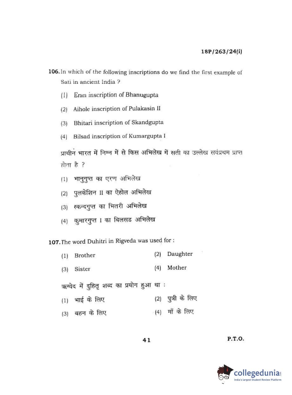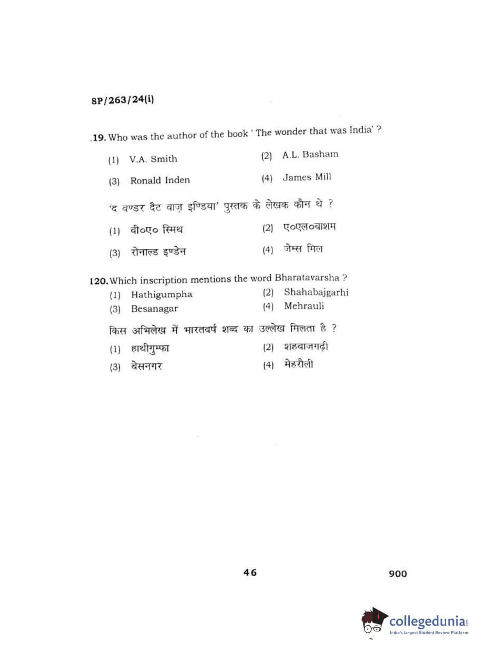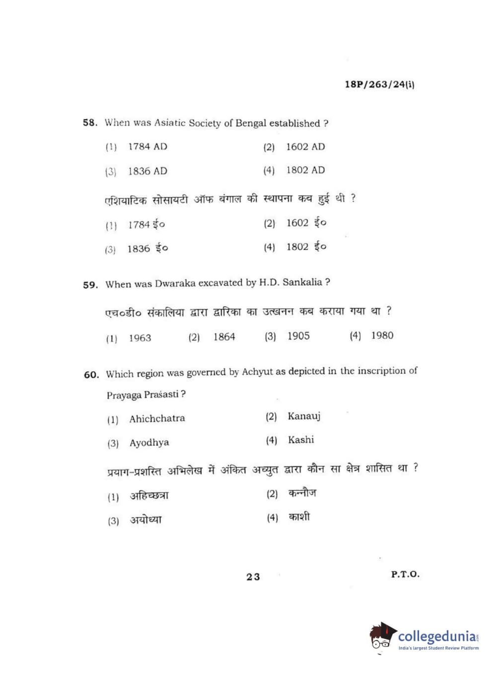 BHU PET 2018 M.A AIHC Question Paper with Answer Key PDF in Hindi