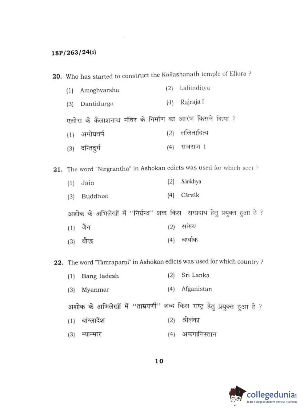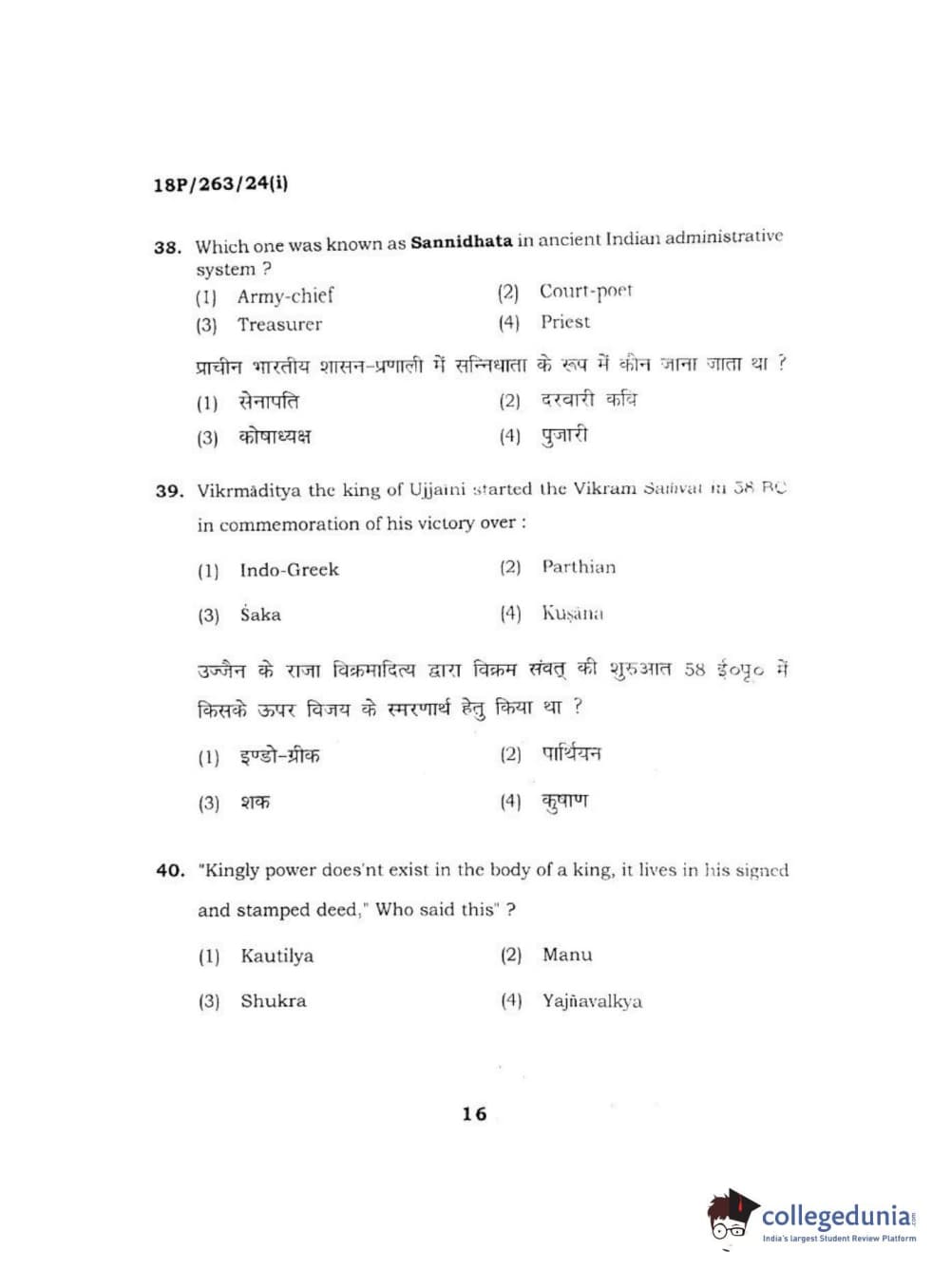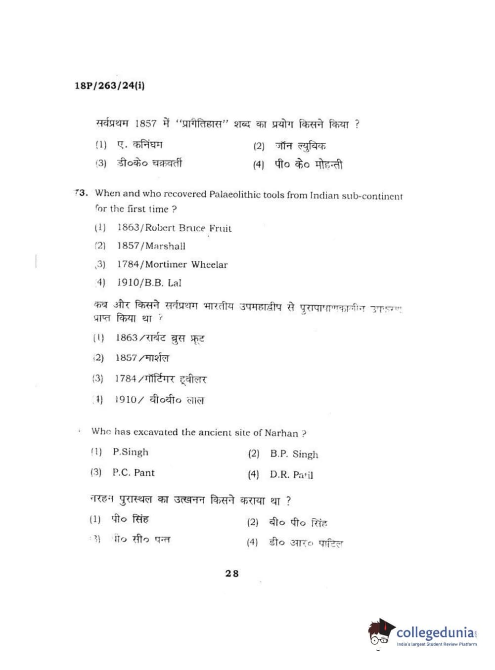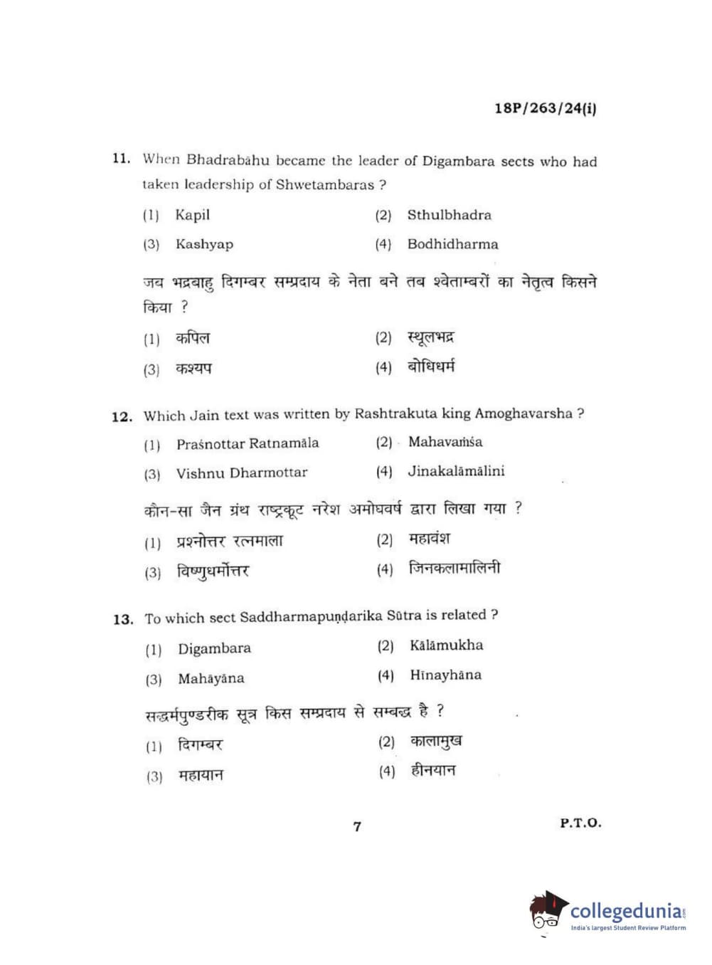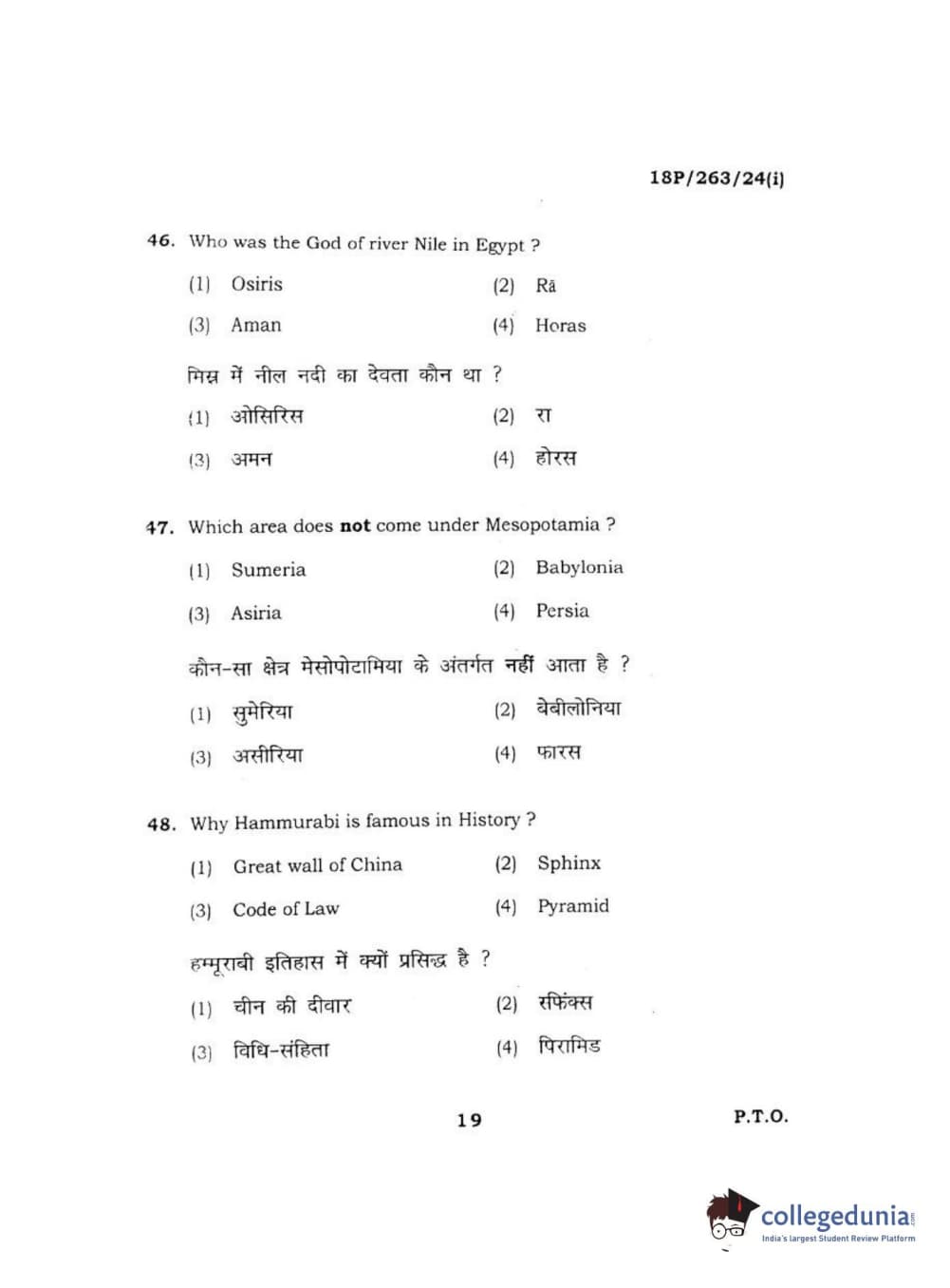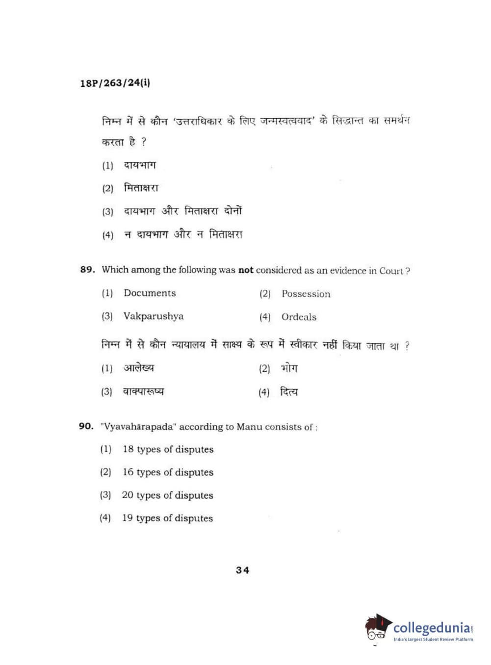 BHU PET 2018 M.A AIHC Question Paper with Answer Key PDF in Hindi