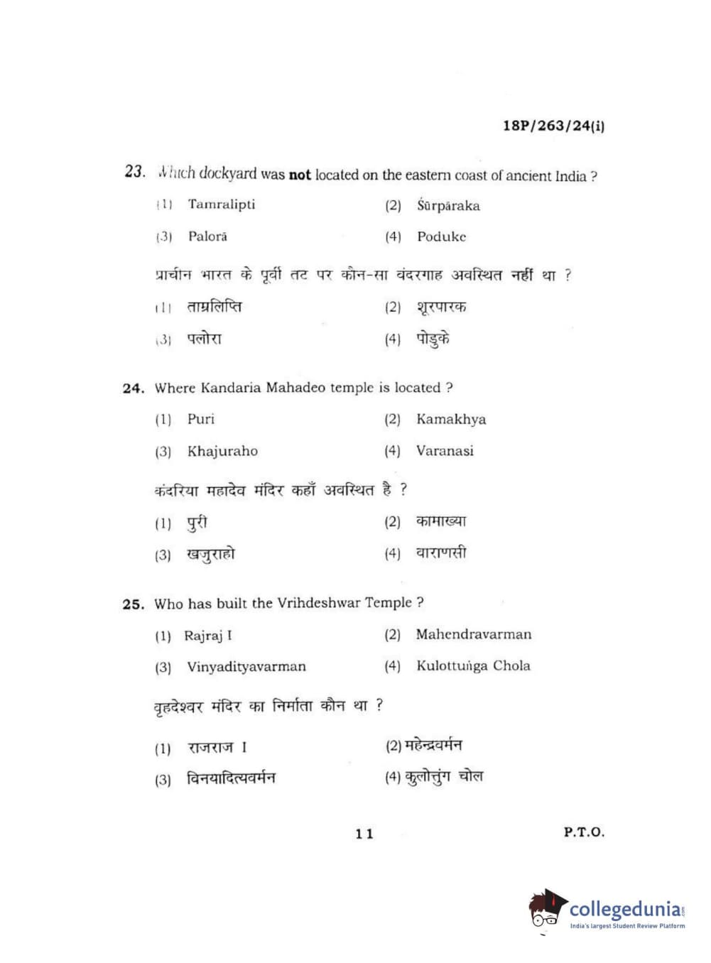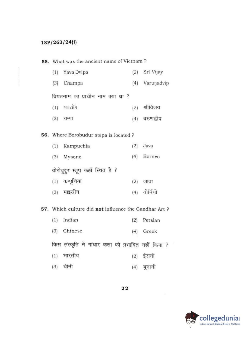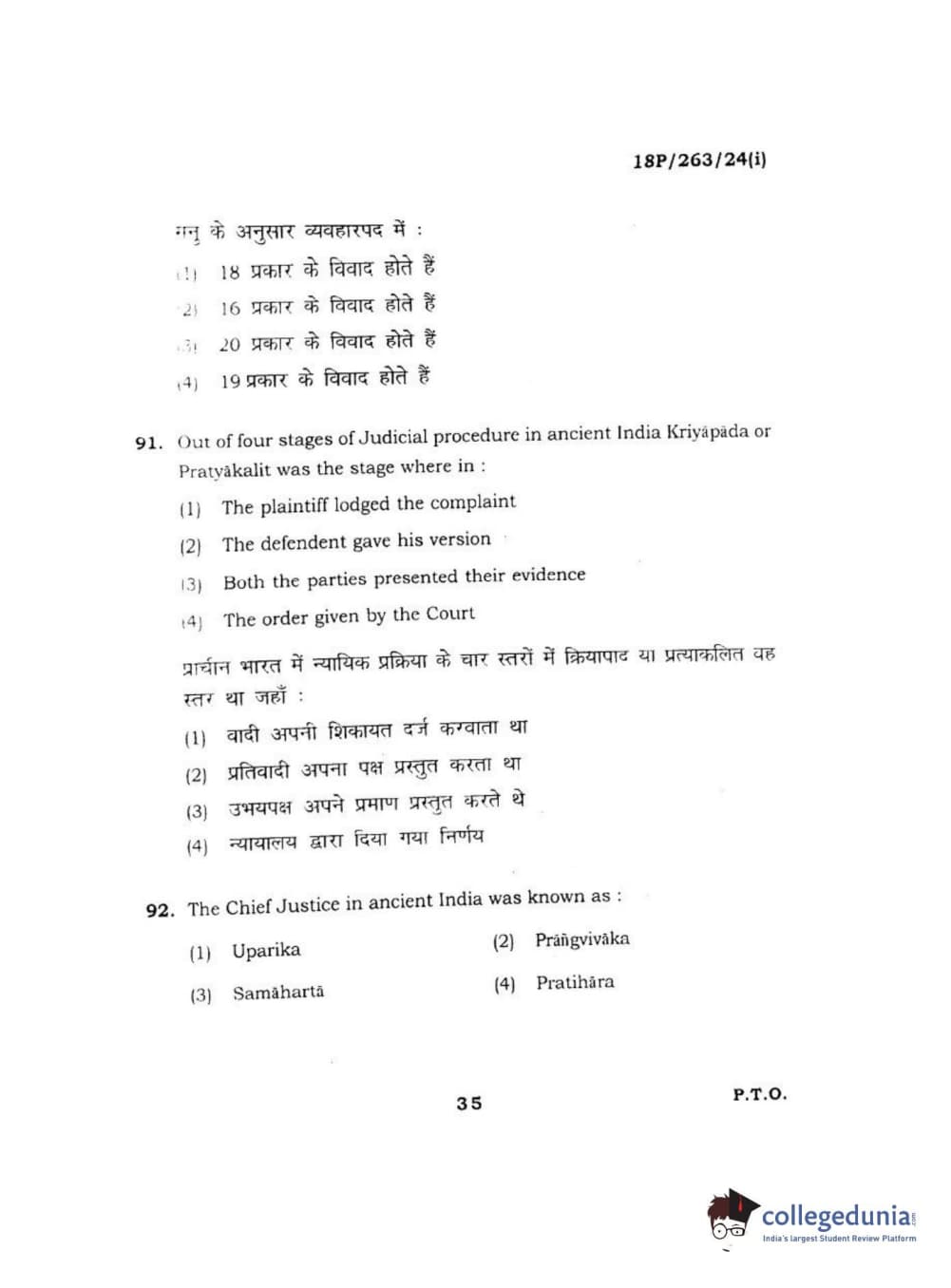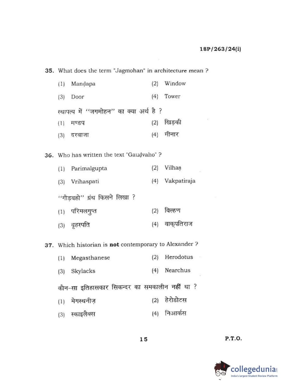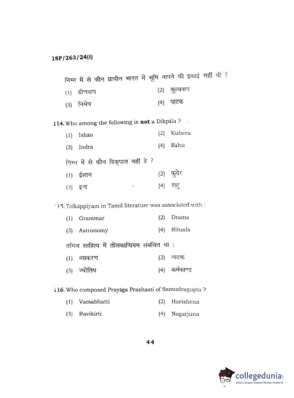 BHU PET 2018 M.A AIHC Question Paper with Answer Key PDF in Hindi