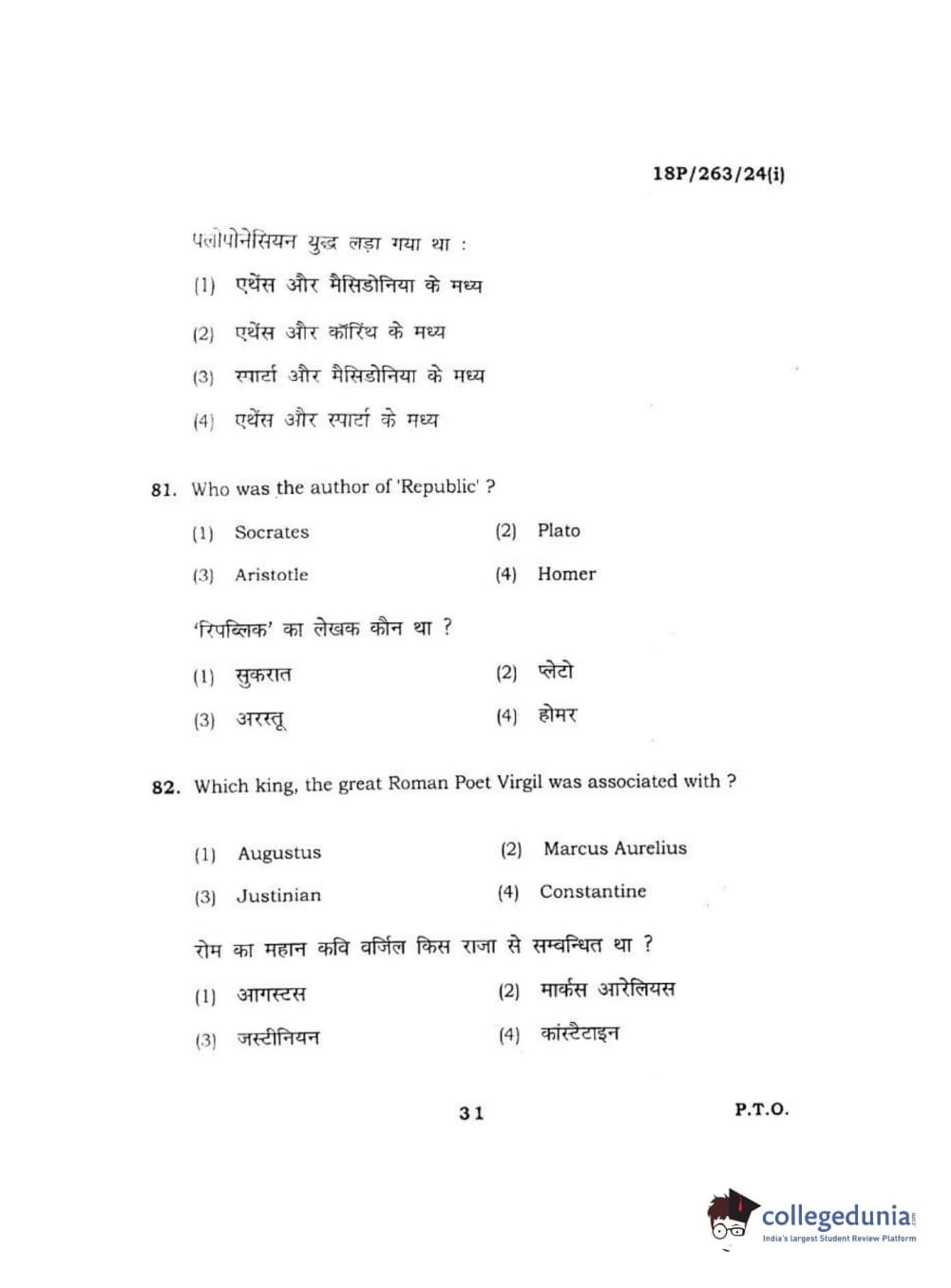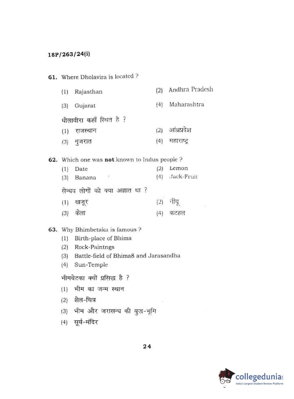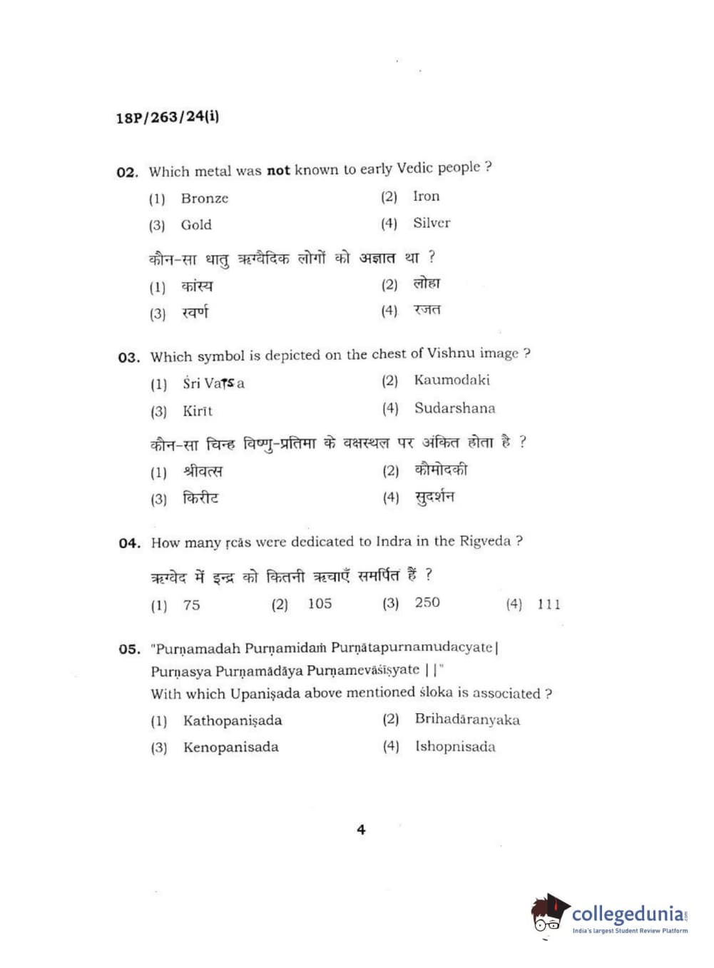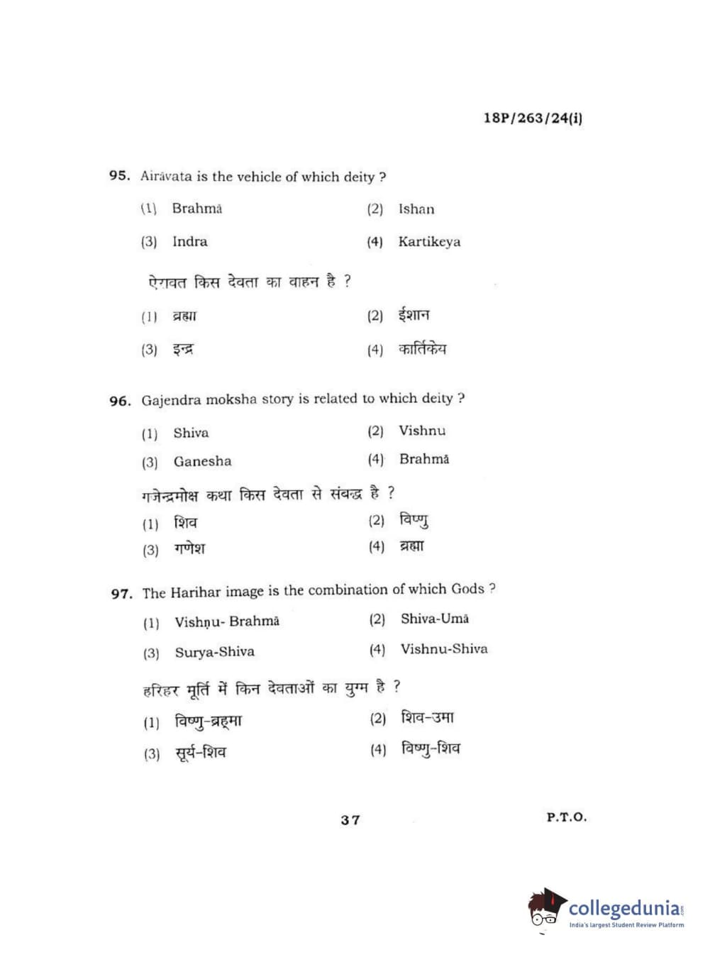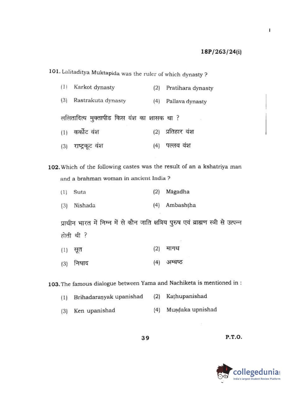 BHU PET 2018 M.A AIHC Question Paper with Answer Key PDF in Hindi