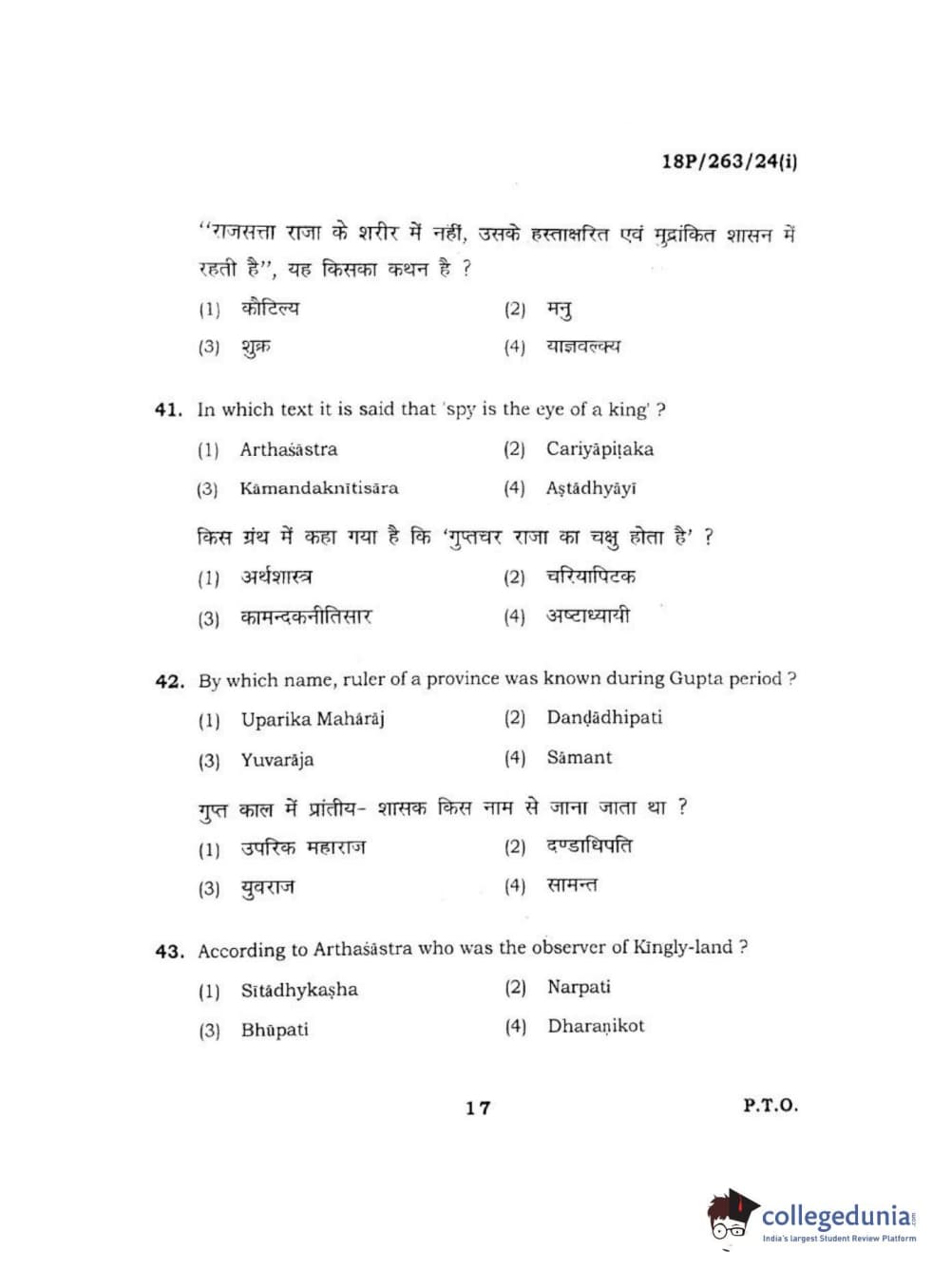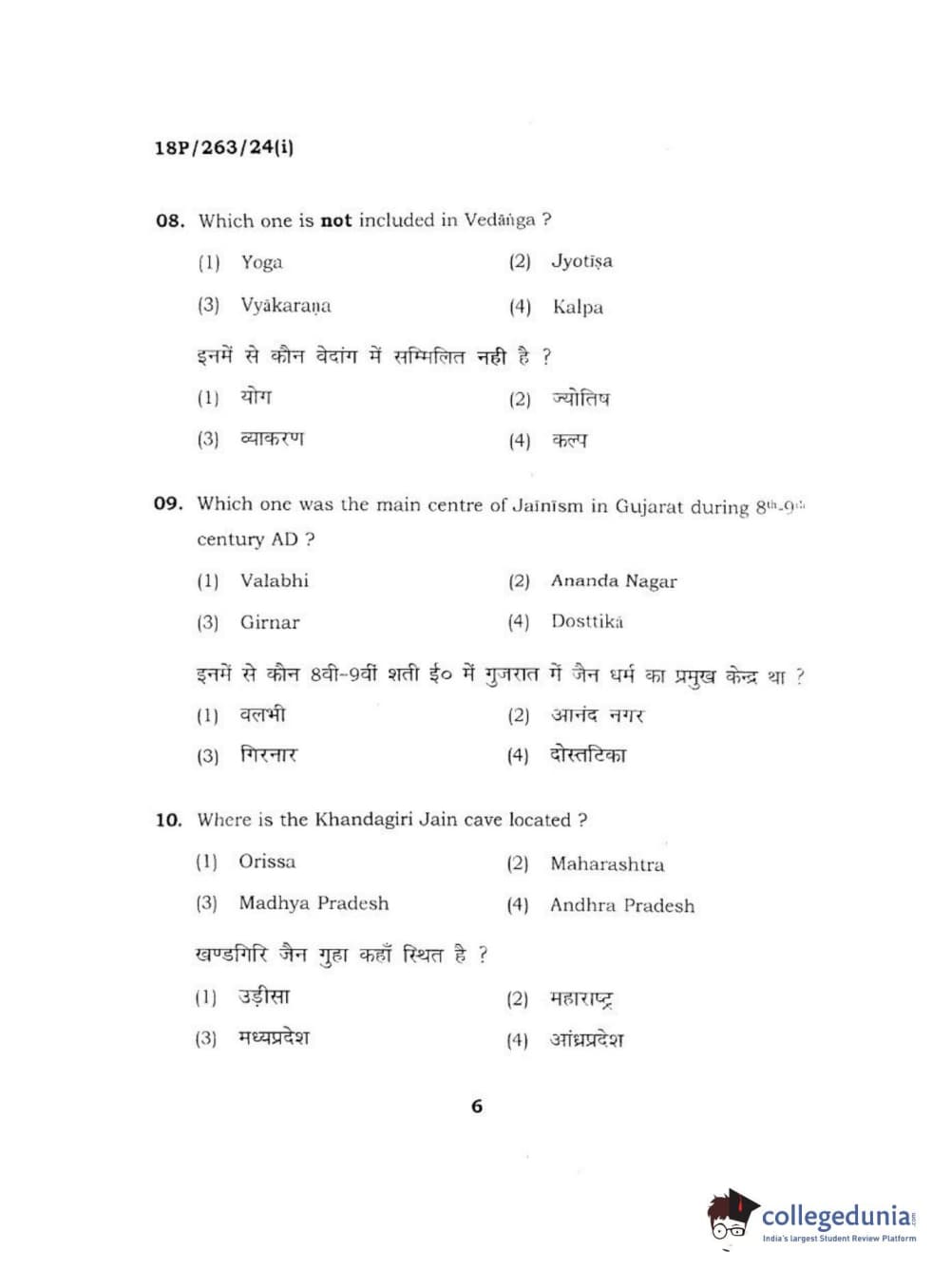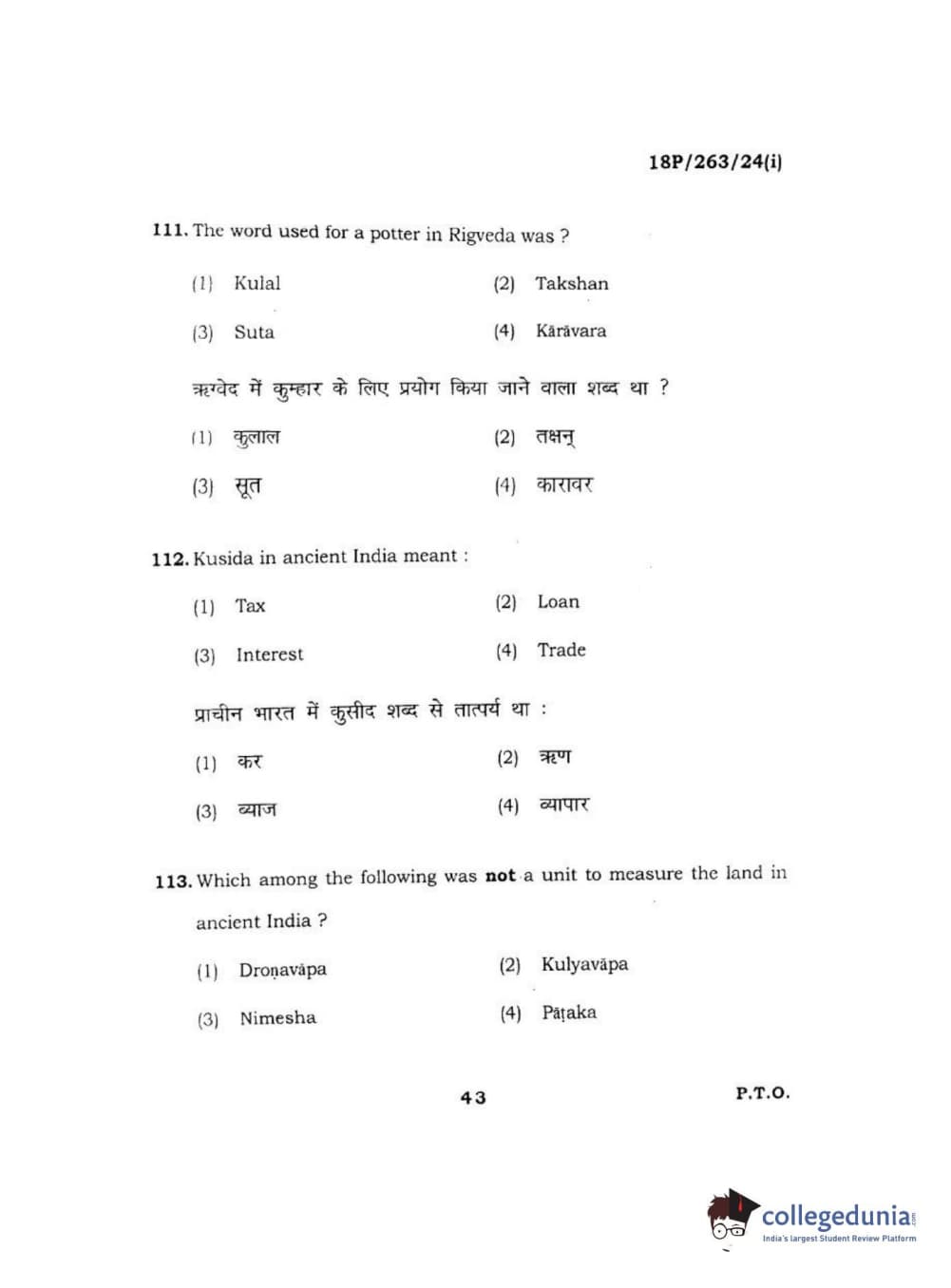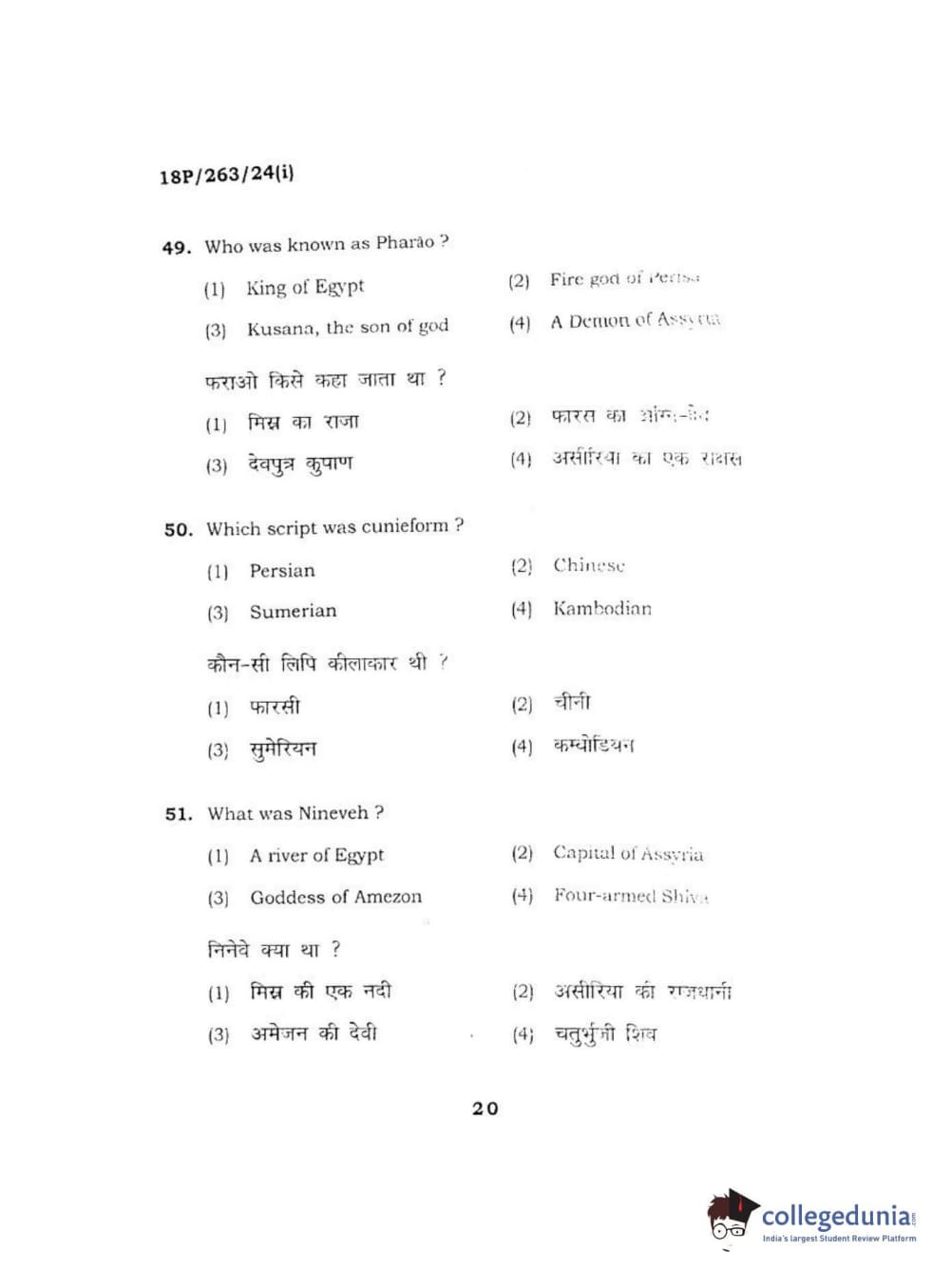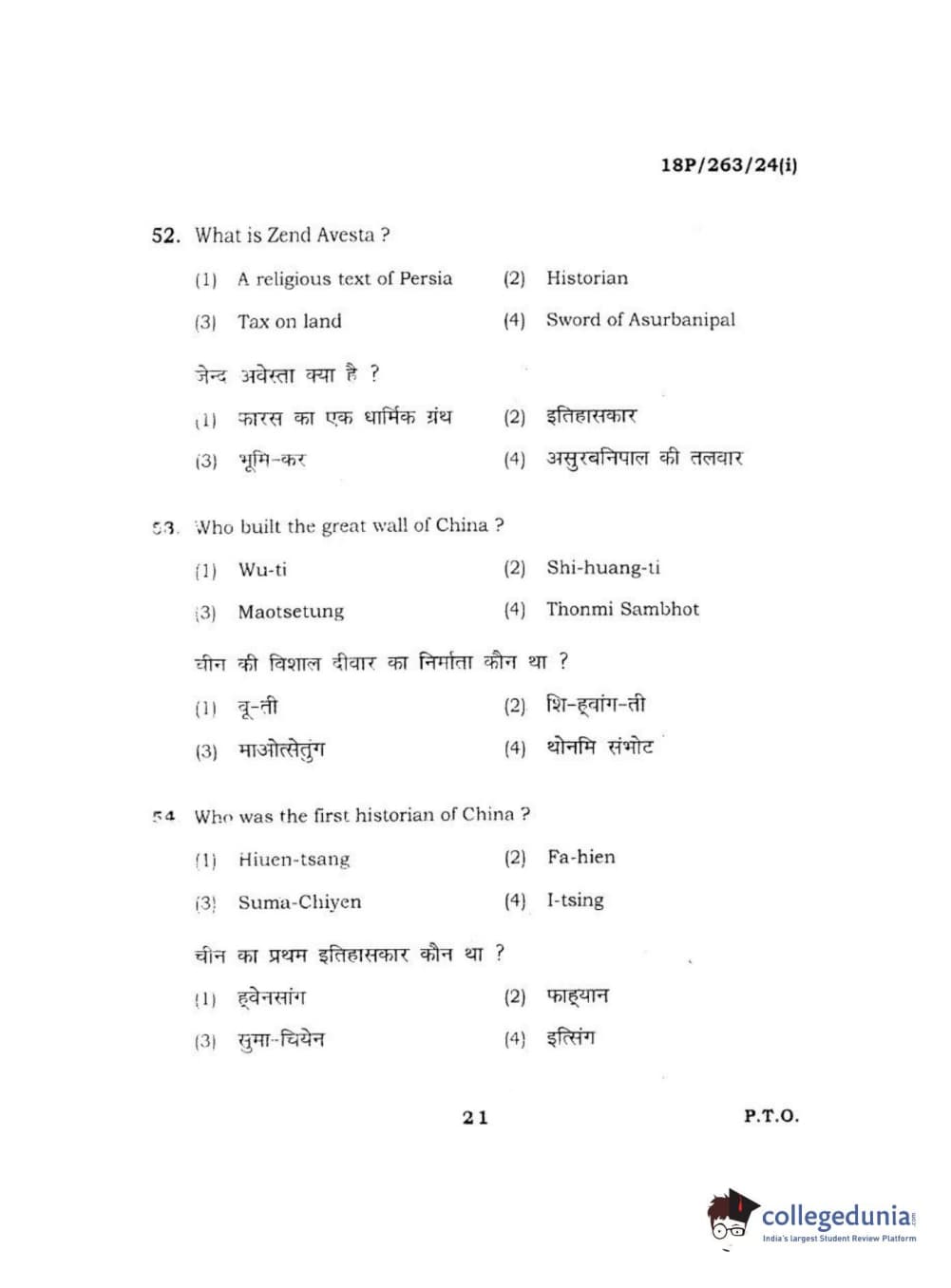 BHU PET 2018 M.A AIHC Question Paper with Answer Key PDF in Hindi