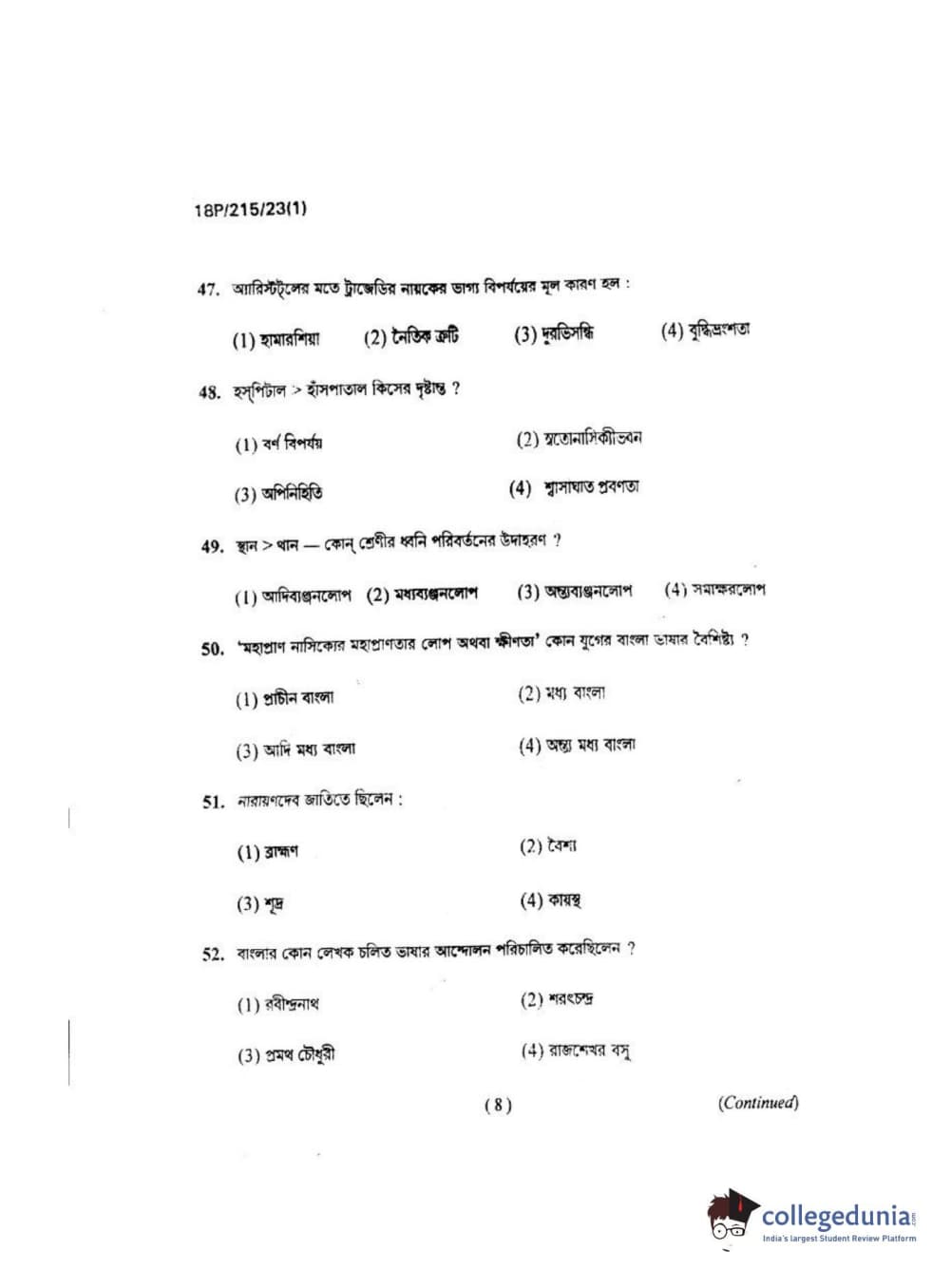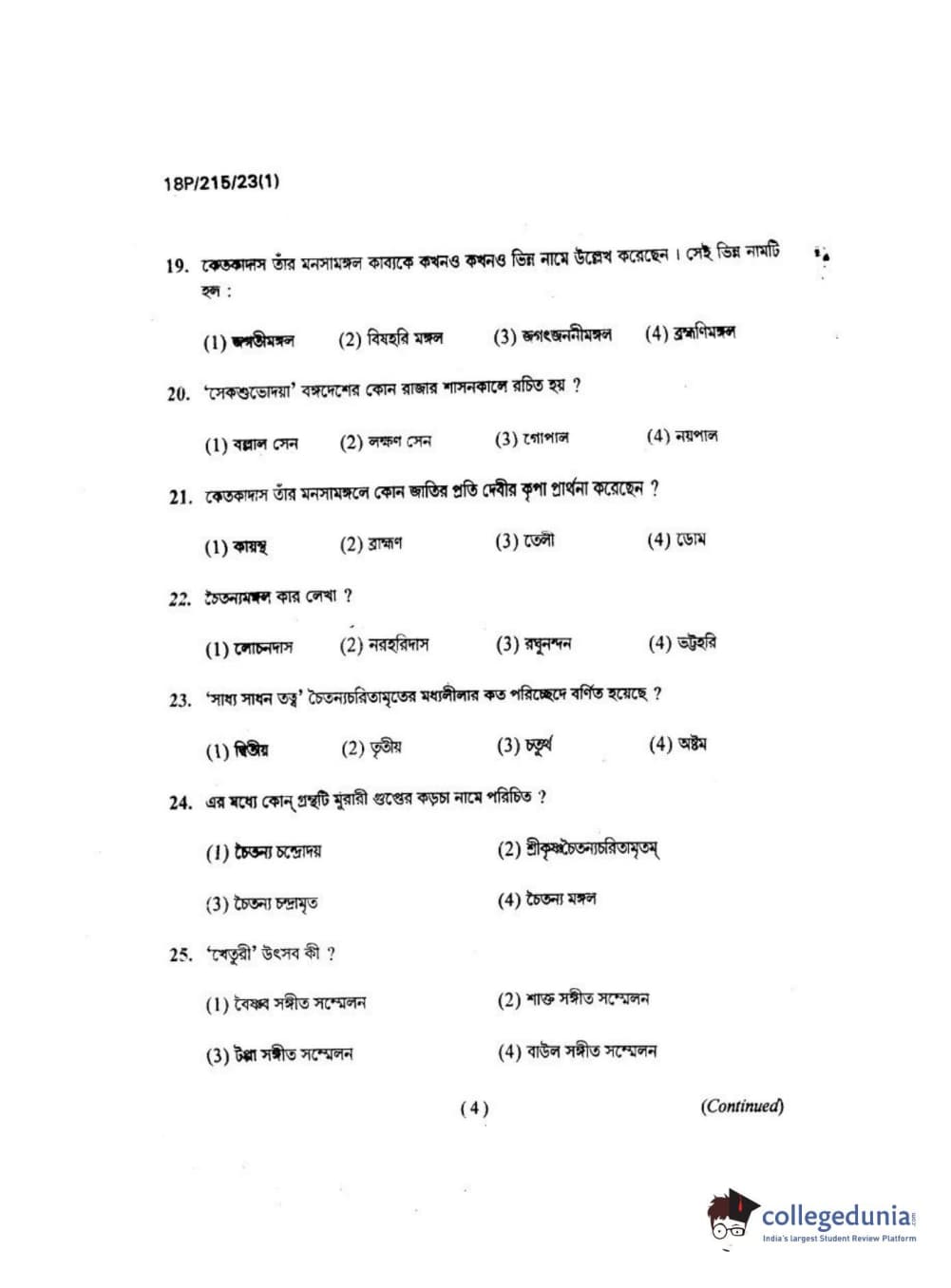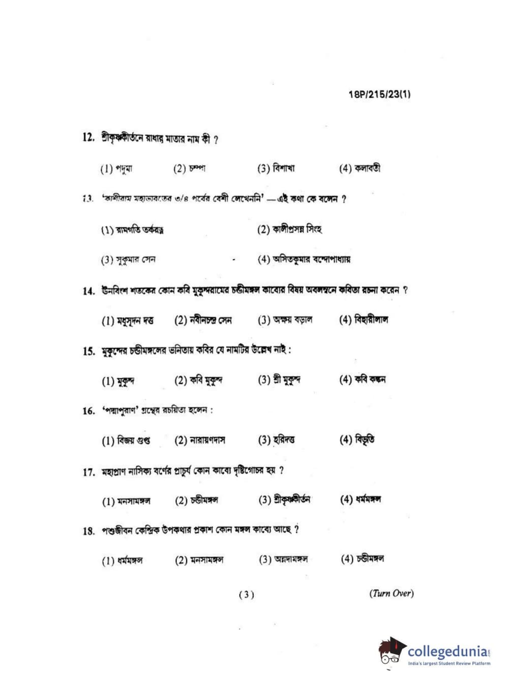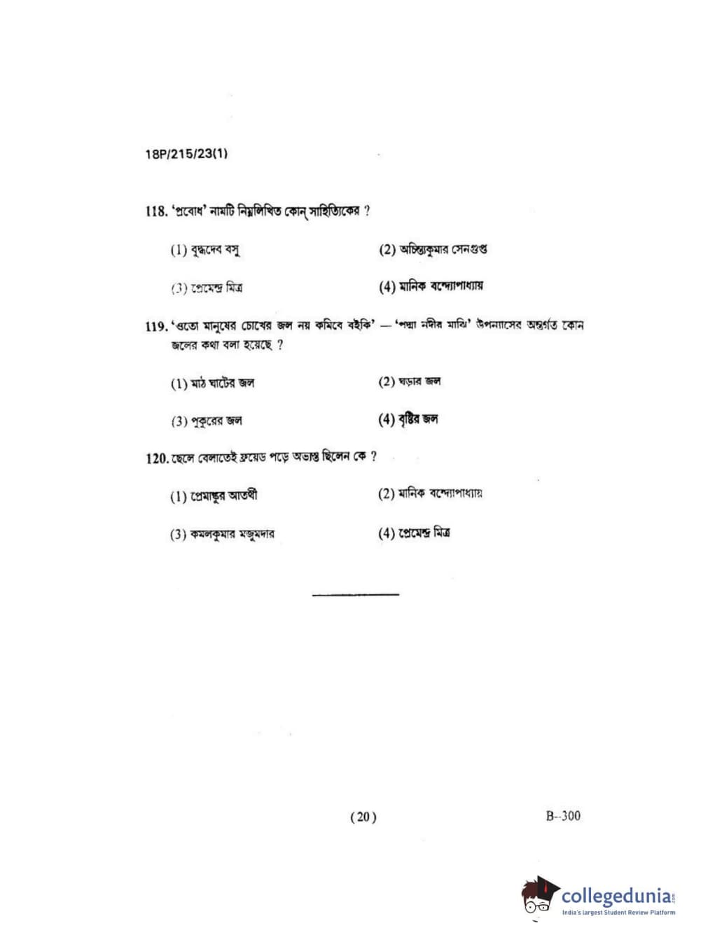 BHU PET 2018 MA BENGALI Question Paper with Answer Key PDF
