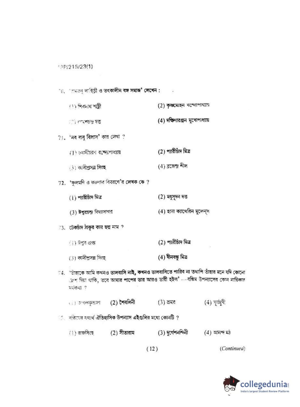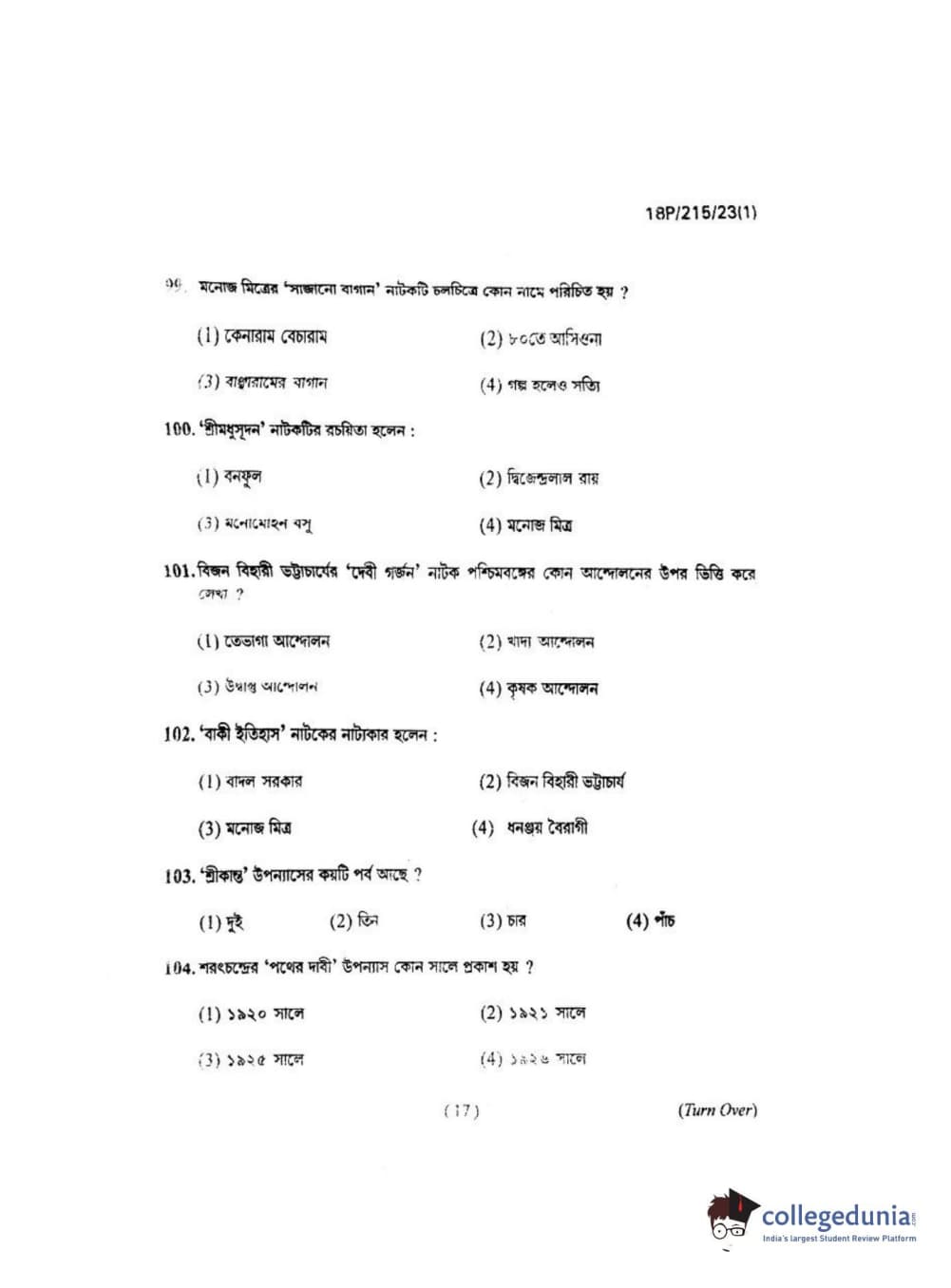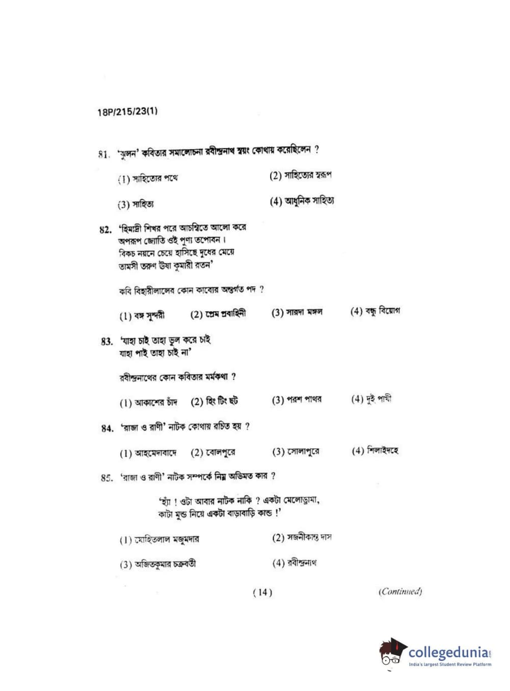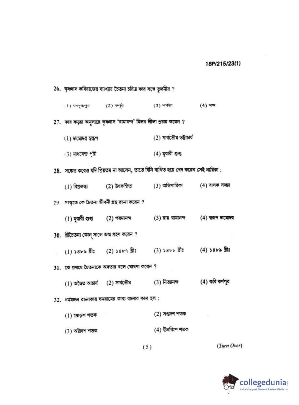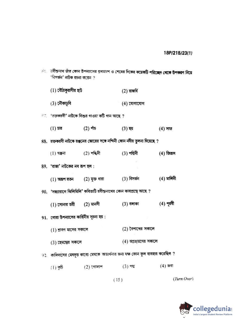 BHU PET 2018 MA BENGALI Question Paper with Answer Key PDF