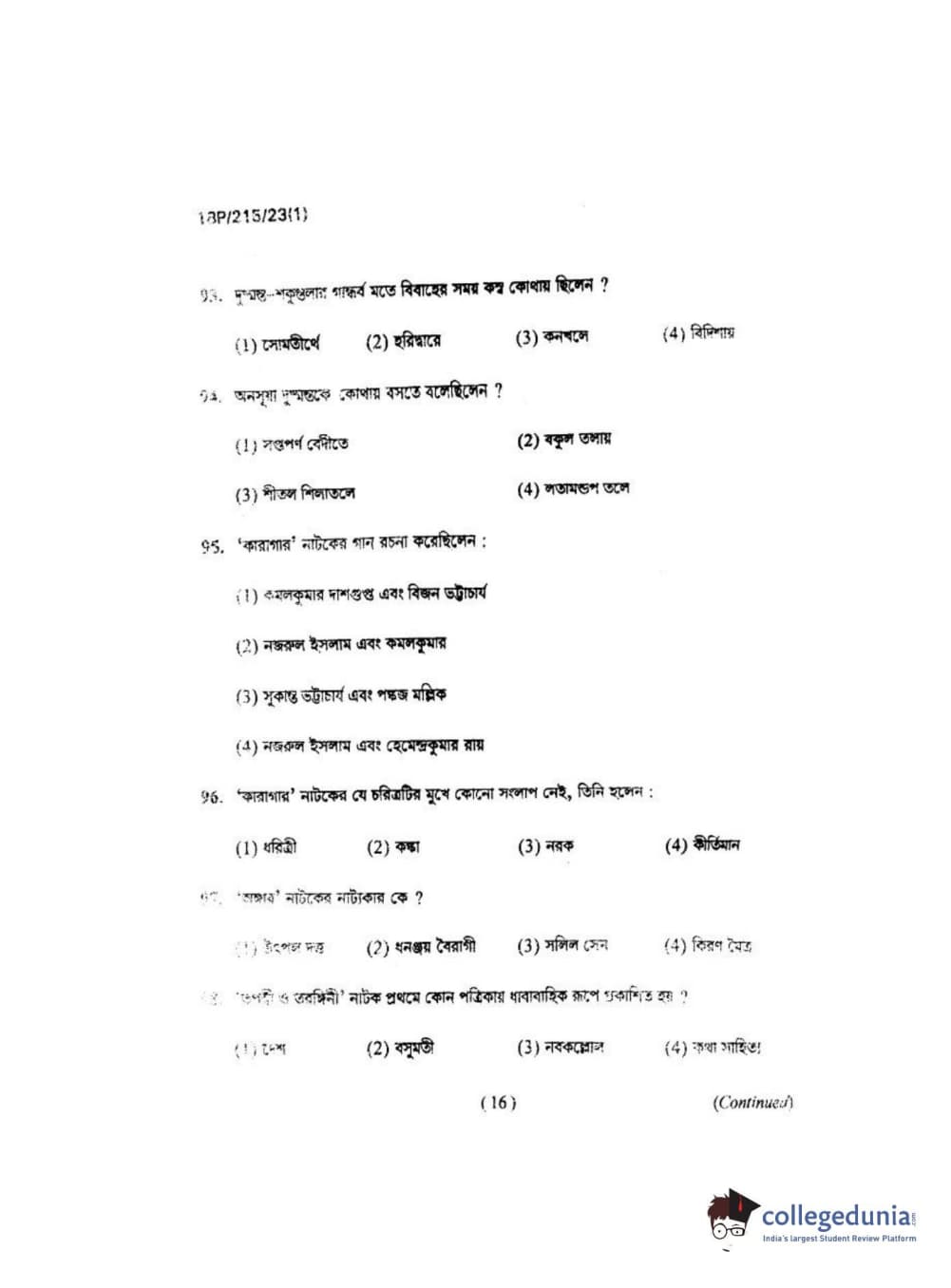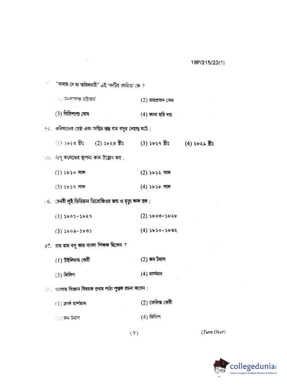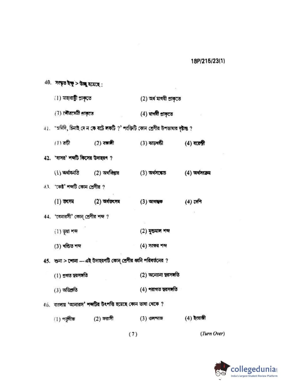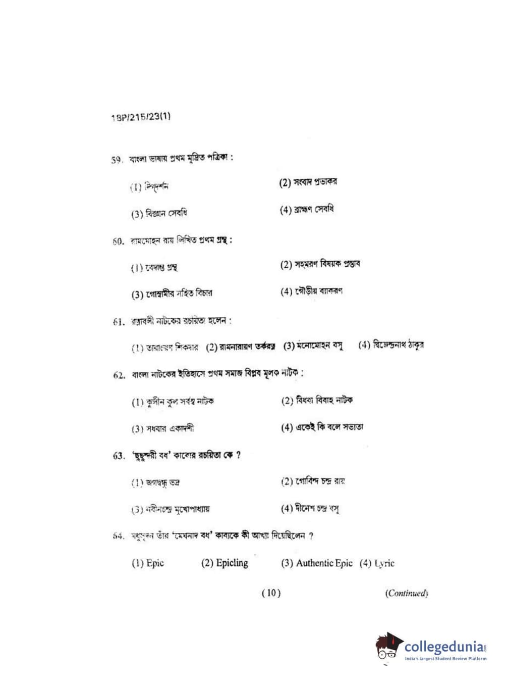 BHU PET 2018 MA BENGALI Question Paper with Answer Key PDF