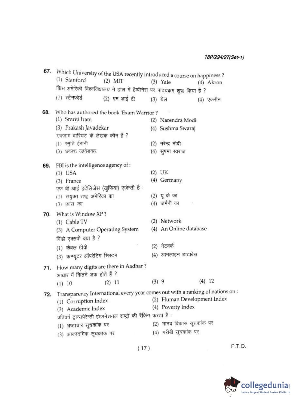 | BHU PET 2018 MA CONFLICT MGT & DEVLOPMENT Question Paper PDF | BHU PET 2018 MA CONFLICT MGT & DEVLOPMENT Answer Key PDF |